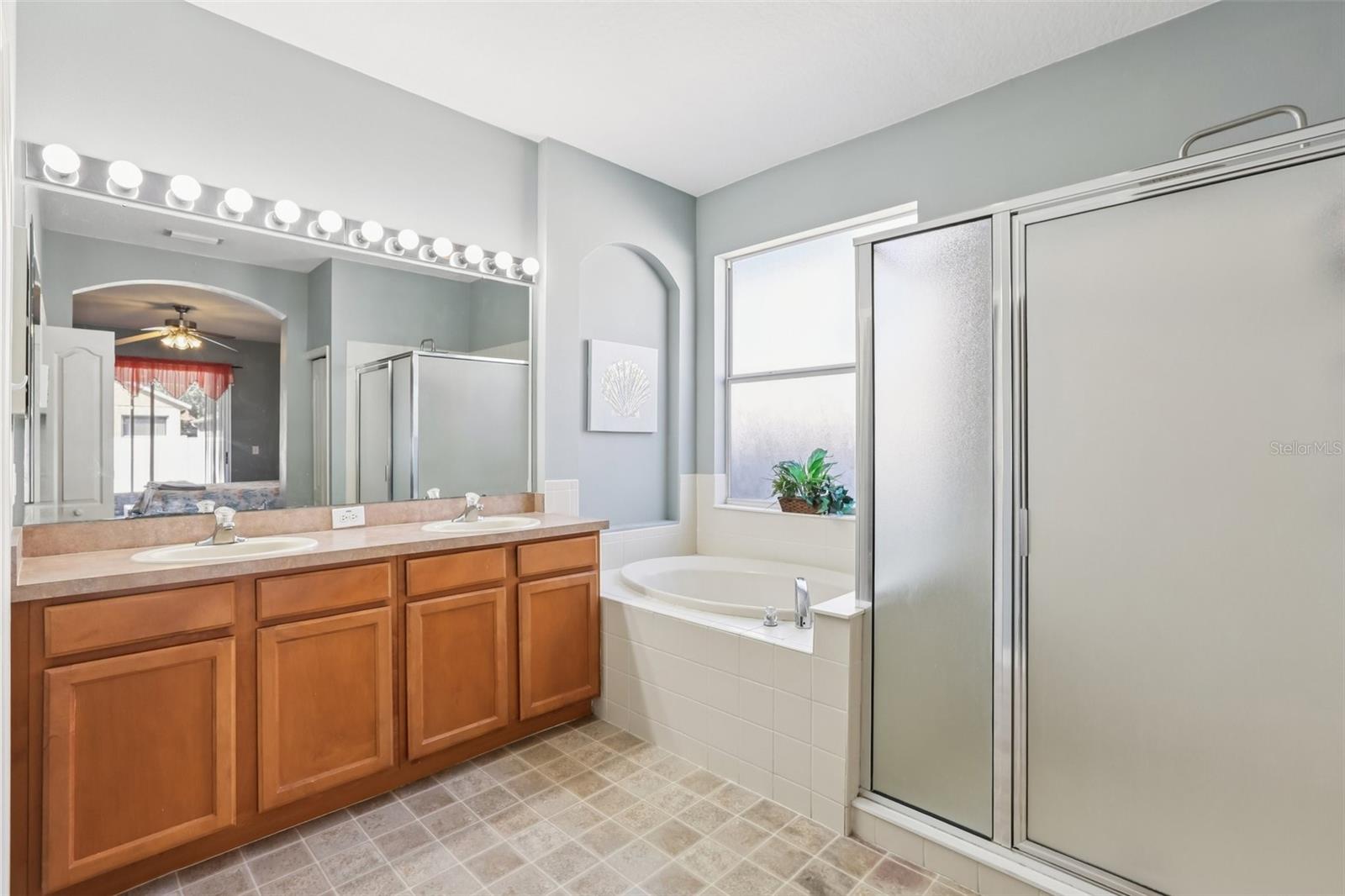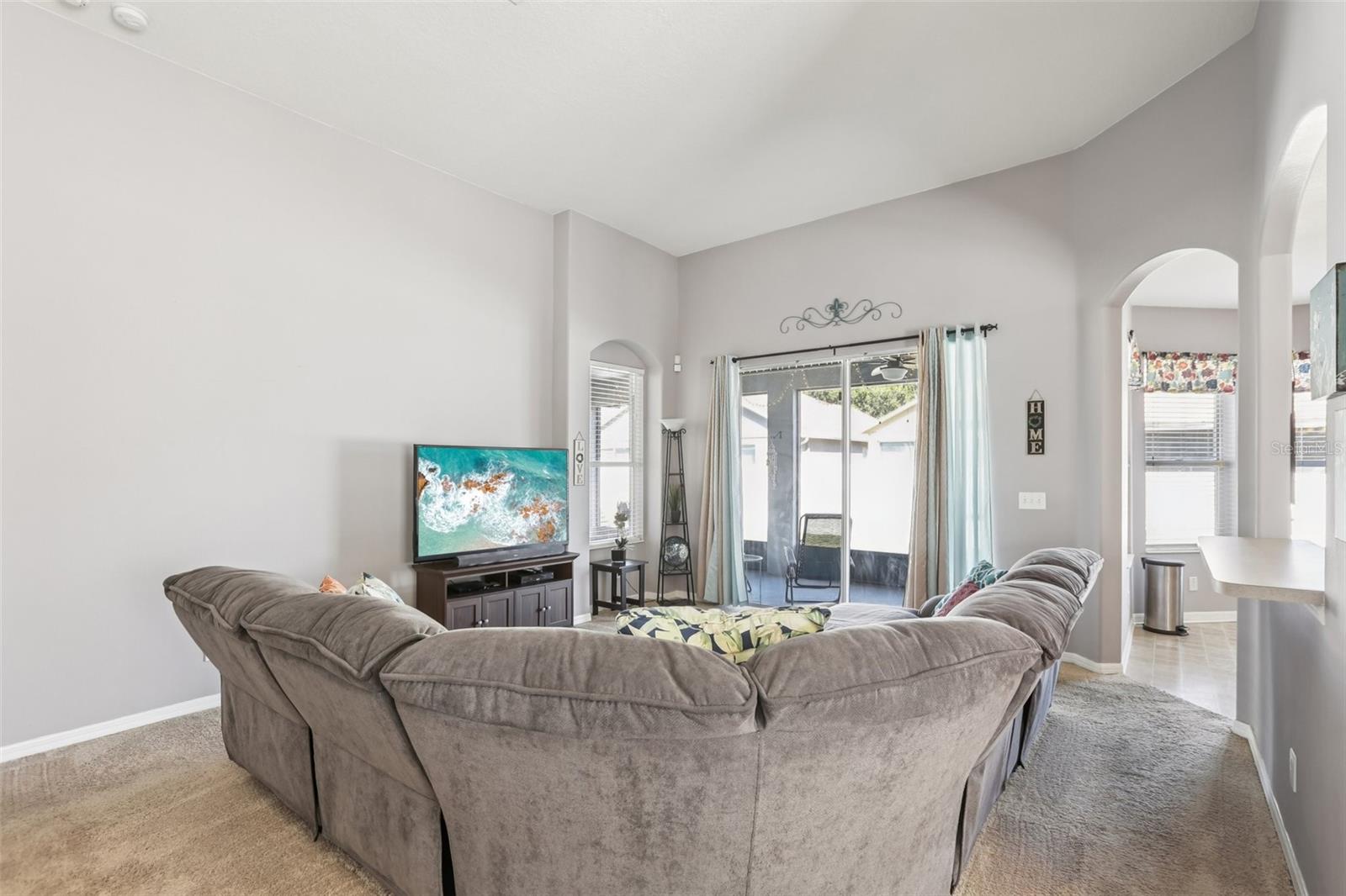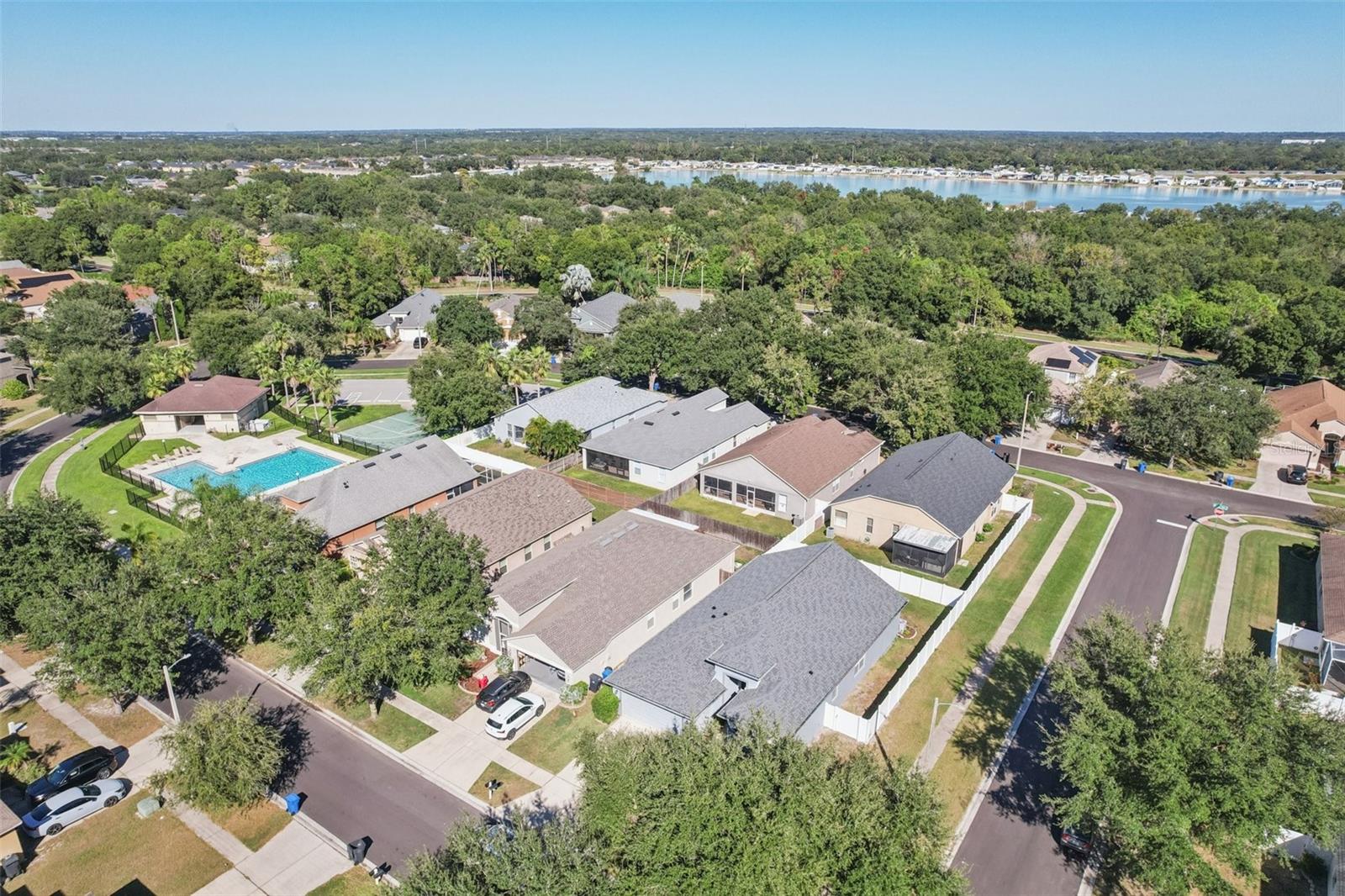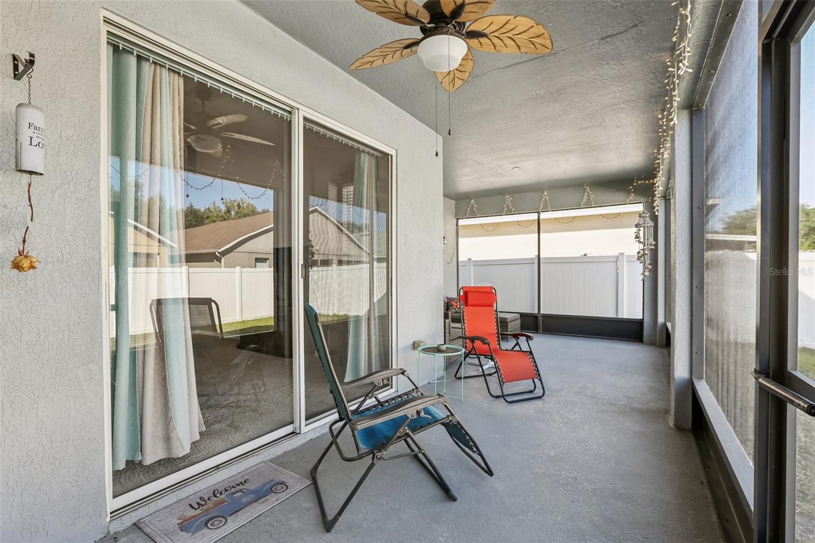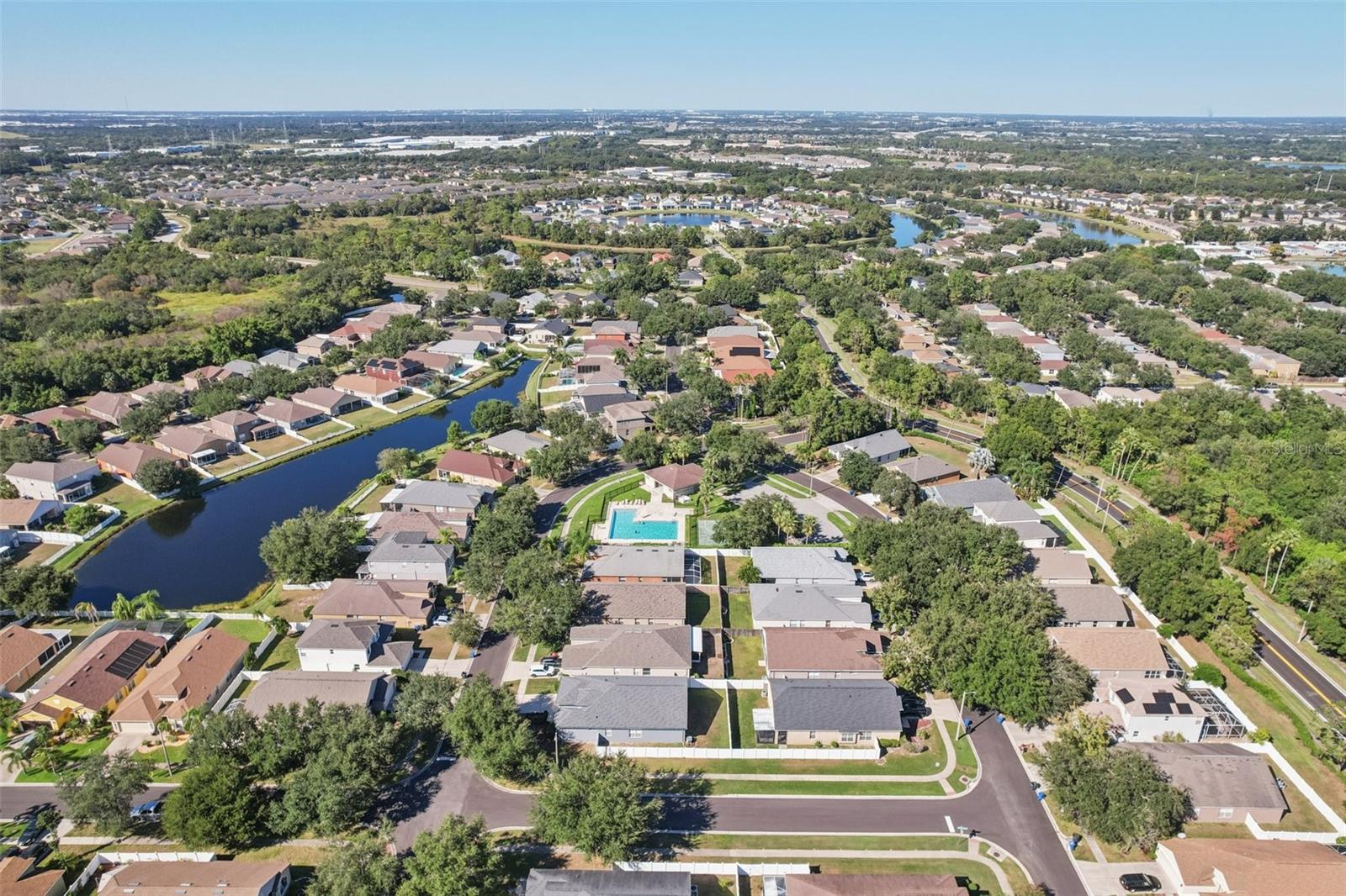 Welcome Home! Enter Your Welcoming Foyer into this open floor plan home situated in the quiet and highly desirable Amberly neighborhood of Oak Creek In Riverview. To your right are two spacious bedrooms sharing a full hall bath featuring a tiled tub/shower combination and a transom window for natural light and privacy. Across the Foyer is the conveniently located laundry room and leads to the 2 car garage. Continue into the spacious Great Room adjacent to the Kitchen and "L" shaped separate dinning area. The kitchen features a large eat-in area with Bay windows overlooking the fully fenced backyard. Exit the Great Room through sliding doors into the large screened in lanai offering a wonderful gathering area also adjacent to the Kitchen for ease of entertaining guests. To the left of the Great Room is the Primary Suite, which features sliding glass doors also leading to the lanai. The en-suite bathroom features a large walk-in closet, linen closet, separate toilet room, double sink vanity, a soaking tub and fully glass-enclosed walk-in shower. Decorative niches and Arches framing the windows and doors along with vaulted ceilings in the main living area, add a touch of elegance to this home and lets it live larger than its square footage. The fully fenced backyard and covered screened in rear lanai, offers a peaceful place to relax after a full day of activities. Other features of the home include hurricane shutters, reinforced garage door and a newer roof (2021). Current owners also added gutters on the front and sides of the home. A security system with ring camera doorbell at the front of the home provides additional piece of mind. You'll really enjoy walking to the community clubhouse and pool which is only four homes away! The great location is close to the greater Tampa Bay area, entertainment, shopping, restaurants and the beautiful Gulf beaches. Don't miss out on this opportunity to call this great house your home! Schedule your private showing today!