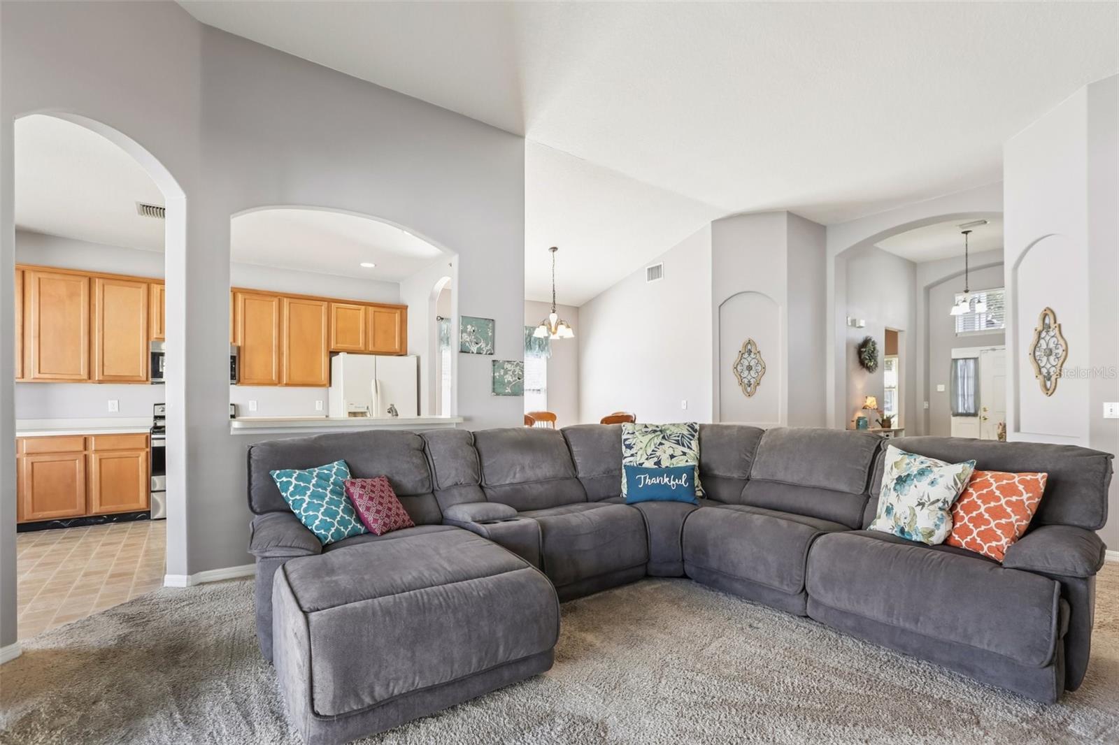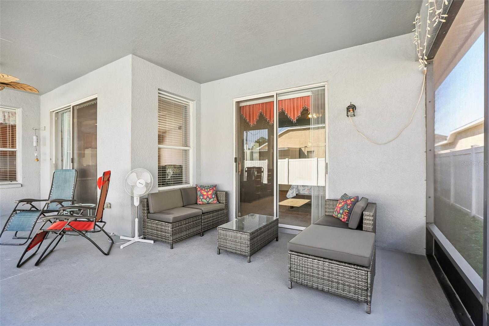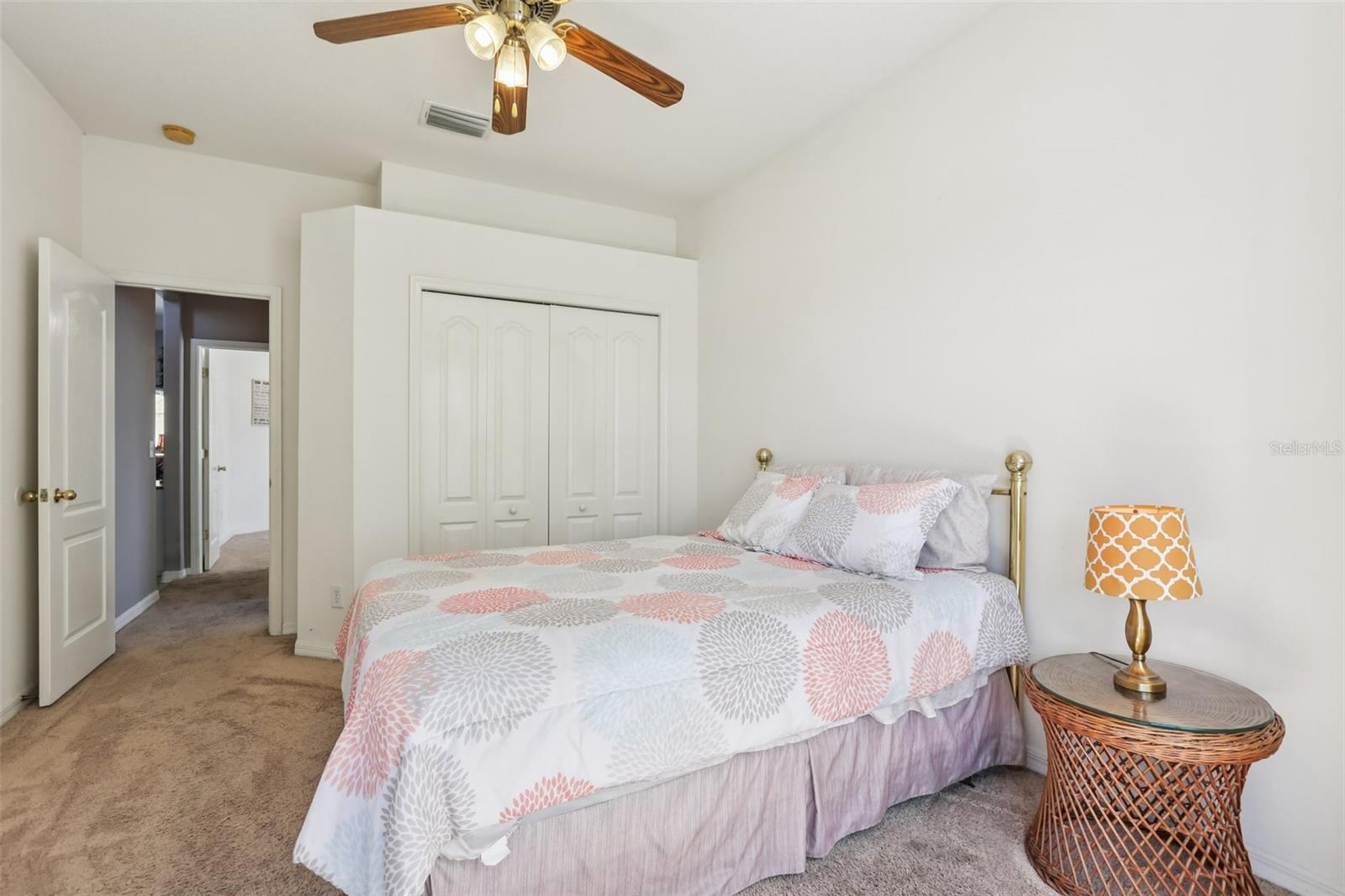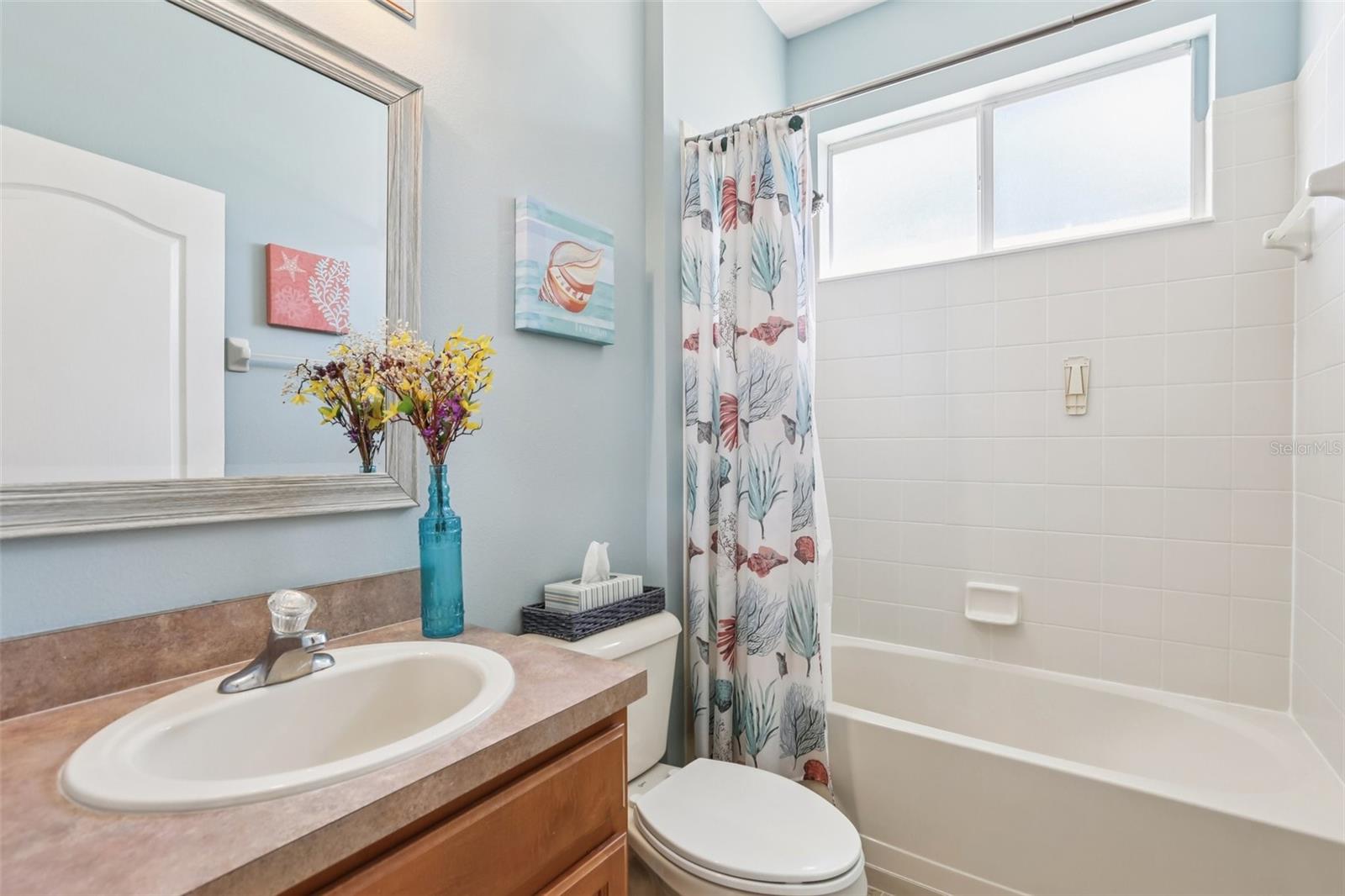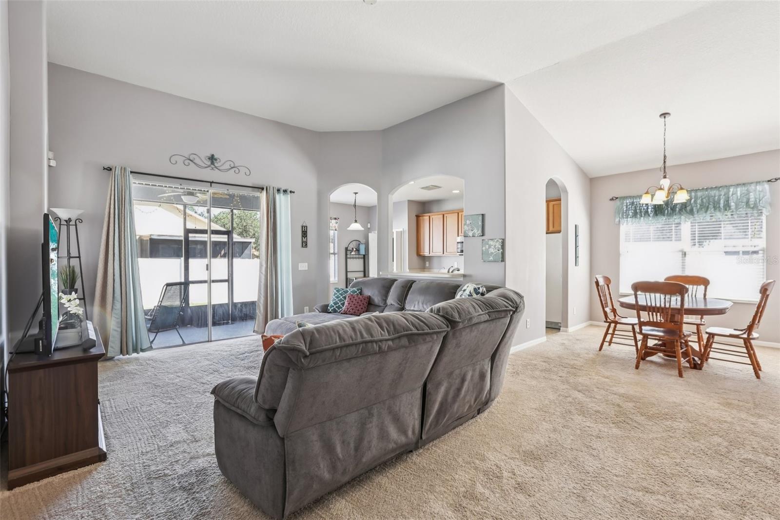 Welcome Home! Enter Your Welcoming Foyer into this open floor plan home situated in the quiet and highly desirable Amberly neighborhood of Oak Creek In Riverview. To your right are two spacious bedrooms sharing a full hall bath featuring a tiled tub/shower combination and a transom window for natural light and privacy. Across the Foyer is the conveniently located laundry room and leads to the 2 car garage. Continue into the spacious Great Room adjacent to the Kitchen and "L" shaped separate dinning area. The kitchen features a large eat-in area with Bay windows overlooking the fully fenced backyard. Exit the Great Room through sliding doors into the large screened in lanai offering a wonderful gathering area also adjacent to the Kitchen for ease of entertaining guests. To the left of the Great Room is the Primary Suite, which features sliding glass doors also leading to the lanai. The en-suite bathroom features a large walk-in closet, linen closet, separate toilet room, double sink vanity, a soaking tub and fully glass-enclosed walk-in shower. Decorative niches and Arches framing the windows and doors along with vaulted ceilings in the main living area, add a touch of elegance to this home and lets it live larger than its square footage. The fully fenced backyard and covered screened in rear lanai, offers a peaceful place to relax after a full day of activities. Other features of the home include hurricane shutters, reinforced garage door and a newer roof (2021). Current owners also added gutters on the front and sides of the home. A security system with ring camera doorbell at the front of the home provides additional piece of mind. You'll really enjoy walking to the community clubhouse and pool which is only four homes away! The great location is close to the greater Tampa Bay area, entertainment, shopping, restaurants and the beautiful Gulf beaches. Don't miss out on this opportunity to call this great house your home! Schedule your private showing today!