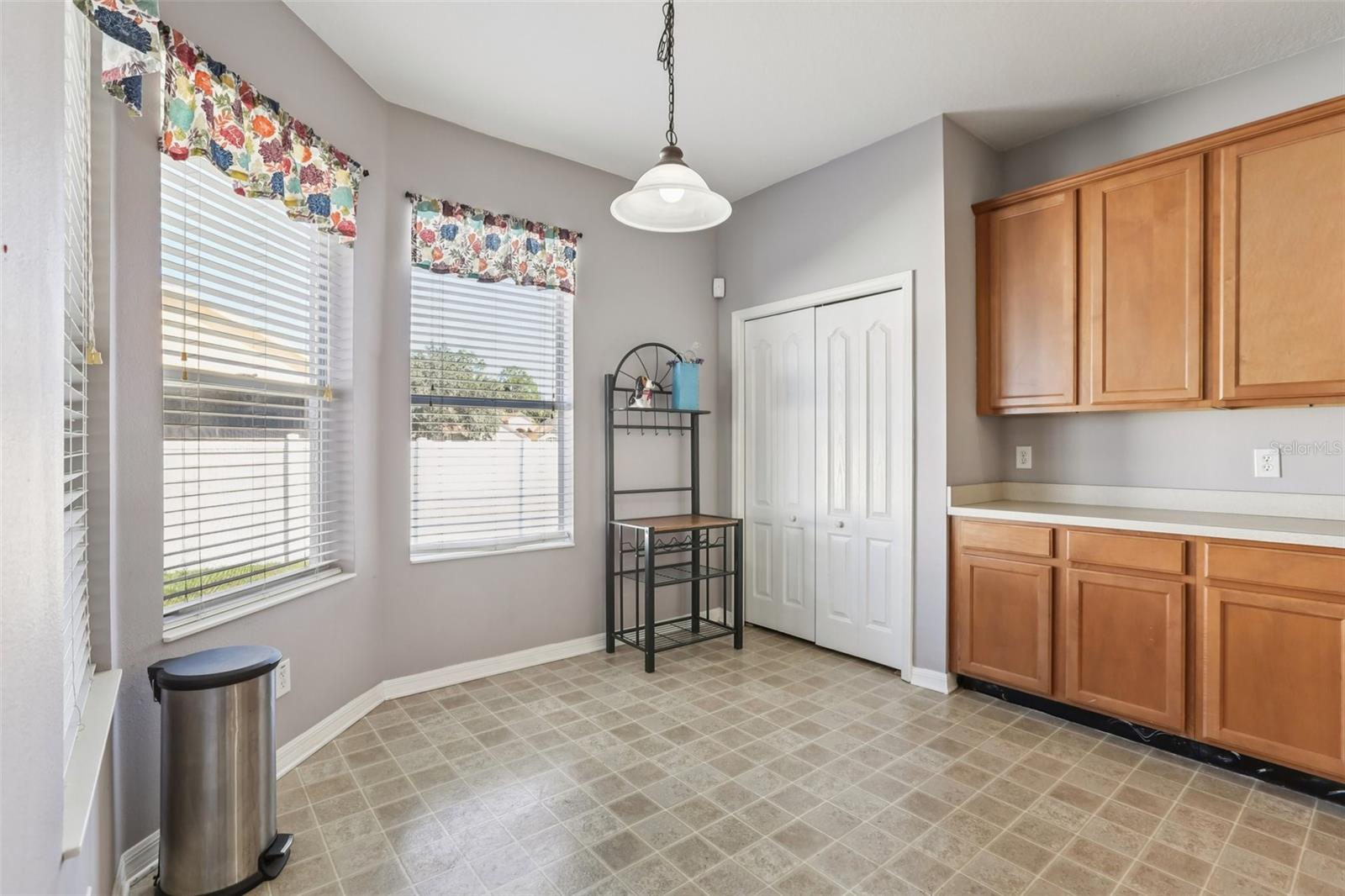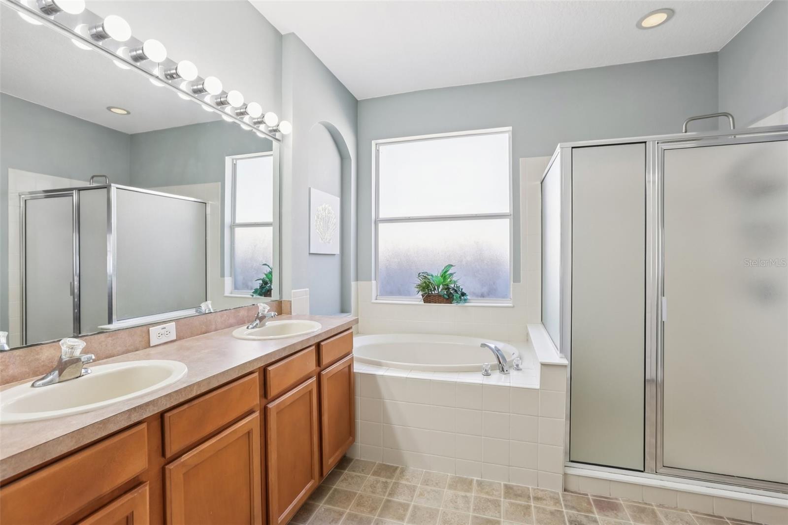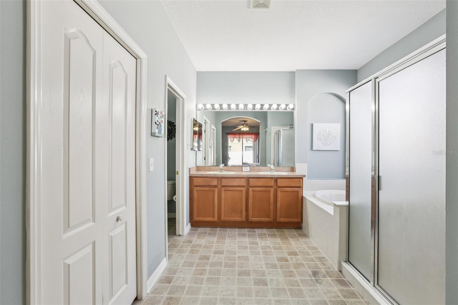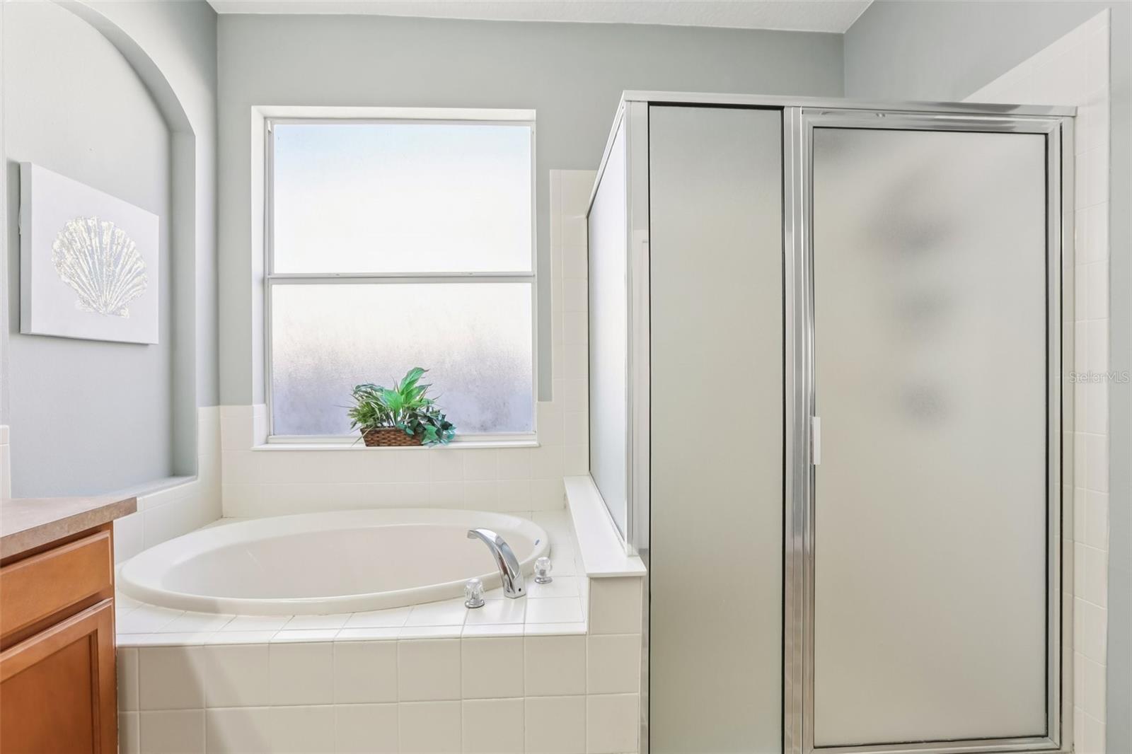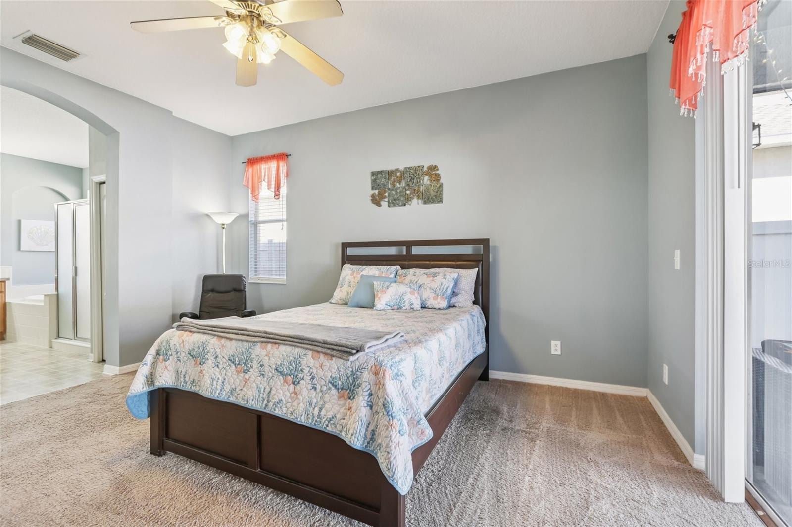 Welcome Home! Enter Your Welcoming Foyer into this open floor plan home situated in the quiet and highly desirable Amberly neighborhood of Oak Creek In Riverview. To your right are two spacious bedrooms sharing a full hall bath featuring a tiled tub/shower combination and a transom window for natural light and privacy. Across the Foyer is the conveniently located laundry room and leads to the 2 car garage. Continue into the spacious Great Room adjacent to the Kitchen and "L" shaped separate dinning area. The kitchen features a large eat-in area with Bay windows overlooking the fully fenced backyard. Exit the Great Room through sliding doors into the large screened in lanai offering a wonderful gathering area also adjacent to the Kitchen for ease of entertaining guests. To the left of the Great Room is the Primary Suite, which features sliding glass doors also leading to the lanai. The en-suite bathroom features a large walk-in closet, linen closet, separate toilet room, double sink vanity, a soaking tub and fully glass-enclosed walk-in shower. Decorative niches and Arches framing the windows and doors along with vaulted ceilings in the main living area, add a touch of elegance to this home and lets it live larger than its square footage. The fully fenced backyard and covered screened in rear lanai, offers a peaceful place to relax after a full day of activities. Other features of the home include hurricane shutters, reinforced garage door and a newer roof (2021). Current owners also added gutters on the front and sides of the home. A security system with ring camera doorbell at the front of the home provides additional piece of mind. You'll really enjoy walking to the community clubhouse and pool which is only four homes away! The great location is close to the greater Tampa Bay area, entertainment, shopping, restaurants and the beautiful Gulf beaches. Don't miss out on this opportunity to call this great house your home! Schedule your private showing today!