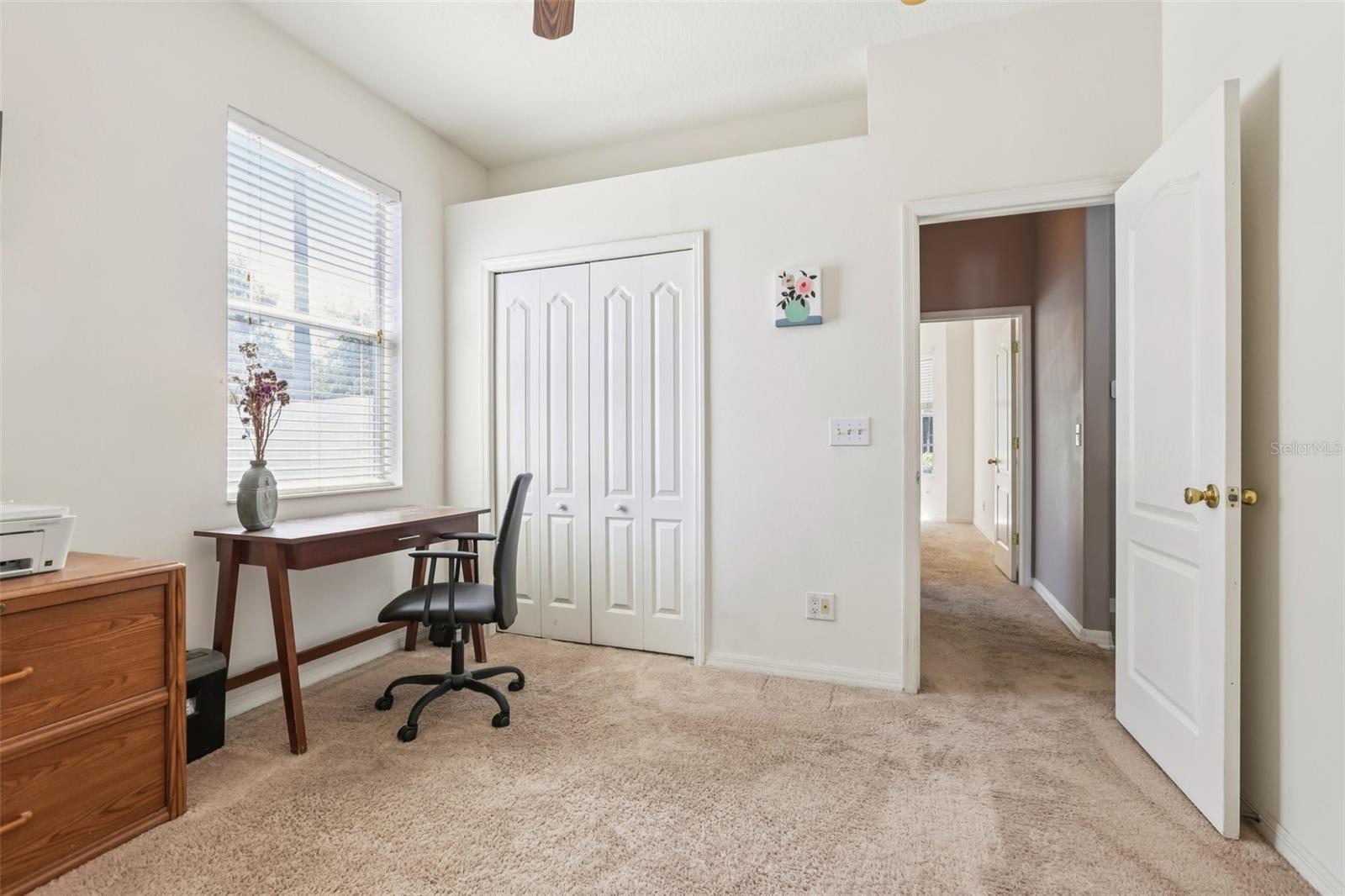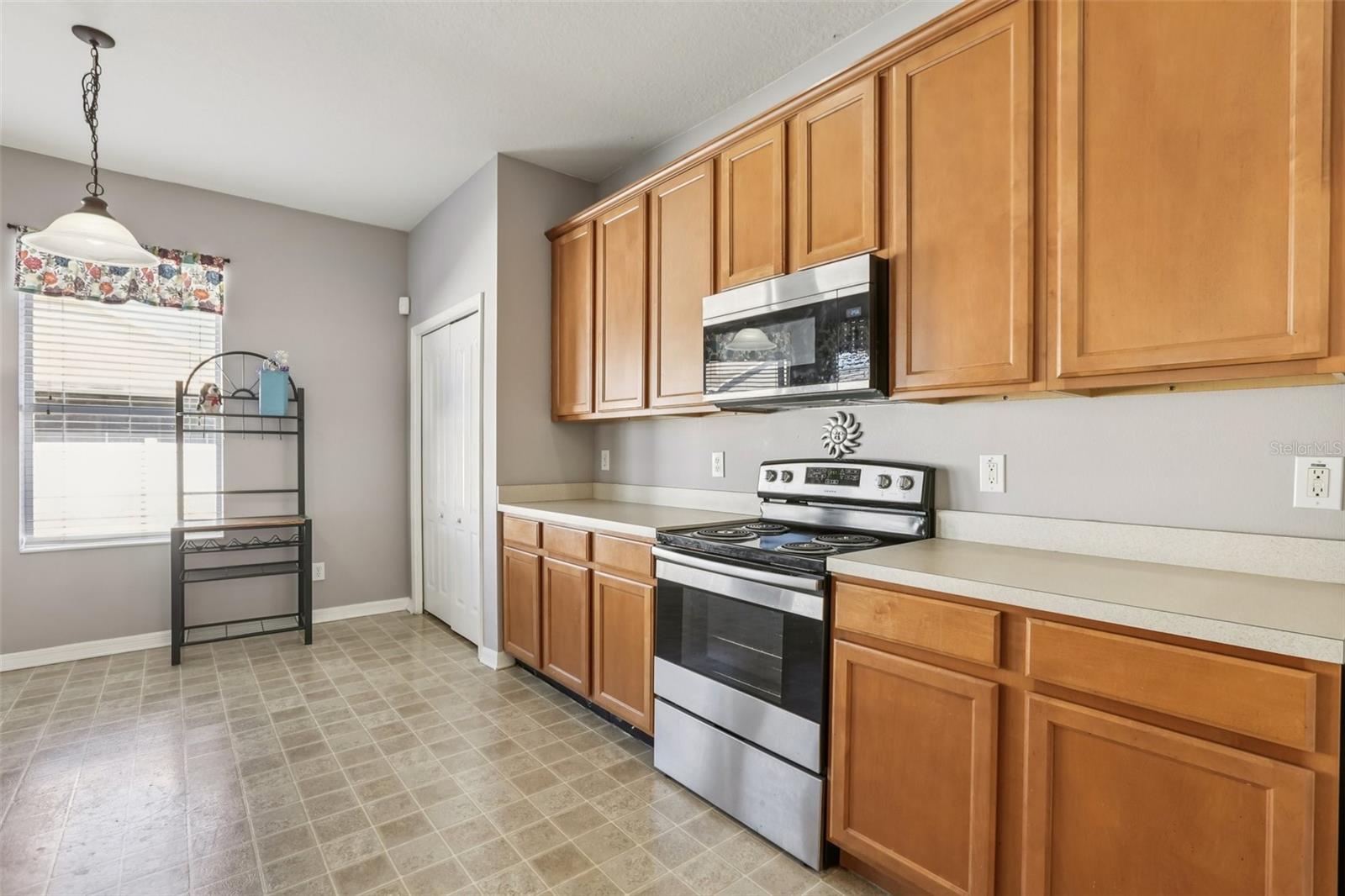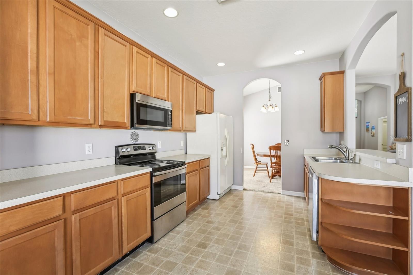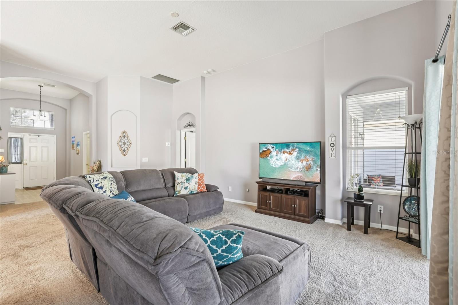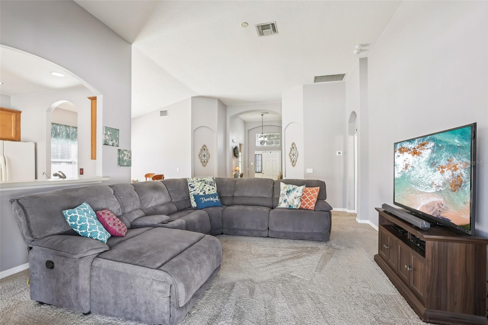 Welcome Home! Enter Your Welcoming Foyer into this open floor plan home situated in the quiet and highly desirable Amberly neighborhood of Oak Creek In Riverview. To your right are two spacious bedrooms sharing a full hall bath featuring a tiled tub/shower combination and a transom window for natural light and privacy. Across the Foyer is the conveniently located laundry room and leads to the 2 car garage. Continue into the spacious Great Room adjacent to the Kitchen and "L" shaped separate dinning area. The kitchen features a large eat-in area with Bay windows overlooking the fully fenced backyard. Exit the Great Room through sliding doors into the large screened in lanai offering a wonderful gathering area also adjacent to the Kitchen for ease of entertaining guests. To the left of the Great Room is the Primary Suite, which features sliding glass doors also leading to the lanai. The en-suite bathroom features a large walk-in closet, linen closet, separate toilet room, double sink vanity, a soaking tub and fully glass-enclosed walk-in shower. Decorative niches and Arches framing the windows and doors along with vaulted ceilings in the main living area, add a touch of elegance to this home and lets it live larger than its square footage. The fully fenced backyard and covered screened in rear lanai, offers a peaceful place to relax after a full day of activities. Other features of the home include hurricane shutters, reinforced garage door and a newer roof (2021). Current owners also added gutters on the front and sides of the home. A security system with ring camera doorbell at the front of the home provides additional piece of mind. You'll really enjoy walking to the community clubhouse and pool which is only four homes away! The great location is close to the greater Tampa Bay area, entertainment, shopping, restaurants and the beautiful Gulf beaches. Don't miss out on this opportunity to call this great house your home! Schedule your private showing today!