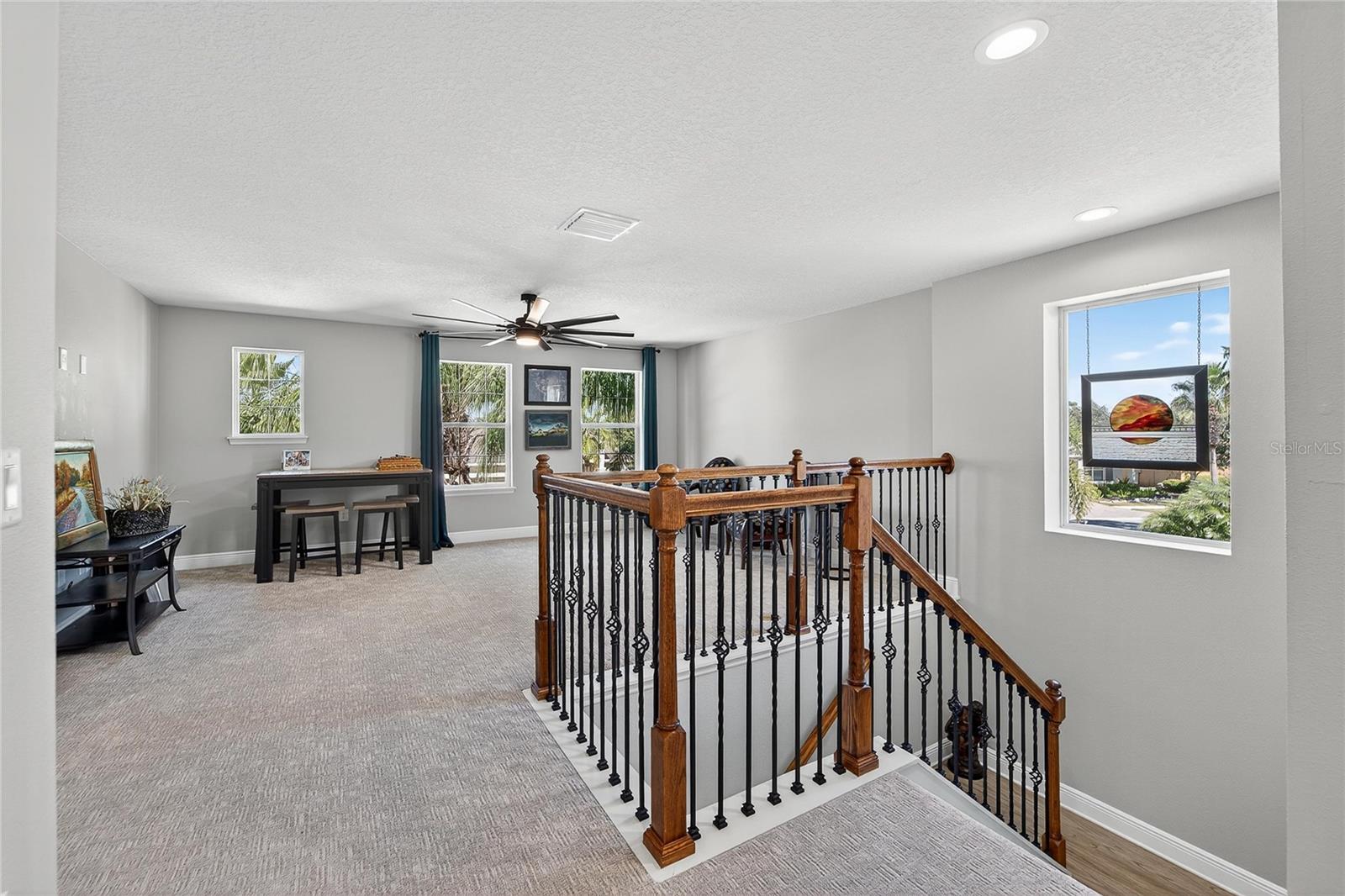 Waterfront Luxury Living on Lake Lucaya If you’ve been waiting for a home that actually feels worth moving for this is it. Impeccably maintained and sitting right on Lake Lucaya, this 4-bedroom, 4.5-bath pool home delivers both function and finish in all the right places. The chef’s kitchen with gas cooktop opens into a large family room anchored by a custom fireplace and framed by water views. The first floor features luxury vinyl in the office, staircase, and primary suite that’s a beautiful and practical upgrade for everyday living. The kitchen has been refreshed with a Kraus sink, upgraded black faucet, and updated fan lighting. The primary suite is privately located on the main level with lake views and an oversized ensuite with a garden tub, walk-in shower, and generous closets. Upstairs you’ll find an oversized bonus/game room plus three guest bedrooms and two full baths. The carpeting upstairs was replaced in November 2022 and those rooms have been used only twice during the holidays, presenting as like-new. Both upstairs bathrooms also received updated tub enclosures at the same time. Outdoor living is equally impressive. Stacking sliders open to a screened pool deck with pavers, outdoor kitchen, and new pool vacuum as of October 2025. The home also includes thoughtful upgrades such as a Phantom retractable screen at the front entry, new ceiling fans throughout the home, added cabinetry and sink in the laundry room, garage ceiling storage racks and T-bar ladder storage, and a newly installed exterior garage keypad (May 2025). This property has been cared for with intention and it truly shows like new. Private tours available, this is the one that makes the move make sense.