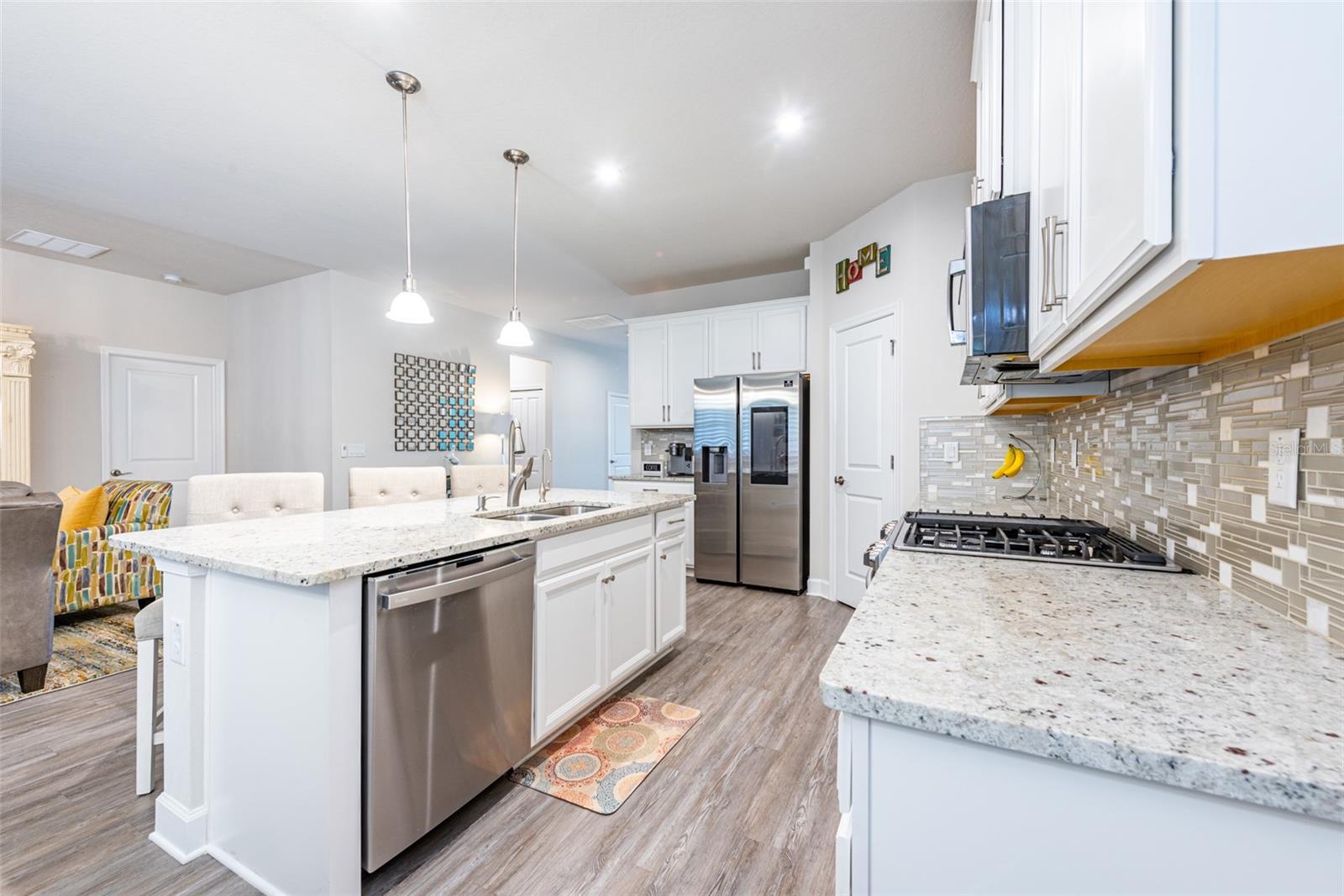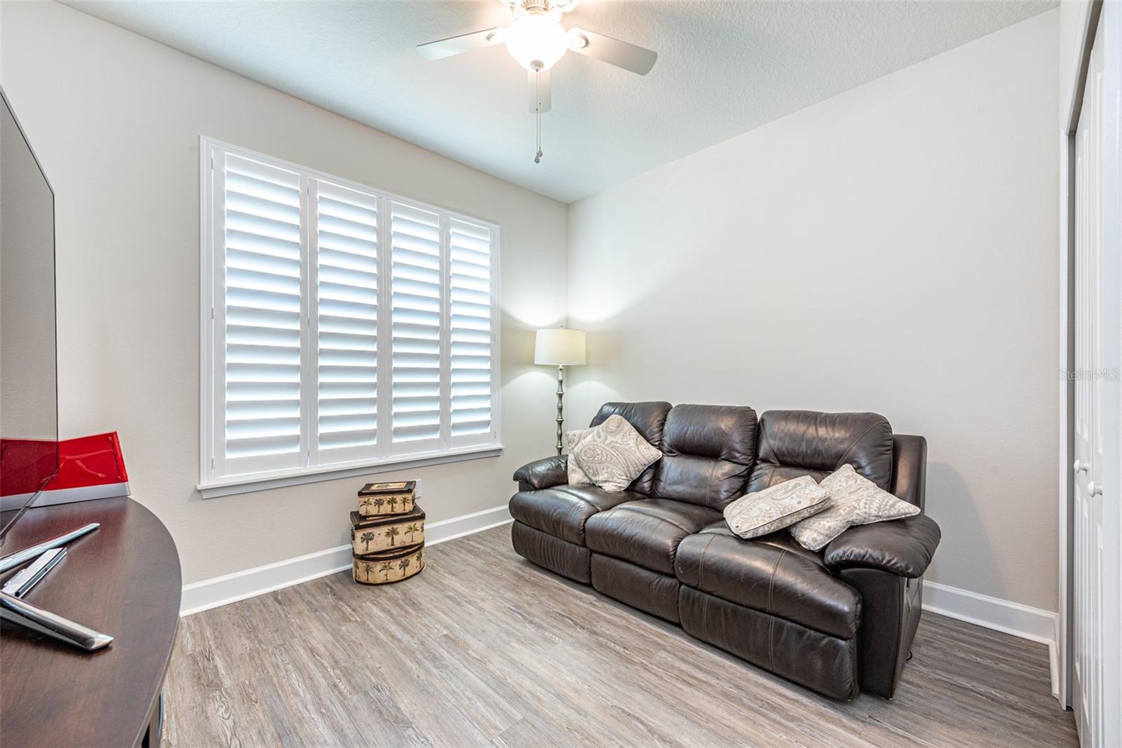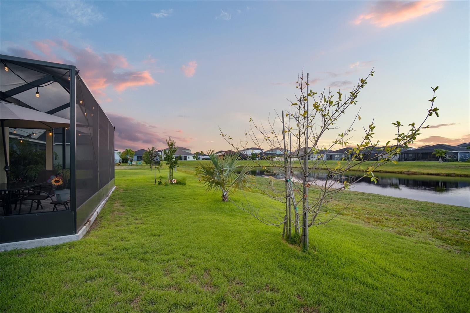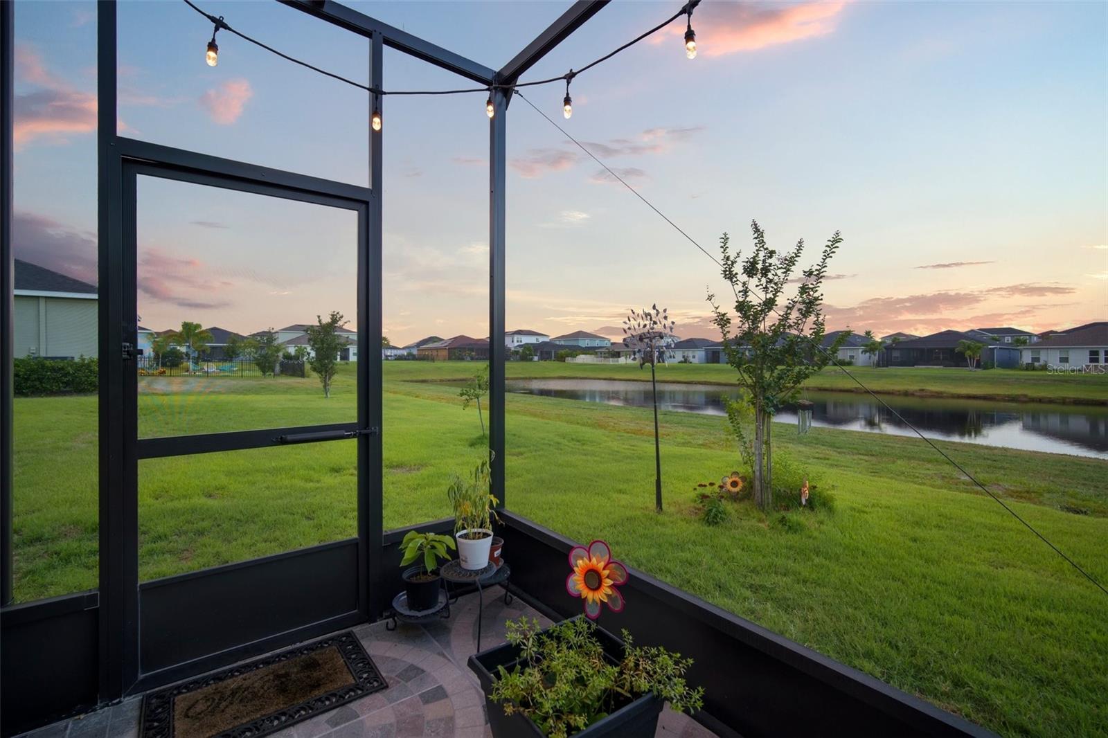 Don't miss this opportunity to live in this desirable Gated Community of Lucaya Lake. This water view home is practically brand new with many upgrades and features throughout, shows like a model home. Pride of Ownership is evident with all grand details. Desirable elevation and paver driveway. Spacious 3 bedrooms, 2 bathrooms, upgraded office and a beautiful, extended custom tiled, screened lanai. Upon entry, you're greeted with a wide foyer with elegant stained glass front door and French double doors to the office. An open floor plan welcomes you into the kitchen/family room combo, with a dinette overlooking the amazing backyard. Seated on a premium home Site with a pond view, and mature trees that provides privacy. Enjoy sunrises and stunning backyard sunsets. The master suite is a true retreat with en suite bathroom featuring a walk in shower, dual sinks, granite countertop, comfort height toilet with bidet and a closet OF YOUR DREAMS ! The two car garage boasts plenty of storage space with garage racks installed and with epoxy flooring. Additional upgrades include beautiful LVP flooring, NO carpet, plantation shutters in all windows and sliding door, upgraded granite counters in the kitchen, 42" cabinet with crown molding, upgraded tile wall backsplash, walk-in pantry, all stainless steel appliances upgraded, kitchen vent, cabinets with contemporary brushed nickel handles, 5 1/4 base trim and an UV light in AC unit to kill germs, mold & dust-mites. Lucaya Lake offers all natural gas and features resort style amenities including a 7,000 square foot clubhouse, splash pad, zero pool entry, Boat ramp, playground, fitness center, walking trails, 78 acre lake and community dock accessible to all residents for canoeing, kayaking, paddle boarding and Dock for you to launch your watercraft.. Convenient to downtown Tampa, airport, MacDill Air Force Base, hospitals, and beautiful beaches. Call today for your showing...you will be impressed!