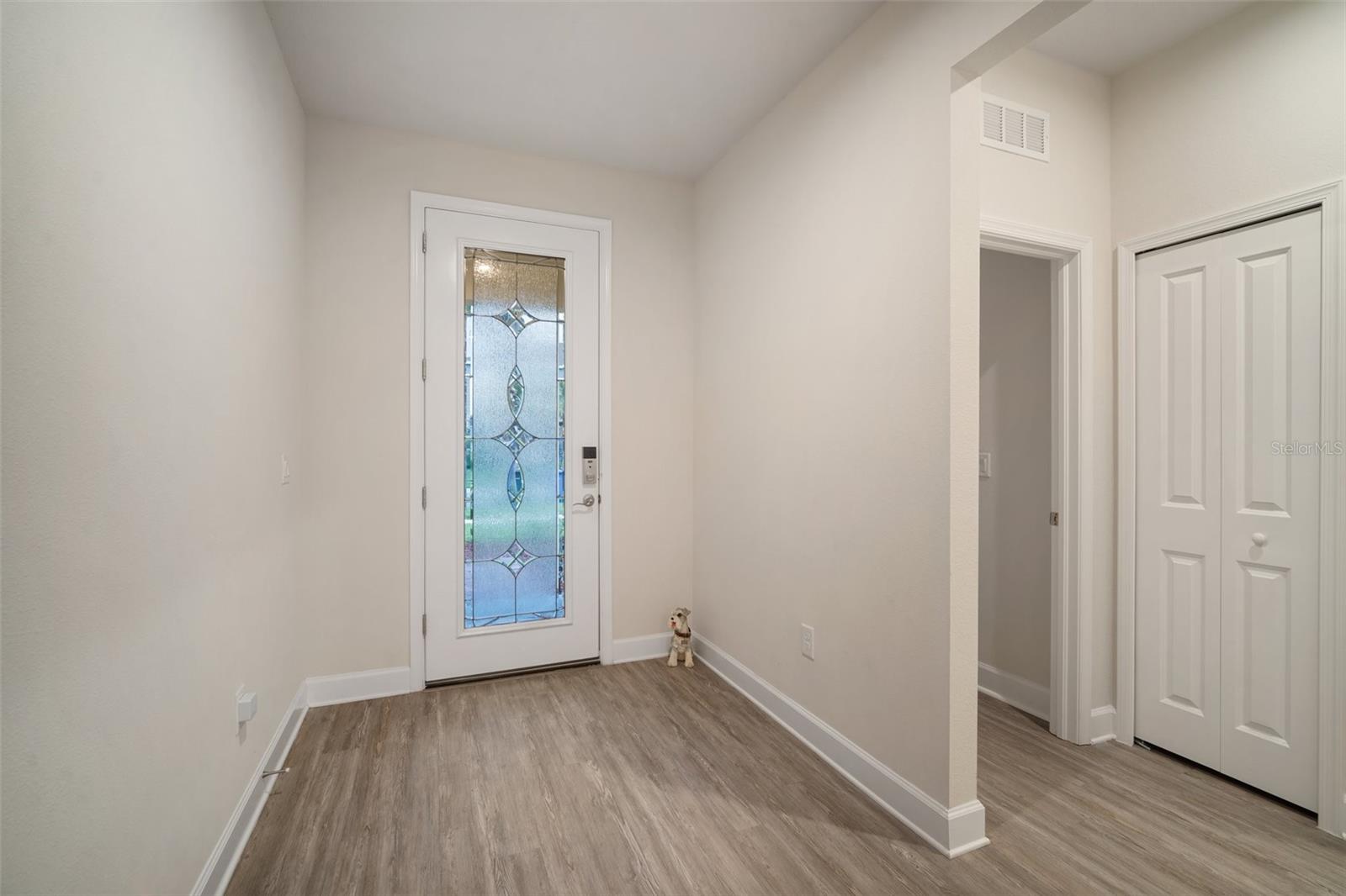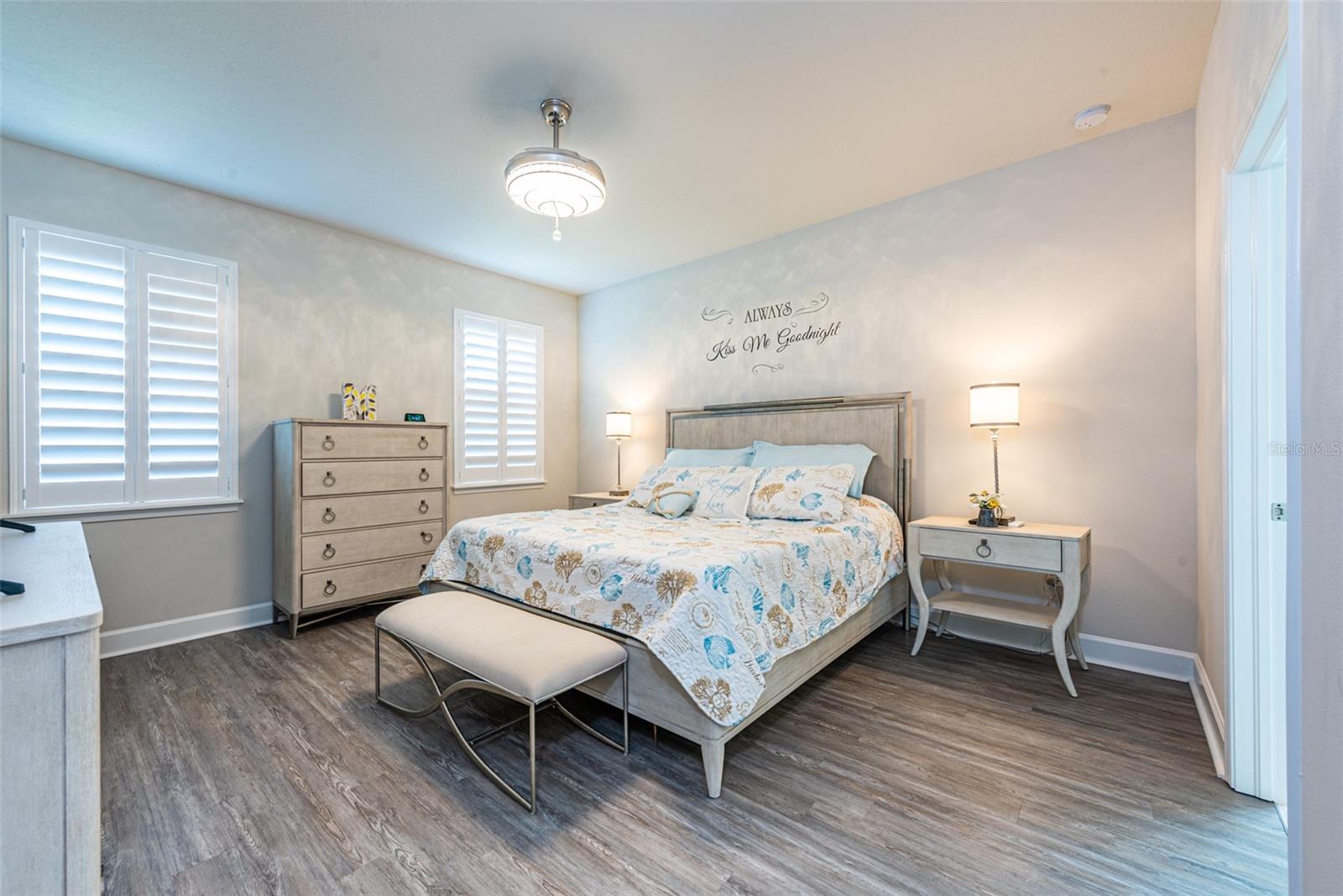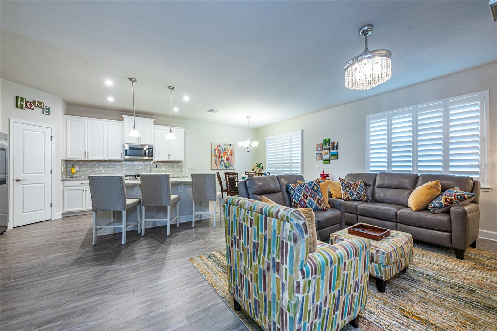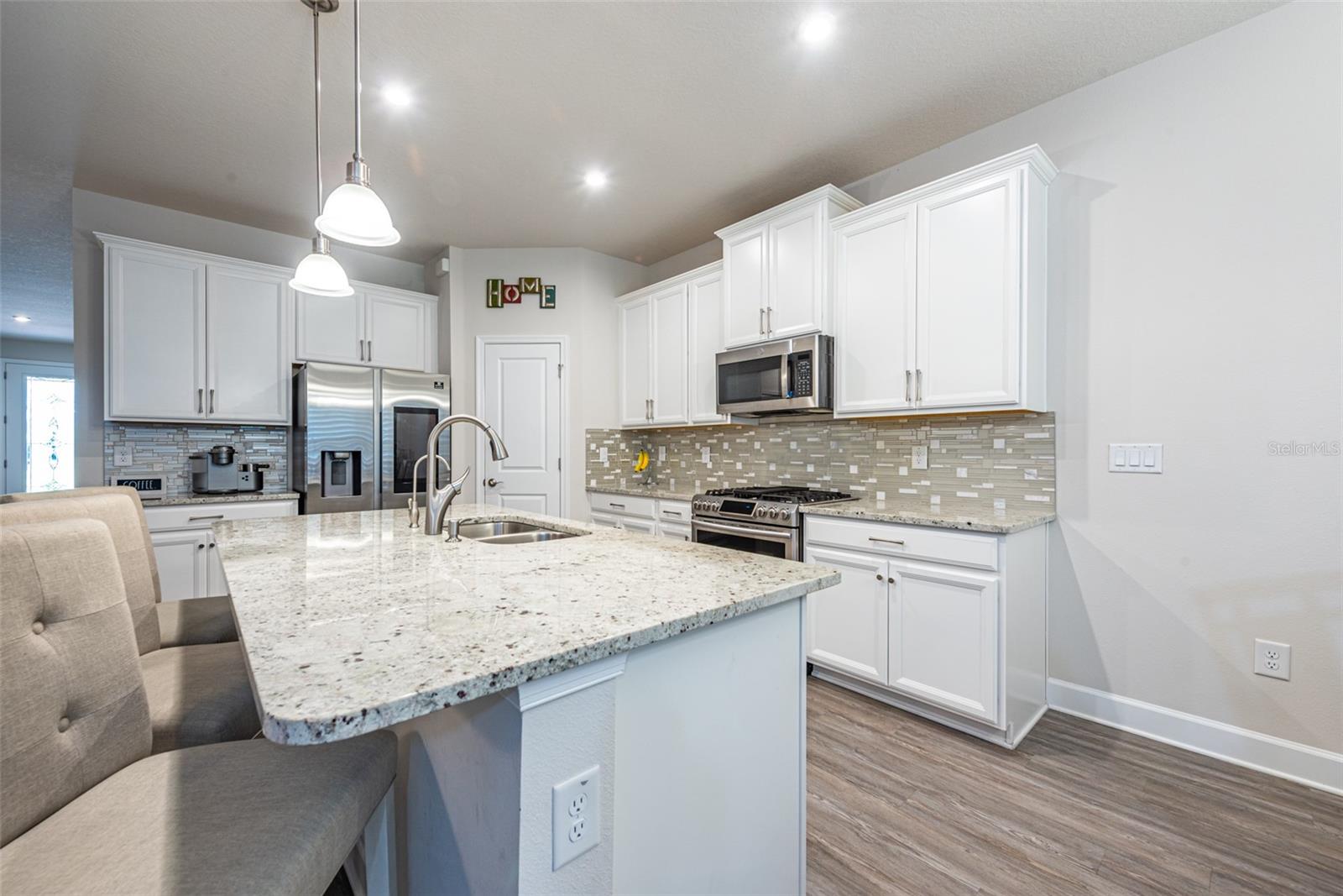 Don't miss this opportunity to live in this desirable Gated Community of Lucaya Lake. This water view home is practically brand new with many upgrades and features throughout, shows like a model home. Pride of Ownership is evident with all grand details. Desirable elevation and paver driveway. Spacious 3 bedrooms, 2 bathrooms, upgraded office and a beautiful, extended custom tiled, screened lanai. Upon entry, you're greeted with a wide foyer with elegant stained glass front door and French double doors to the office. An open floor plan welcomes you into the kitchen/family room combo, with a dinette overlooking the amazing backyard. Seated on a premium home Site with a pond view, and mature trees that provides privacy. Enjoy sunrises and stunning backyard sunsets. The master suite is a true retreat with en suite bathroom featuring a walk in shower, dual sinks, granite countertop, comfort height toilet with bidet and a closet OF YOUR DREAMS ! The two car garage boasts plenty of storage space with garage racks installed and with epoxy flooring. Additional upgrades include beautiful LVP flooring, NO carpet, plantation shutters in all windows and sliding door, upgraded granite counters in the kitchen, 42" cabinet with crown molding, upgraded tile wall backsplash, walk-in pantry, all stainless steel appliances upgraded, kitchen vent, cabinets with contemporary brushed nickel handles, 5 1/4 base trim and an UV light in AC unit to kill germs, mold & dust-mites. Lucaya Lake offers all natural gas and features resort style amenities including a 7,000 square foot clubhouse, splash pad, zero pool entry, Boat ramp, playground, fitness center, walking trails, 78 acre lake and community dock accessible to all residents for canoeing, kayaking, paddle boarding and Dock for you to launch your watercraft.. Convenient to downtown Tampa, airport, MacDill Air Force Base, hospitals, and beautiful beaches. Call today for your showing...you will be impressed!