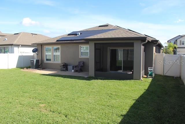 Welcome to your next home, perfectly nestled in the heart of Riverview! Built just five years ago, this beautifully designed floor plan offers 3-bedrooms, 2-baths, and a 2-car garage. This home combines modern style with everyday functionality. The open-concept design seamlessly connects the living spaces. Inside, you'll find premium finishes throughout, including 18x18 tile, gray cabinetry, Granite countertops in the kitchen and baths, LED flush mount lighting, and 2 faux wood blinds. The home also includes all Solar panels (still owes) appliances including washer and dryer for added convenience. Step outside to a covered lanai with brick pavers. The fully fenced yard, complete with a 6-foot privacy fence and no rear neighbors, offers both seclusion and peace of mind: perfect for entertaining, relaxing, or enjoying the stunning sunsets. Community amenities feature a pool, dog park, and walking trails, with shopping, dining, medical facilities, and major roadways just minutes away this home will not last long. Reach out today for more information!