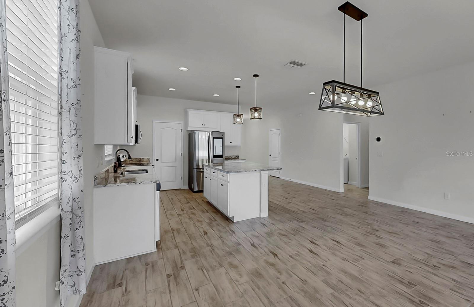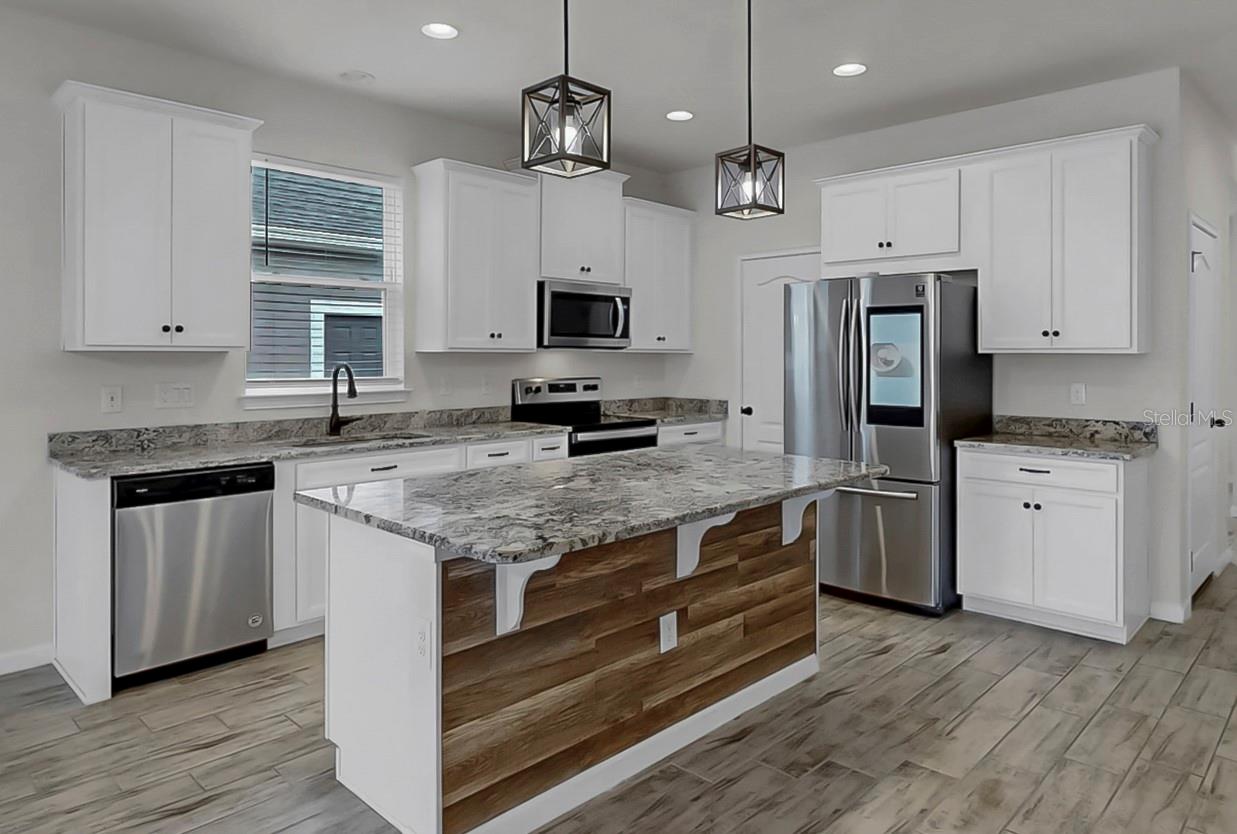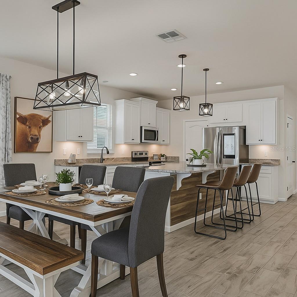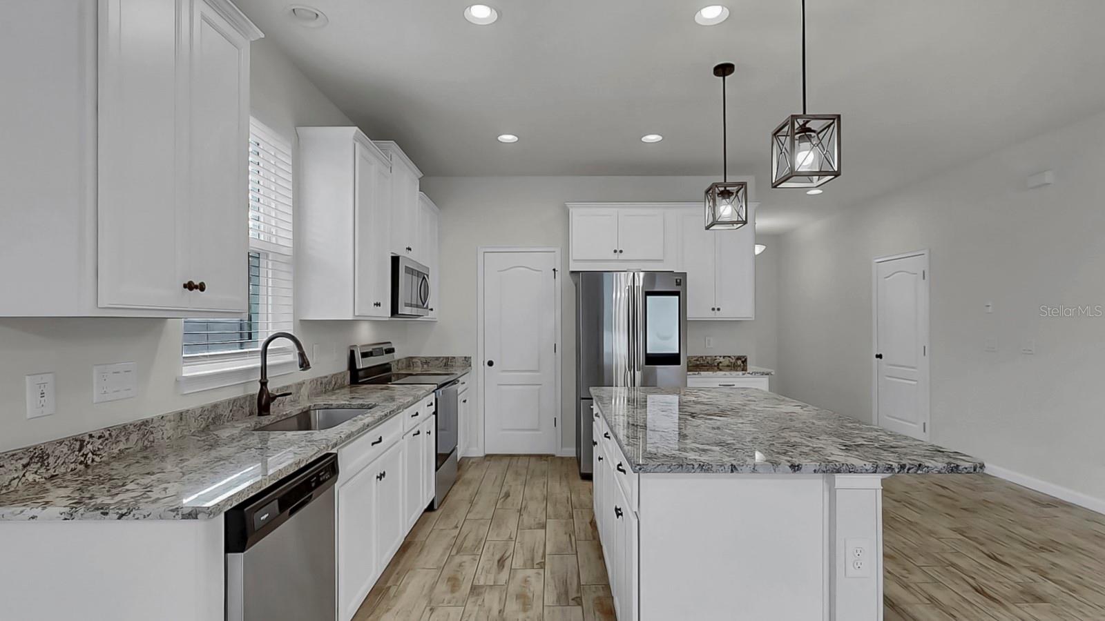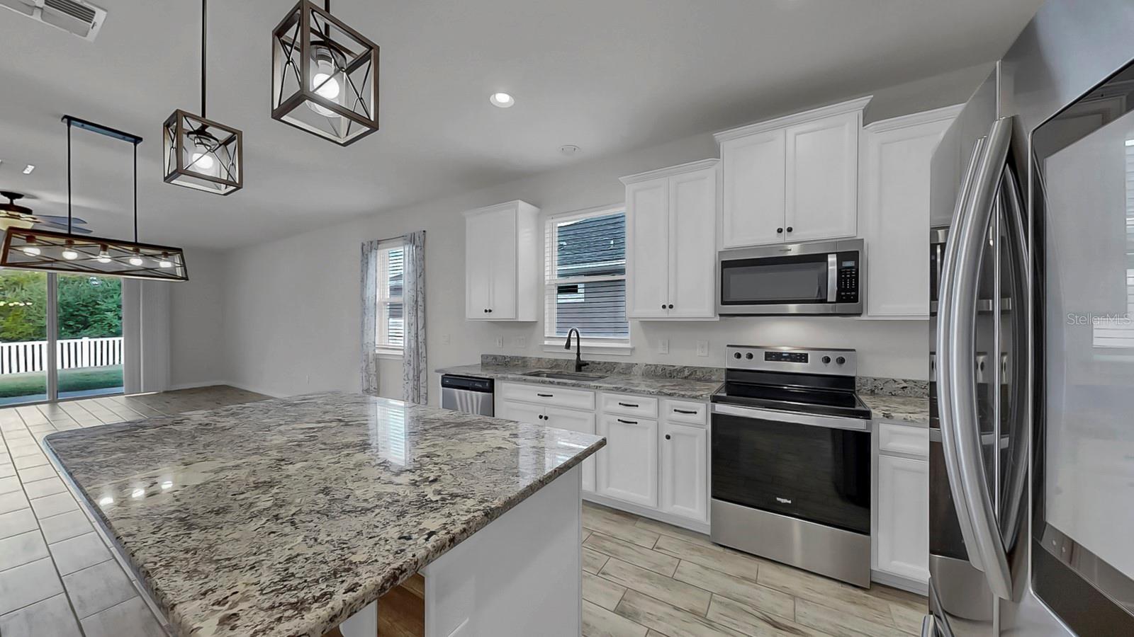 Step into this BEAUTIFULLY MAINTAINED 3-bedroom, 2-bath home with a FLEX ROOM/HOME OFFICE, offering OVER 2,000 square feet of living space. Built by Mattamy Homes in 2020, this residence combines style and comfort and is PRICED UNDER MARKET VALUE for exceptional appeal! The open-concept layout showcases upgraded WOOD-LOOK TILE flooring that flows seamlessly throughout the main living areas. The chef-inspired kitchen features trendy WHITE cabinetry, granite countertops, stainless steel appliances, large pantry and an upgraded SMART REFRIGERATOR. Stylish updated light fixtures complete the space, creating a bright and inviting atmosphere perfect for entertaining or everyday living. The kitchen overlooks the spacious living room, where THREE OVERSIZED sliding glass doors open to the patio—filling the home with natural light and offering tranquil views of the nature CONSERVATION area behind the property. Retreat to the spacious primary suite, featuring a well-appointed ensuite bath and generous closet space, with TWO WALK-IN CLOSETS. The flex room provides the ideal setup for a home office, playroom, or additional living area. Additional highlights include a two-car garage with durable epoxy flooring, modern finishes throughout, and energy-efficient construction. This beautiful home is located in the desirable Triple Creek neighborhood, where residents are granted access to THREE amenity centers, THREE pools, TWO clubhouses, TWO fitness centers, basketball, tennis and volleyball courts, dog parks, walking trails and SO MUCH MORE!