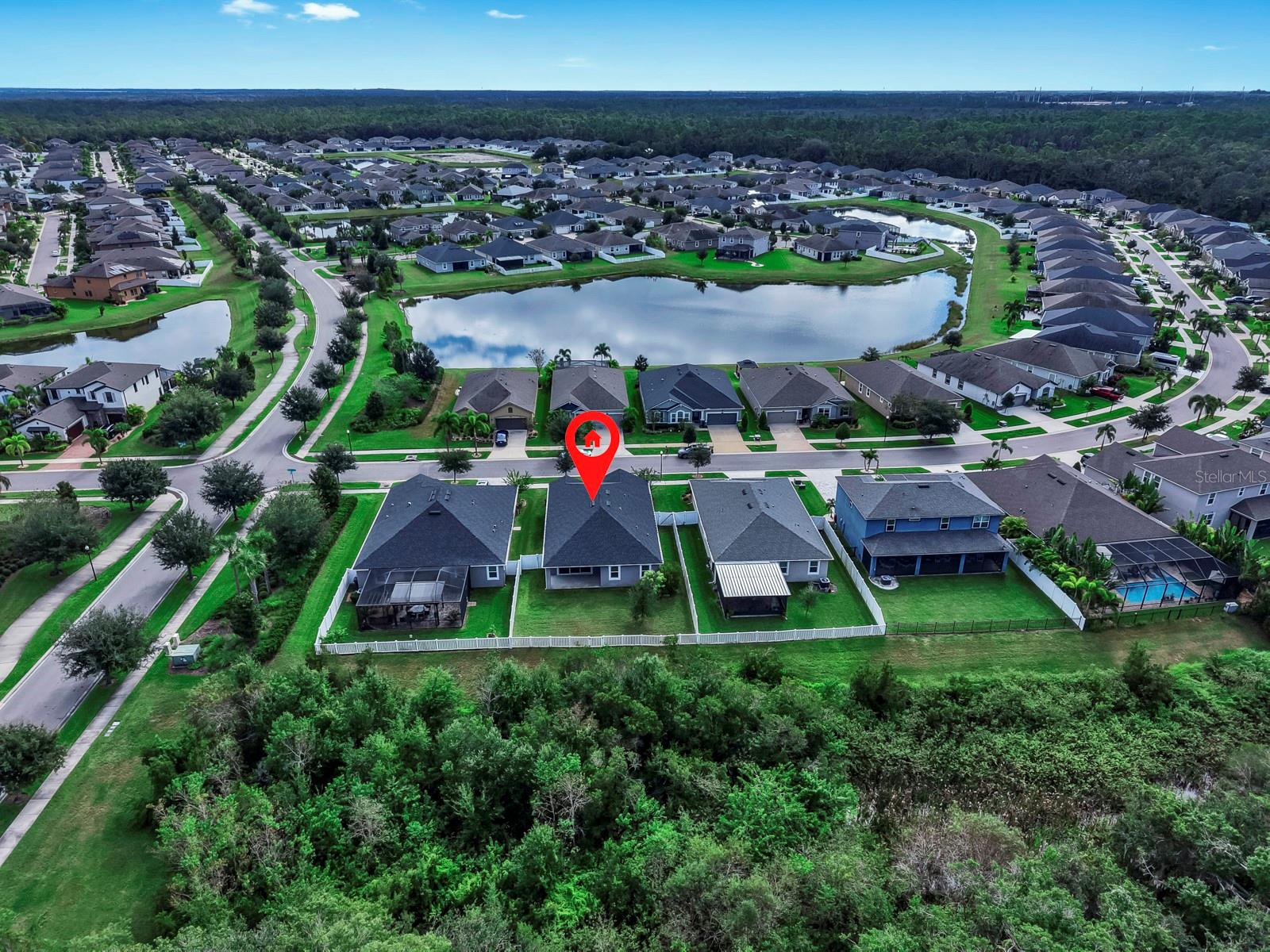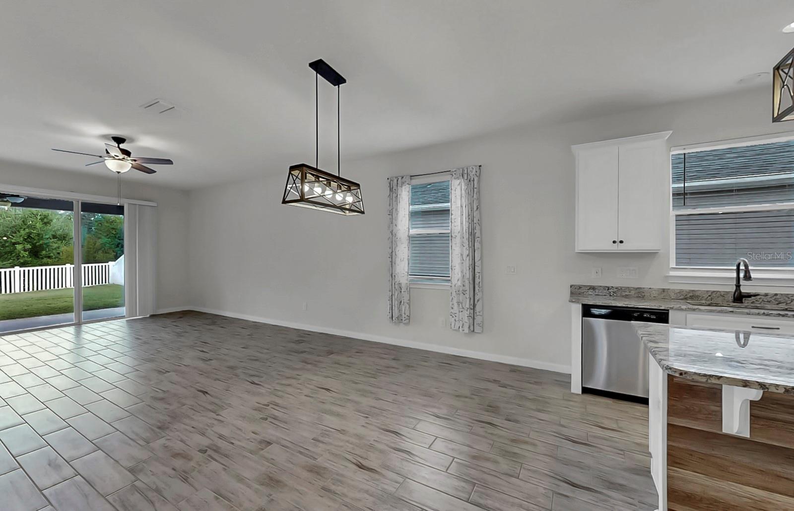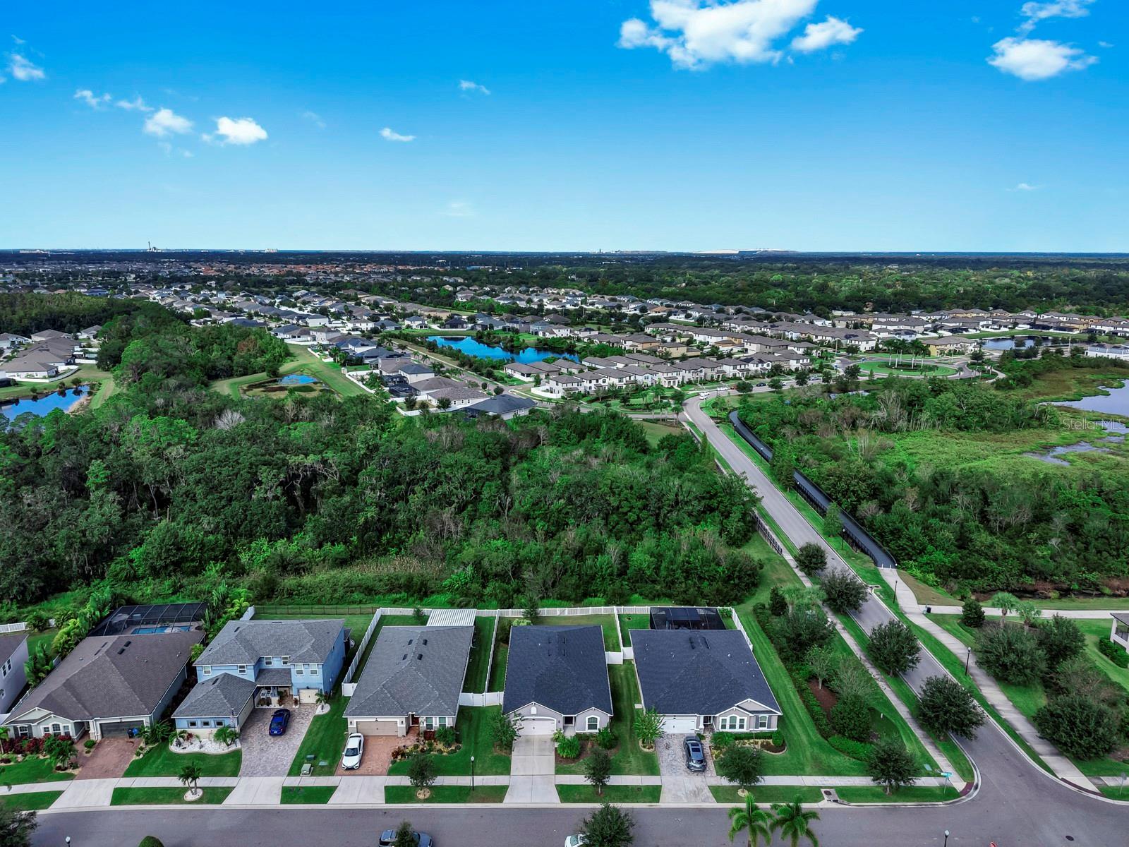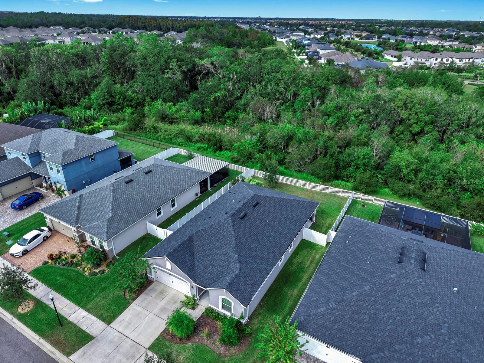 Step into this BEAUTIFULLY MAINTAINED 3-bedroom, 2-bath home with a FLEX ROOM/HOME OFFICE, offering OVER 2,000 square feet of living space. Built by Mattamy Homes in 2020, this residence combines style and comfort and is PRICED UNDER MARKET VALUE for exceptional appeal! The open-concept layout showcases upgraded WOOD-LOOK TILE flooring that flows seamlessly throughout the main living areas. The chef-inspired kitchen features trendy WHITE cabinetry, granite countertops, stainless steel appliances, large pantry and an upgraded SMART REFRIGERATOR. Stylish updated light fixtures complete the space, creating a bright and inviting atmosphere perfect for entertaining or everyday living. The kitchen overlooks the spacious living room, where THREE OVERSIZED sliding glass doors open to the patio—filling the home with natural light and offering tranquil views of the nature CONSERVATION area behind the property. Retreat to the spacious primary suite, featuring a well-appointed ensuite bath and generous closet space, with TWO WALK-IN CLOSETS. The flex room provides the ideal setup for a home office, playroom, or additional living area. Additional highlights include a two-car garage with durable epoxy flooring, modern finishes throughout, and energy-efficient construction. This beautiful home is located in the desirable Triple Creek neighborhood, where residents are granted access to THREE amenity centers, THREE pools, TWO clubhouses, TWO fitness centers, basketball, tennis and volleyball courts, dog parks, walking trails and SO MUCH MORE!