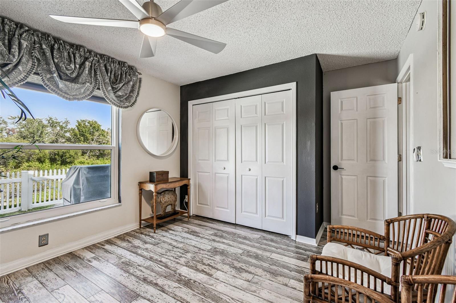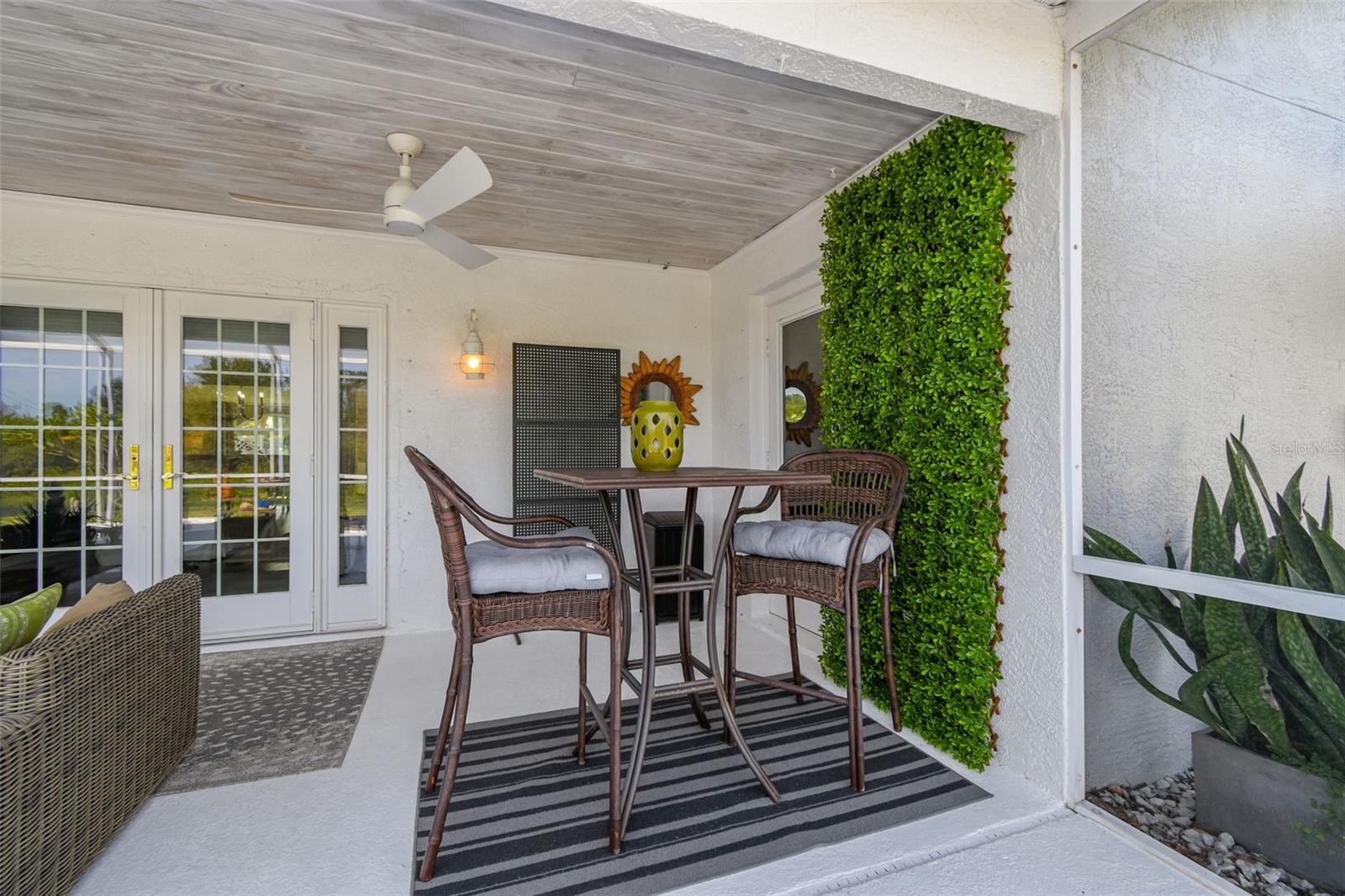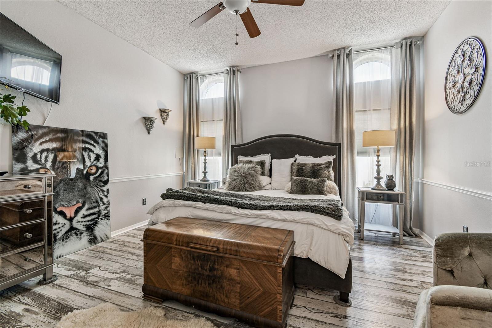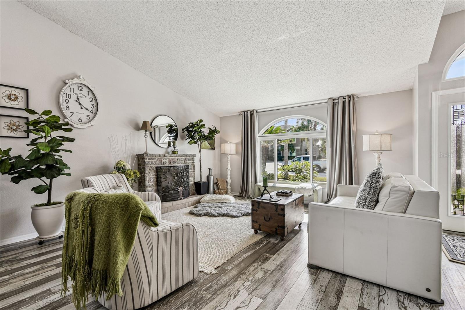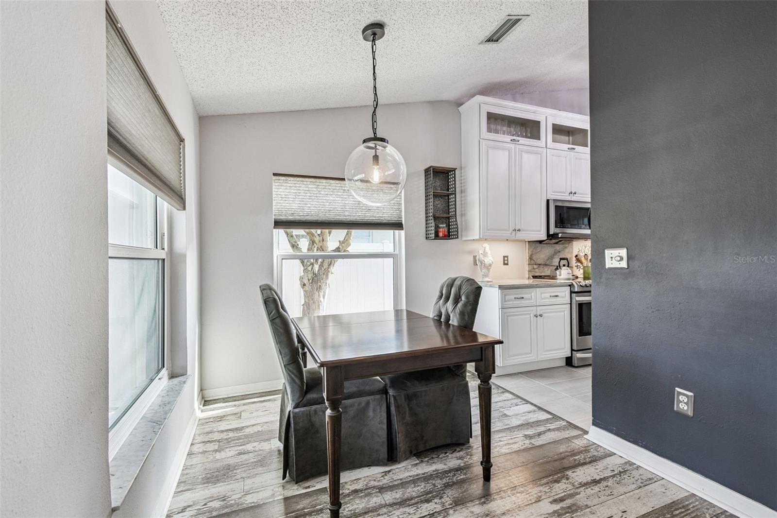 This stunning home has undergone a beautiful transformation. Step inside and you're welcomed with the same fantastic flooring throughout the entire home. The floors flow seamlessly from room to room. The living and dining rooms are light and bright with newer impact windows throughout. The kitchen was remodeled in 2017 with new cabinets, flooring, appliances, and stunning quartz counters. The Swarovski crystal chandelier is the icing on the cake. The family room is a wonderful place to look out the French doors to the water and conservation views, or to hang out and watch movies. Down the hall, there are two great-sized bedrooms with good-sized closets. The pool bathroom is perfectly placed with a door to the outside. It has been updated with new lighting, a sink, a faucet, and a toilet. There is also a laundry room that includes the washer and dryer. The primary suite is split from the two other bedrooms and is a private space. It has a large walk-in closet with a fun sparkly chandelier. The primary bathroom has been updated with new sinks, faucets, and lighting. Outside the lanai area is a great space for lounging. There is an 8-person spa that is perfect for relaxing. a brand new heater in 2025. The yard is partially fenced with a doggie door that is fantastic for your furry friends. The backyard has water and conservation with no rear neighbors. There is a huge 3-car garage with the most beautiful garage doors. The side garage door to the yard is an impact door that was installed in 2025. Other improvements are a metal roof, which is new in November 2024, and the impact windows were installed in 2024 and 2025. Come make this beautiful house your new home.