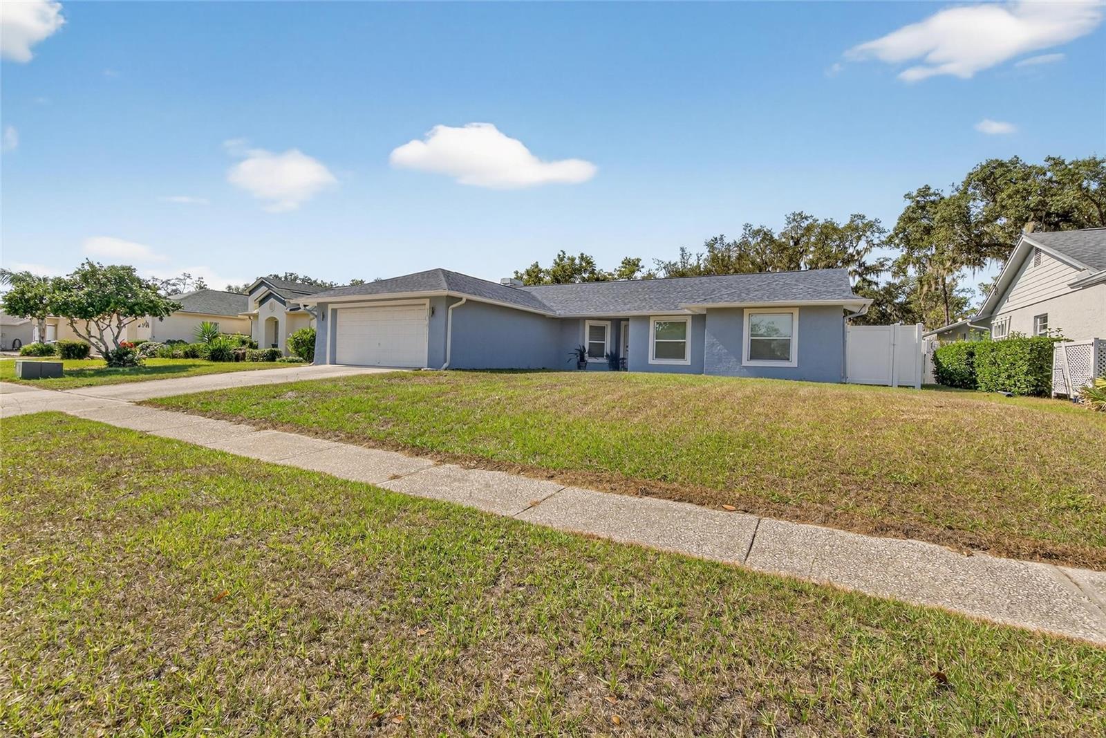A 3-YEAR-NEW ROOF AND DEBT-FREE SOLAR PANELS FOR HOME AND POOL are the crowning values at this quality home overlooking conservation land instead of a back neighbor! You'll love this property's low electric power bills, also helped by efficiencies of its 3-ton AC/heat pump and water heater both installed new in 2023! Additional improvements since then include renovating all floors with impressively sized tile, removing popcorn ceiling texture during interior repainting, installing an electric vehicle charger in the 2-car garage, and replacing 2 of the 3 slider sets that throw the home open to the pool lanai and privacy-fenced yard for great entertaining. That lanai provides both screened and roof-sheltered sections for all-weather enjoyment, while the slider access extends from the central living room, the family room with fireplace, as well as the owner's suite. (In fact, along with the bedroom sliders, the recently updated en suite bathroom has its own lanai door for poolside convenience.) This 3-bed / 2-bath design has been modified so 1 secondary bedroom has its own exterior entry on the side, creating a possible office or in-law suite, and that room is enhanced by a mini-split AC. Elsewhere in 1,830 SF, you'll find wood cabinets, stone counters, a glass-tile kitchen backsplash, undermount and integrated sinks, stainless-steel appliances, decorator fixtures including crystal chandeliers, upgraded baseboards and more. It's all in Riverview's Boyette Springs, a NO-FEE neighborhood with its own elementary school and playground park close to many good schools, shops, restaurants, recreation options and more. This home is tucked into a quiet corner at the back of the community against tree-lined county preservation land, so it's truly a special spot. See it today!