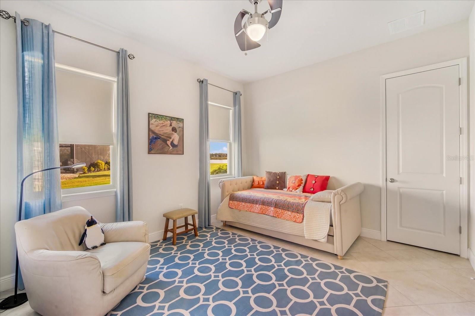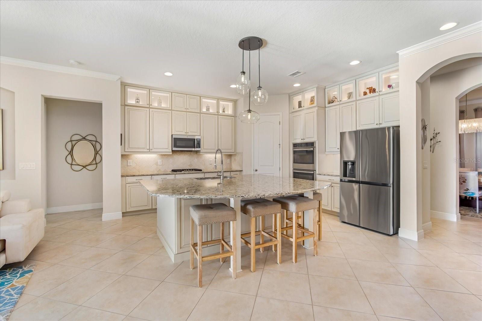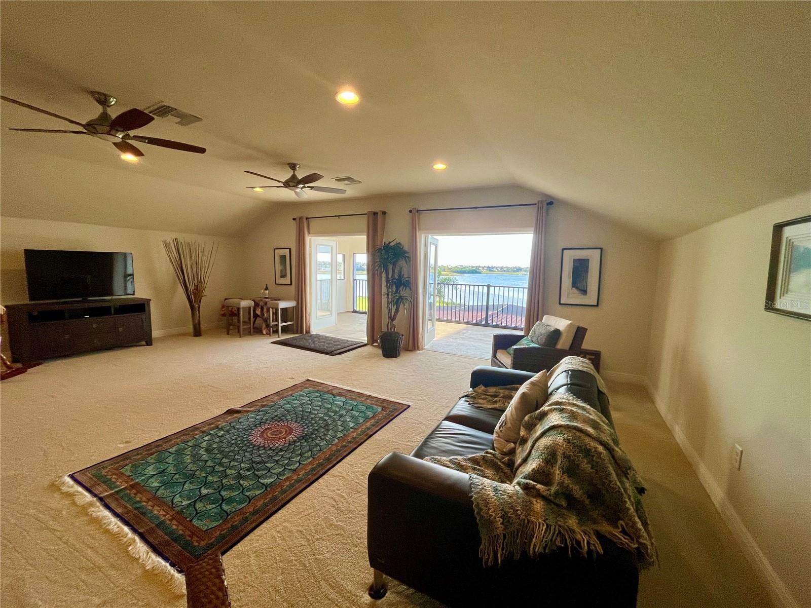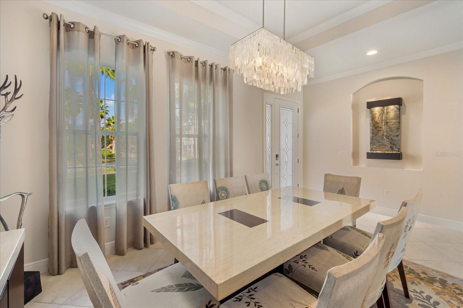 Welcome to your own slice of paradise at 11427 Lake Lucaya Drive, a stunning contemporary residence that redefines waterfront living with an impressive 242 feet of water frontage. Perched on an extra-large .7-acre lot that arguably boasts the best sunset views in the neighborhood—perfect for watching local wildlife like cormorants , hawks , and bald eagles —this home offers a rare blend of luxury and tranquility. Freshly painted just two months ago, the interior features ceramic tile throughout the first floor and elegant tray ceilings, creating a sophisticated flow. The layout is incredibly functional with four bedrooms downstairs—including one currently used as an office and a second bedroom with its own walk-in closet—plus a versatile upstairs loft with a rug that serves as the perfect bonus room. The chef’s kitchen is a true showstopper, featuring gleaming quartz countertops, a pantry closet with maximized shelving, and upgraded appliances including double ovens, a microwave, and a 5-burner gas cooktop. Entertaining is effortless as pocket slider doors vanish to reveal the paved lanai, which features an extended thermal roof and includes the BBQ furniture and an elevated platform suitable for a dining table or dancing, making it ready for your first gathering. Whether you are admiring the serene indoor and outdoor water features or enjoying the privacy of the open cul-de-sac, this home is a sanctuary. Practicality meets luxury with tons of storage, including a finished attic for seasonal items and maximized shelving in the master walk-in closet. The home is equipped with irrigation, a water softener and filters, and complete storm protection with hurricane panels downstairs and manual crank shutters upstairs. The laundry room is fully outfitted with a stainless steel drop sink, kitchen-quality cabinetry, and the washer and dryer included. The bathrooms are equally impressive, featuring all granite countertops and double bowls in both the Jack and Jill and Master baths. Outside, the long driveway provides plenty of guest parking, and a private shared dock is permitted to fully enjoy the lake lifestyle. You will love living in this resort-style community, which offers a 78-acre lake, pool with cabanas, splash pads, clubhouse, beach area, public dock, and fitness center. Unbeatably convenient, you are located right next to St. Joseph South Baycare Hospital and Advent Health Hospital, with easy access to I-75, US 301, shopping, dining, and downtown Tampa. This is the complete package!