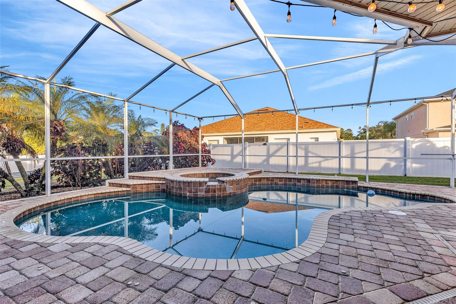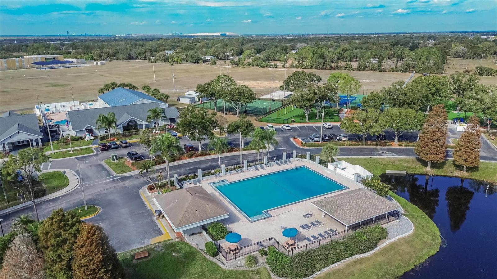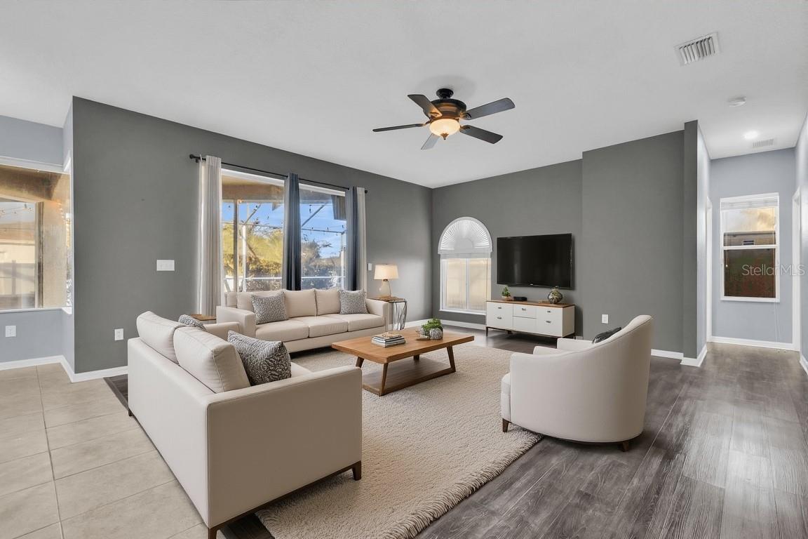 One or more photo(s) has been virtually staged. Welcome to effortless Florida living in the highly sought-after Summerfield Village Community of Riverview. This beautifully maintained, one-story, block-constructed home offers a popular 3-way split floor plan with 4 bedrooms, 3 full baths, and a 3-car garage, delivering both privacy and flexibility for today’s lifestyles. Built in 2005 and offering 2,373 square feet of heated living space (3,189 total square feet), this residence sits on a generous 0.2342-acre lot and is truly turn-key. From the moment you enter, you’re greeted by formal living and dining rooms with immediate views of the private pool, setting the tone for relaxed yet refined living. The primary suite is privately positioned and features serene pool views, a spacious ensuite bath with dual vanities, a large soaking tub, walk-in shower, water closet, and an oversized walk-in closet. On the opposite side of the home, the kitchen anchors the living space with granite countertops, stainless steel appliances, a breakfast area, counter seating, pantry, and direct access to the large laundry room with utility sink. The adjacent family room opens through large sliding doors to the outdoor living area, seamlessly blending indoor and outdoor spaces. Three additional bedrooms are thoughtfully arranged, with two sharing a full bath and a third bedroom offering another full bath with direct access to the pool, ideal for guests, a home office, or gym setup. Step outside to your private retreat featuring a concrete, saltwater, heated pool and spa, all with screened enclosure. The paver patio surrounds the pool and outdoor living areas, complemented by lush landscaping, a fully fenced yard, and a convenient storage shed. Additional highlights include low HOA fees, no CDD, and a prime location near shopping, dining, entertainment, grocery stores, and easy access to I-75. Residents also enjoy access to an impressive community center offering a clubhouse, fitness center, indoor basketball court, tennis and pickleball courts, multiple pools, a dog park, playground, and athletic fields. Conveniently located with easy drives to MacDill Air Force Base, Florida’s renowned beaches, and world-famous theme parks, this home delivers comfort, convenience, and lifestyle in one complete package.