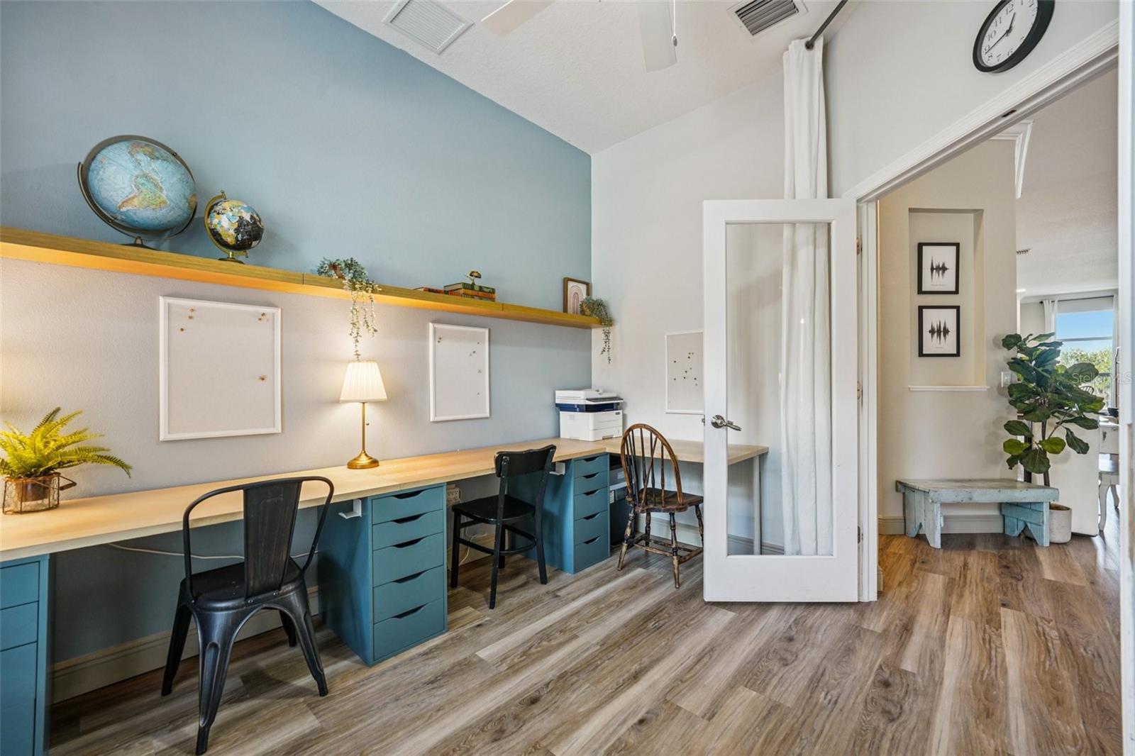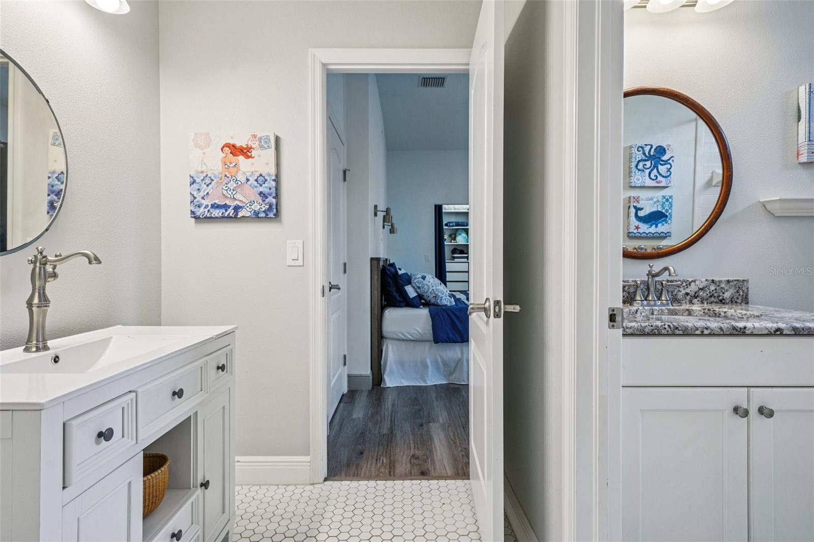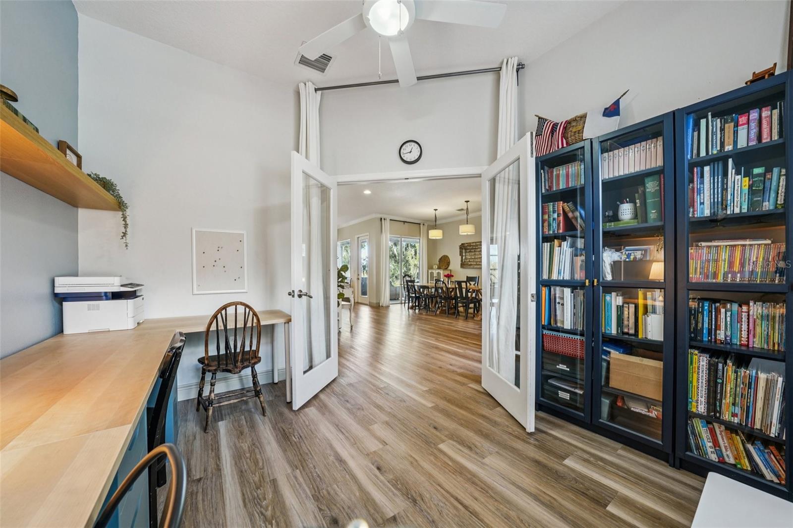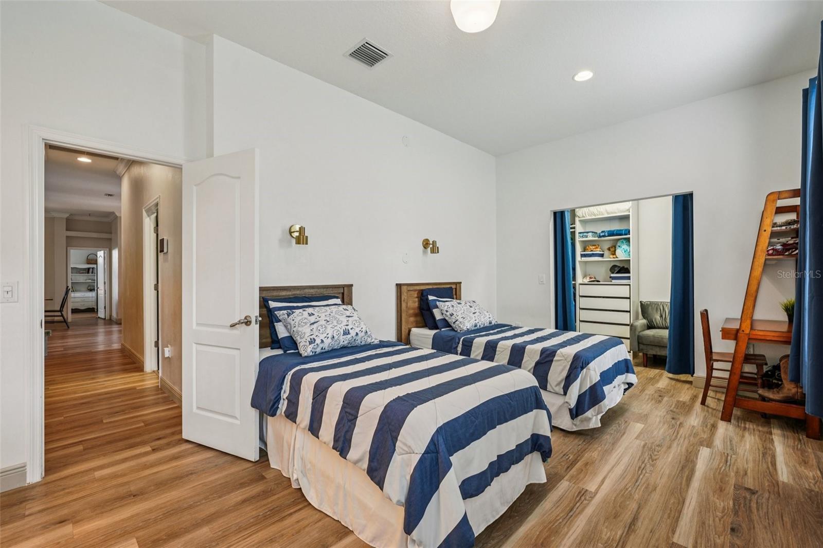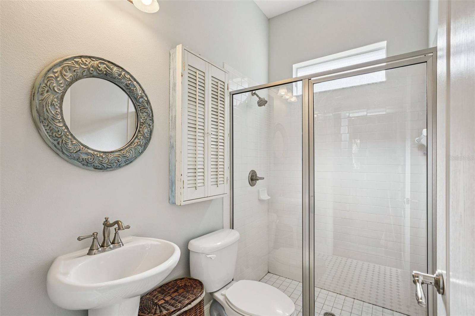 Located in a private gated community on a breathtaking 2.43-acre oversized conservation homesite with direct access and panoramic views of Shadow Lake is this exceptional 2-story residence. Mature oak trees, lush landscaping, and a courtyard-entry 3-car garage with coach lights create striking curb appeal, while the upgraded open deck design (no corner column) and pocket sliding glass doors maximize uninterrupted lake and nature views. The great room showcases a stunning custom wood-burning fireplace built with authentic bricks reclaimed from the historic streets of Ybor City, flanked by large side windows to frame the water views. A custom shiplap mantle with hidden electrical outlet, built-in lighting, and outlets on both sides of the fireplace add both beauty and function. A charming, lighted book nook creates a cozy retreat within the living space. Elegant 5¼" crown molding in the family room, dining room, and foyer, along with upgraded base trim, enhances the home’s architectural detail throughout. Luxury CoreLuxe 5mm waterproof rigid vinyl plank flooring in the San Fernando Hickory finish flows throughout the first floor, with extra material available for the staircase or upstairs bonus room. Storage is abundant with an extended, oversized pantry, spacious laundry room, and well-designed closets featuring swinging doors in the main bedrooms. The gourmet kitchen is a true centerpiece, featuring GE Café appliances, white painted maple shaker-style cabinetry with 42" uppers and crown molding, Level 3 “Alaska Delicatus” White Diamond granite countertops, custom under-cabinet lighting and outlets, a large breakfast bar with generous seating, and a separate breakfast nook. The first-floor primary suite offers tranquil lake views and a spa-inspired bath with a corner 6' garden tub, a fully enclosed shower with a Mr. Steam Thermasol SAA-240 steam unit (unit present, replacement needed for functionality), and a custom double vanity with designer mirrors. Outdoor living is equally impressive with covered and rear porches, an upgraded open deck, fire pit, outdoor kitchen with grill, private irrigated yard, mature oak trees. The spectacular 21’ x 17’ all-cedar Rainbow Clubhouse Package II play set come with a penthouse, monkey bars, rock wall, slide, fort, flower boxes, and hammock swing—professionally installed in November 2024 and backed by a lifetime cedar warranty. A whole-house generator and Energy Star aluminum-framed double-pane windows complete this remarkable lakefront retreat. Don’t miss your chance to make this gem your own—schedule a private tour today!