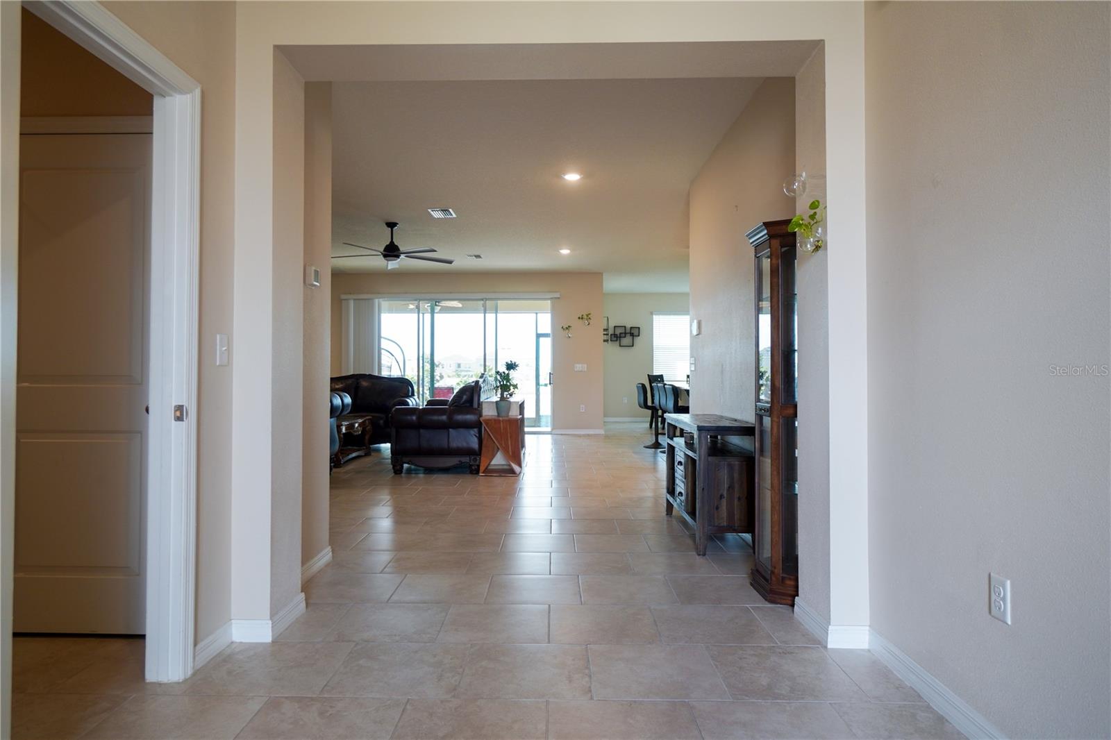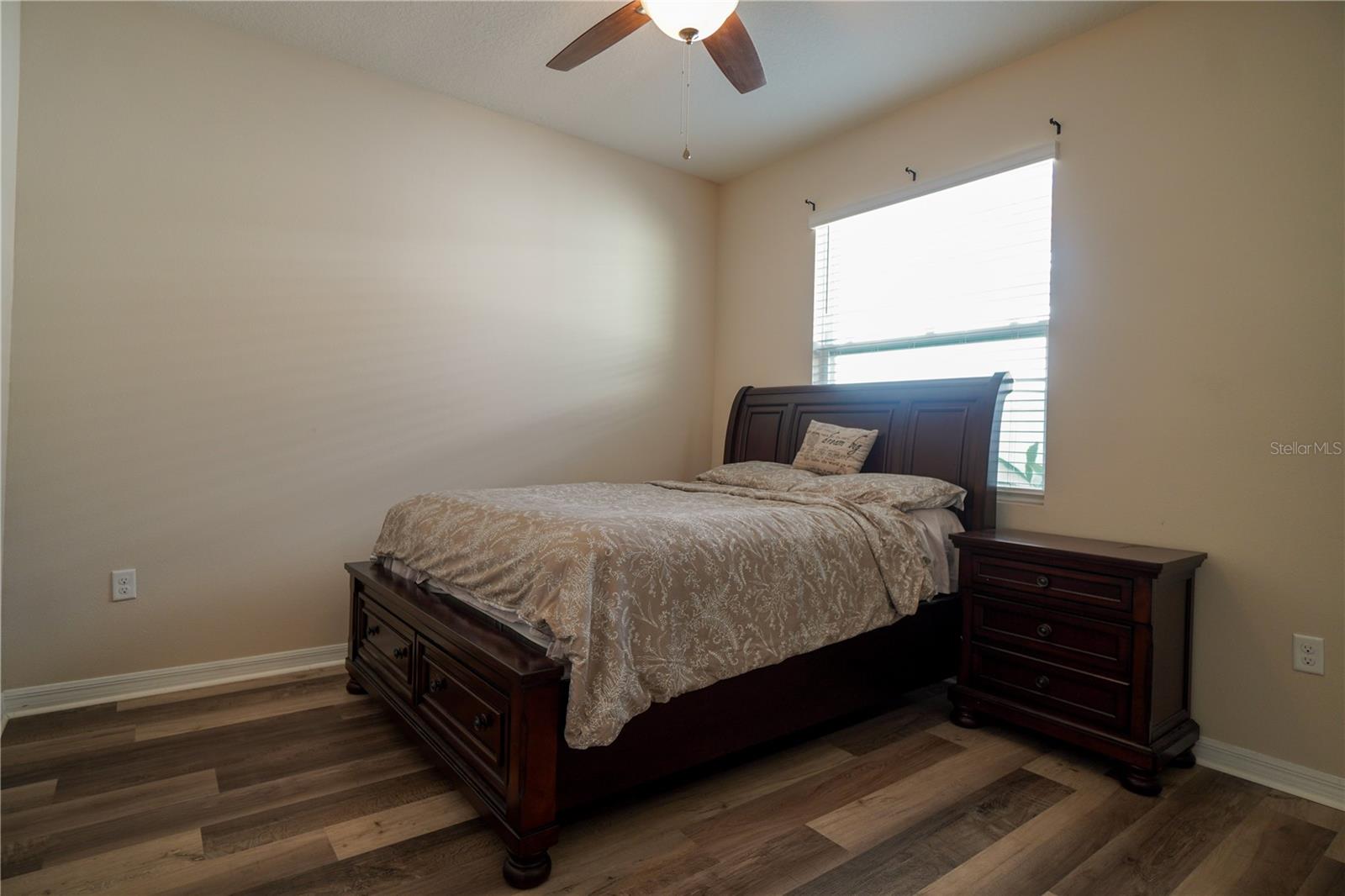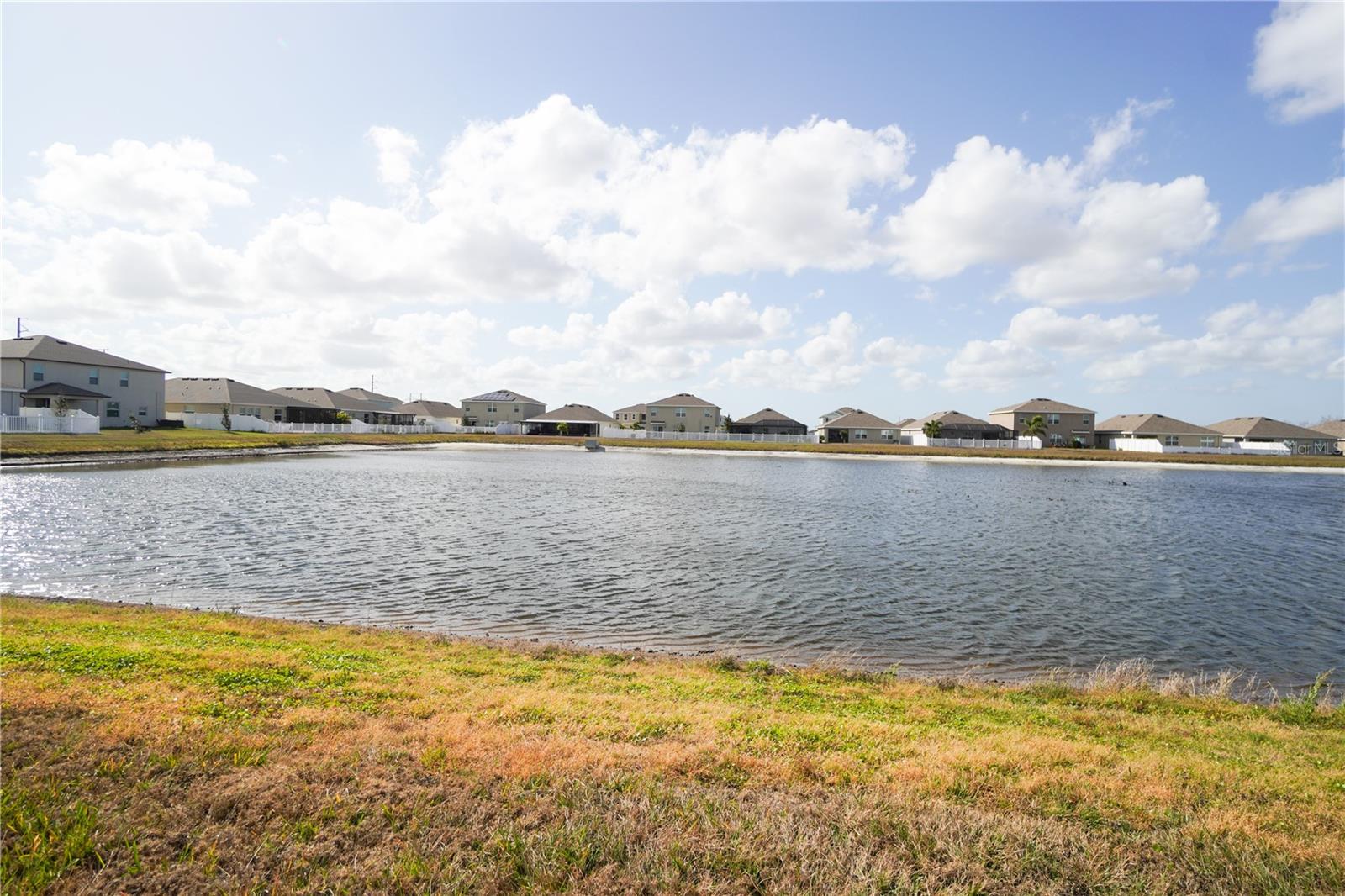 PRICED TO SELL! Welcome home to this beautifully maintained 4-bedroom, 3-bath D.R. Horton Hawthorn model, perfectly situated on a private pond lot in the desirable South Fork community. This home provide the ideal blend of comfort, privacy, and functionality. Step outside to your 10x20 screened-in lanai and unwind while enjoying tranquil pond and fountain views, visiting birds, and breathtaking sunsets—your own peaceful retreat. An additional 10x45 paver patio provides ample space for outdoor entertaining. Inside, the open-concept layout is filled with natural light and features 18” tile throughout the main living areas. The primary bedroom showcases tray ceilings, two spacious walk-in closets, and luxury vinyl plank flooring, which also extends to the all bedrooms. The second bedroom includes a private full bath, ideal for guests or multi-generational living. Bedrooms three and four have generous closet space. The chef’s kitchen is a standout with granite countertops, stainless steel appliances, large center island, pantry, and abundant cabinetry—perfect for both everyday living and entertaining. A separate oversized laundry room provides exceptional storage space. This smart home includes a smart thermostat, garage door opener, doorbell, and select lighting, all controllable from your smartphone. Additional highlights include a fully fenced yard, beautiful landscaping, and a 3-car garage. South Fork residents enjoy resort-style amenities including pool and clubhouse, playgrounds, dog park, and sports courts, along with sidewalks and nearby hiking trails. Conveniently located near I-75, US-301, US-41, Crosstown Expressway, with easy access to downtown Tampa, MacDill AFB, shopping, dining, and hospitals. Don’t miss this opportunity to own a spacious home with privacy, views, and exceptional outdoor living—this is the one you’ve been waiting for!