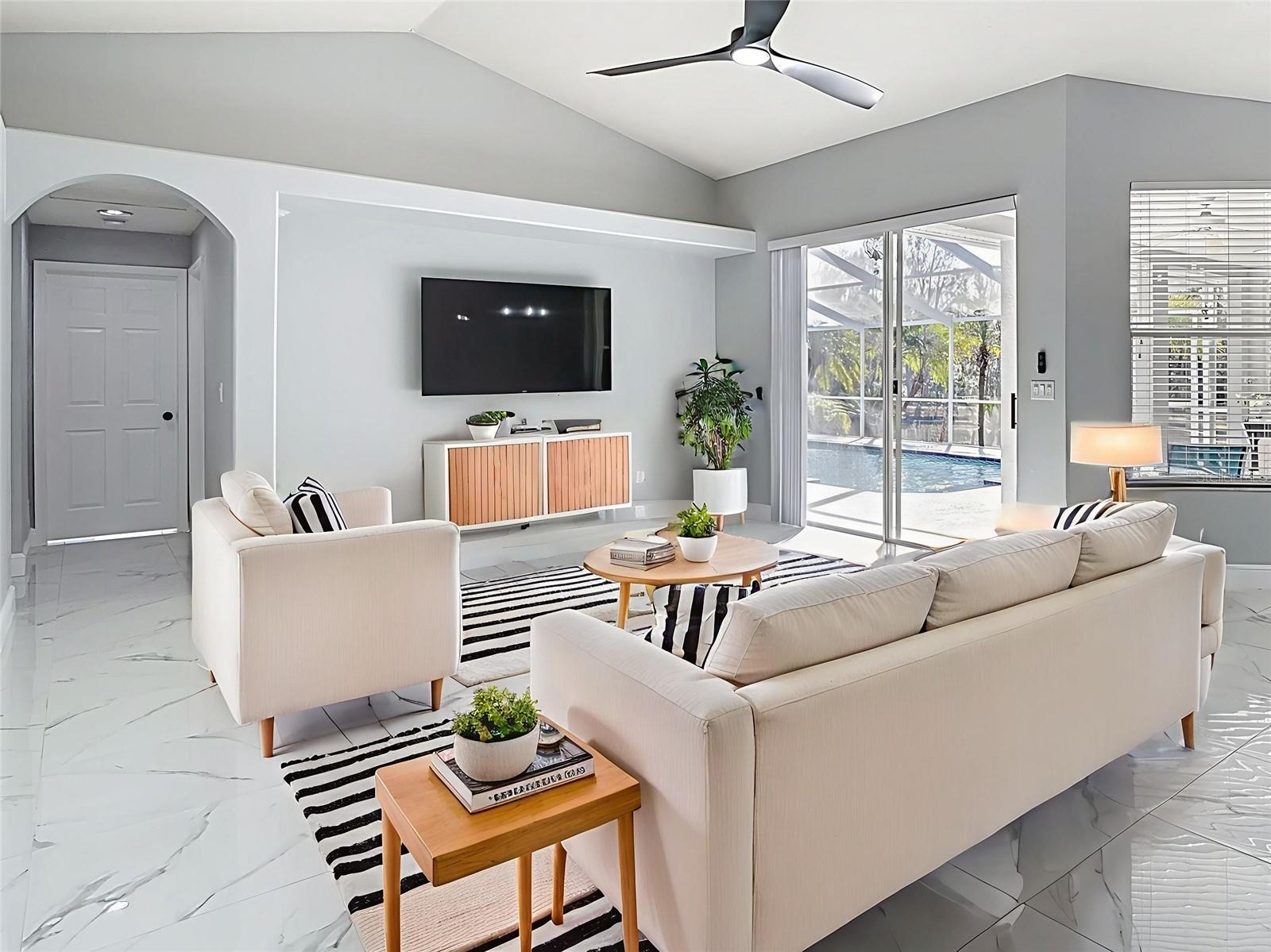 One or more photo(s) has been virtually staged. Welcome to peace and serenity, where breathtaking sunsets await. Come home to beautiful natural scenery and the gentle presence of local birds and tortoises as you go about your day. From the moment you step inside this spectacular residence, you’ll appreciate every thoughtful detail and upgrade—from elegant light fixtures to luxury porcelain tile flooring that flows seamlessly throughout. This home offers an outstanding and versatile floor plan with spacious rooms, quality features, and delightful finishes. A blend of formal living spaces and generous gathering areas creates the perfect setting for entertaining, all enhanced by sliding glass doors that overlook the inviting pool and the amazing pond views. Enjoy the privacy of the expansive, well-situated primary bedroom, two walk-in closets, and a tastefully remodeled en-suite bathroom with a standalone shower and a freestanding soaking tub. Three spacious guest bedrooms share a well-appointed pool bathroom, offering comfort and convenience for family and guests alike. Step outside to your own private tropical oasis—Florida living at its best. Ideally located in the well-established Riverglen/Riverwatch community of expanding Riverview, FL, this move-in-ready home is a must-see. Come see it today.