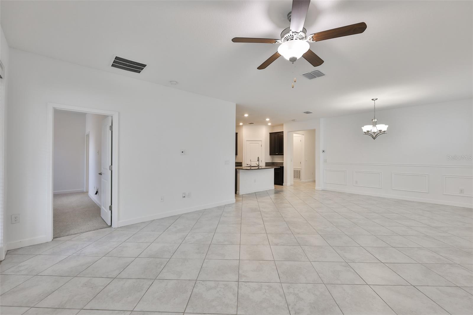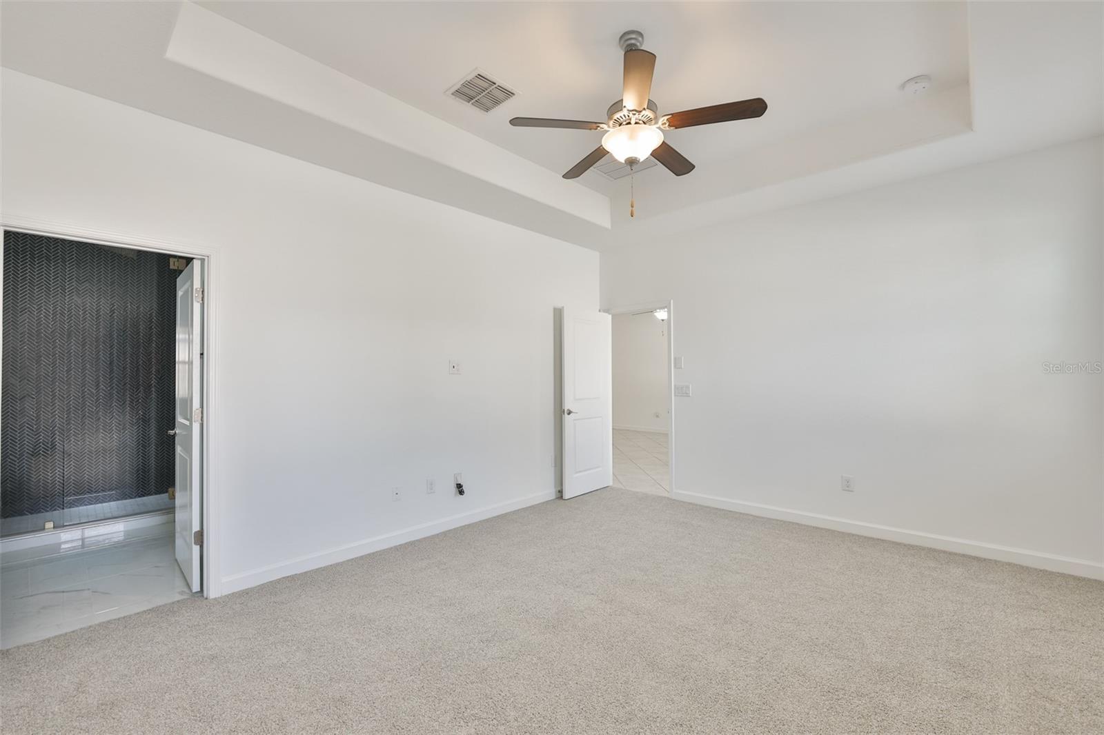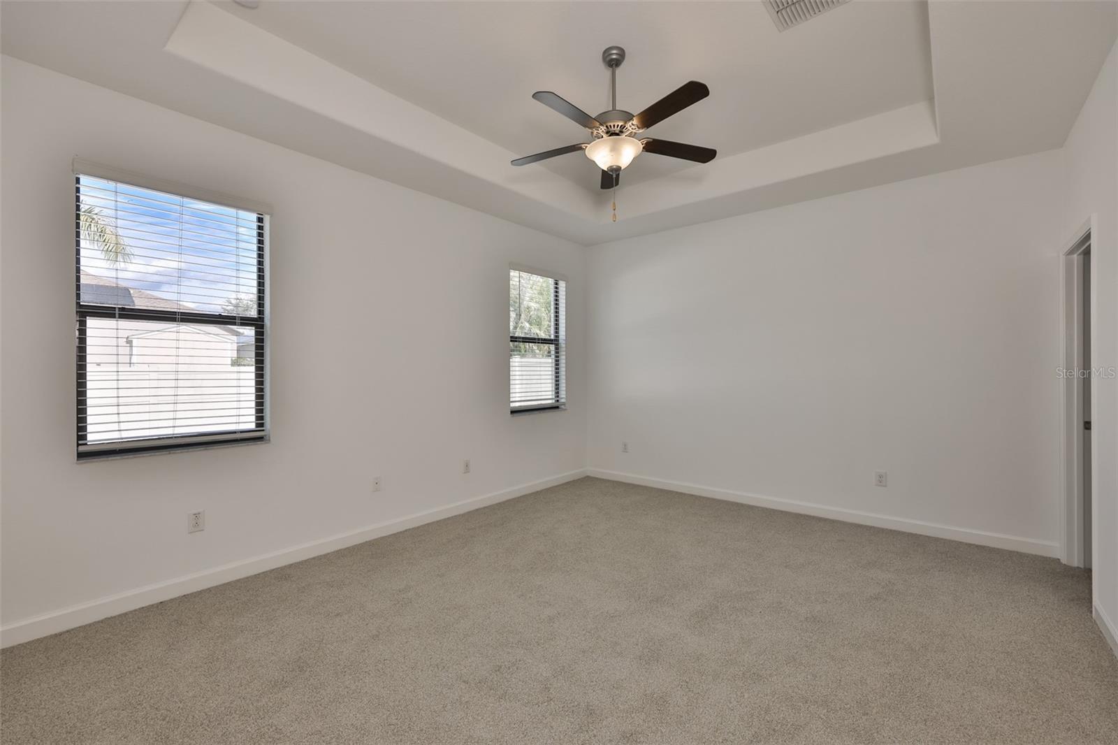 One or more photo(s) has been virtually staged. Stop the car, this is it! This stunning 2019-built home offers 4 bedrooms, 3 bathrooms, and over 2,000 sq. ft. of thoughtfully designed living space. Step into the elegant foyer with 9ft ceilings and immediately feel at home. The open-concept layout is complemented by neutral tile flooring throughout, fresh interior paint, and strategically placed recessed lighting for a bright and modern feel. The kitchen is a true centerpiece, featuring stainless steel appliances, GRANITE COUNTERS, a spacious pantry, and ample ESPRESSO cabinets. This split floor plan provides excellent flexibility, tiled throughout with NEW CARPETING in all the bedrooms. Two secondary bedrooms at the front share a generous bathroom, while a third bedroom perfect for a home office or den has its own hallway and full bath, ideal for guests. The primary suite, tucked away at the rear of the home, boasts high tray ceilings, an enormous walk-in closet, SPA like UPGRADED bathroom with dual vanities. UPGRADED tiled stand-up overhead RAINFALL shower, UPGRADED FRAMELESS GLASS SHOWER ENCLOSURE and zero grout line UPGRADE floor tile. Additional features include a drop zone entry from the garage, a WATER SOFTENER SYSTEM, irrigation system, fully fenced backyard added and HURRICANE SHUTTERS. The home is in excellent condition and it shows, everything feels fresh, cared for, and move-in ready. --- Located in the sought-after Oaks at Shady Creek, you'll enjoy resort-style amenities including a Huge Pool, Fitness Center, Basketball Court, Playground, and more, all with LOW HOA FEES that INCLUDES LAWN MAINTENANCE!!! Easy access to I-75, shopping, dining, and top-rated schools. Call now for a private showing!
