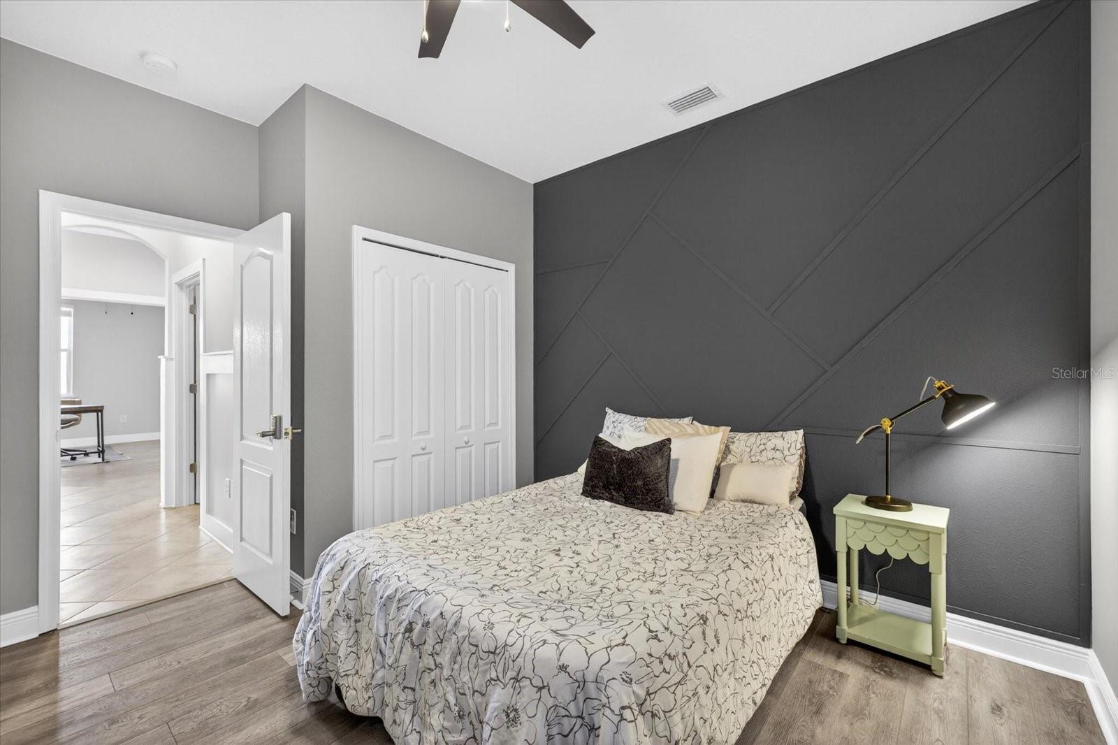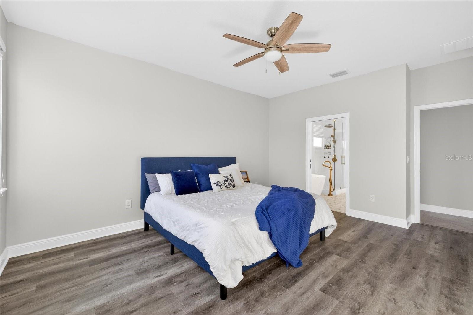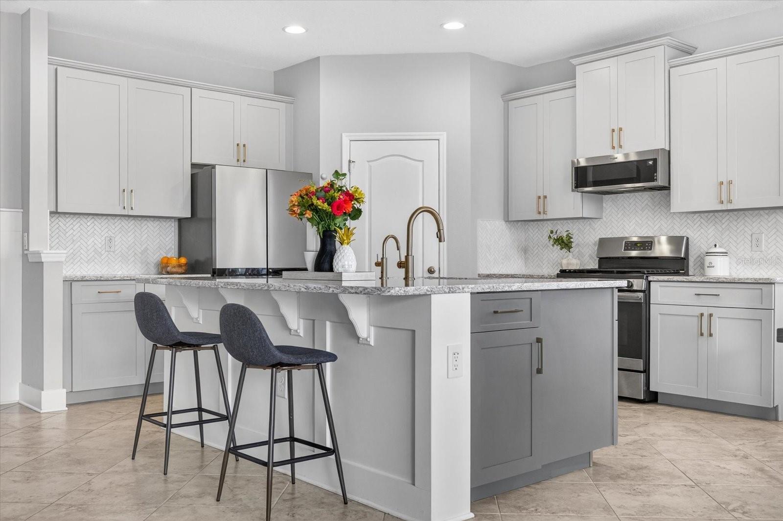 Rare opportunity to own a meticulously upgraded 4-bedroom, 2-bathroom home on a premium cul-de-sac and POND lot in the GATED Lucaya Lake Club. This residence has been transformed by over $100,000 in professional improvements, headlined by a stunning $63,000 primary suite remodel (2024). This spa sanctuary features authentic Marble flooring, a high-end Schluter shower system, a modern standalone soaking tub, and a space-saving pocket door. The designer interior continues with elegant wainscoting throughout the hallway (2024) and a custom-built-in entertainment center in the Great Room (2024). The gourmet kitchen boasts durable quartz countertops, marble backsplash, a large center island, and refreshed cabinetry with new faces and hardware (2023). Stainless steel appliances, (refrigerator, microwave, dishwasher) have been replaced within the last two years for total peace of mind. Additional High-Value Upgrades: Flooring: Luxury vinyl flooring installed in all bedrooms (2020). Exterior & Infrastructure: New exterior paint (2021), seamless gutters (2020), and a professional French drain system by LRE Foundation Repair (2024). Outdoor Living: Fully fenced yard (2017) and an oversized screened patio overlooking the water. Maintenance: Driveway pavers professionally cleaned, sanded, and double-sealed (August 2025). Located in a natural gas community, Lucaya Lake Club offers a 78-acre lake, private beach, resort-style pool, and fitness center. This home combines "new construction" peace of mind with high-end custom finishes you won't find in a standard build. More than just a home, Lucaya Lake Club offers a vibrant, social lifestyle. Enjoy a full calendar of community events, including the annual Turkey Trot, 'Movies Under the Stars,' local vendor markets, Sunset Socials, and the festive Christmas Jeep/Golf Cart Parade. Whether you’re joining the Women's Club or playing a round of Bunco, you’ll feel right at home. This is your chance to join an exclusive community in one of the most desirable positions on the street. Don’t wait, schedule your private showing today!