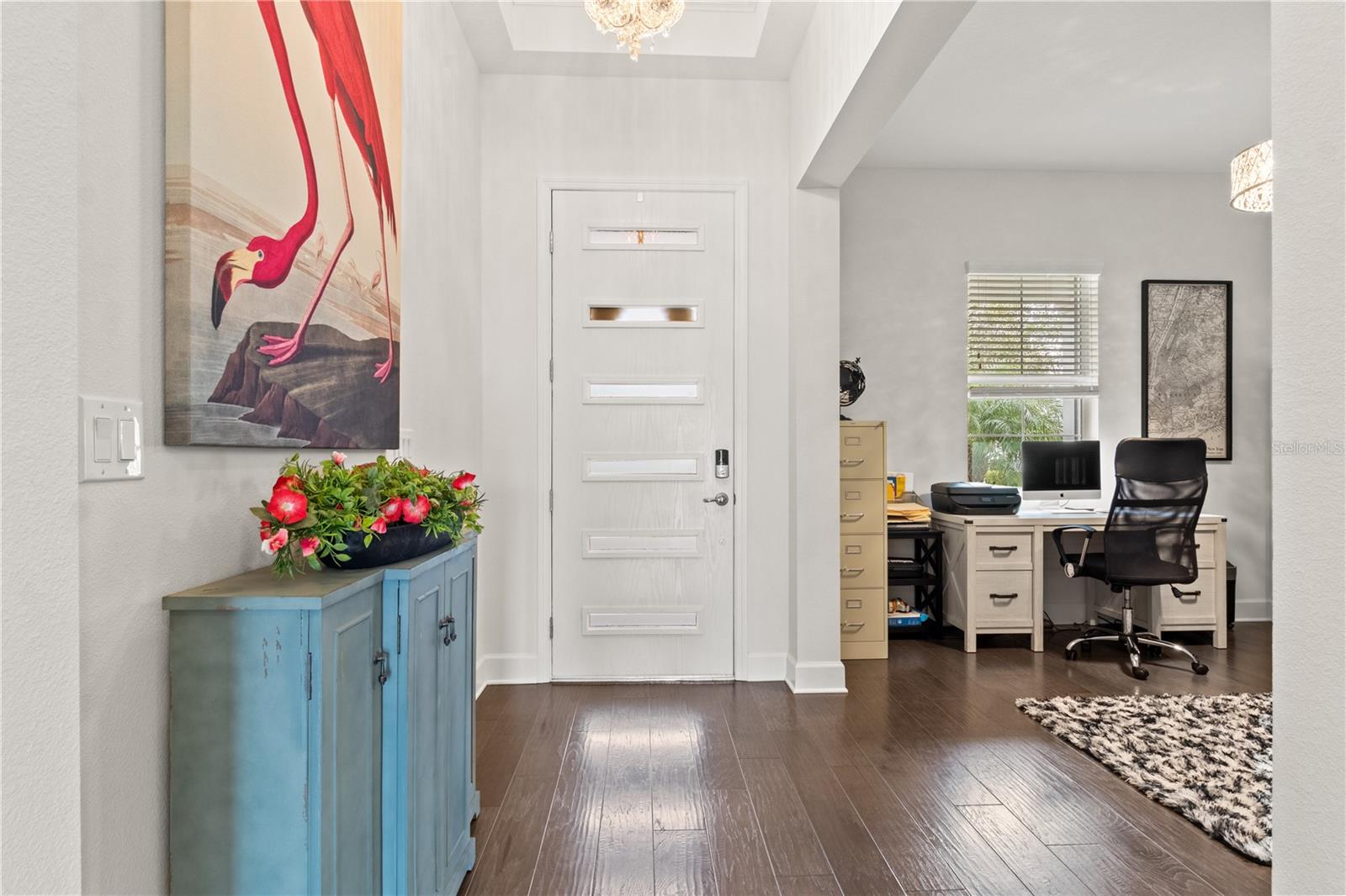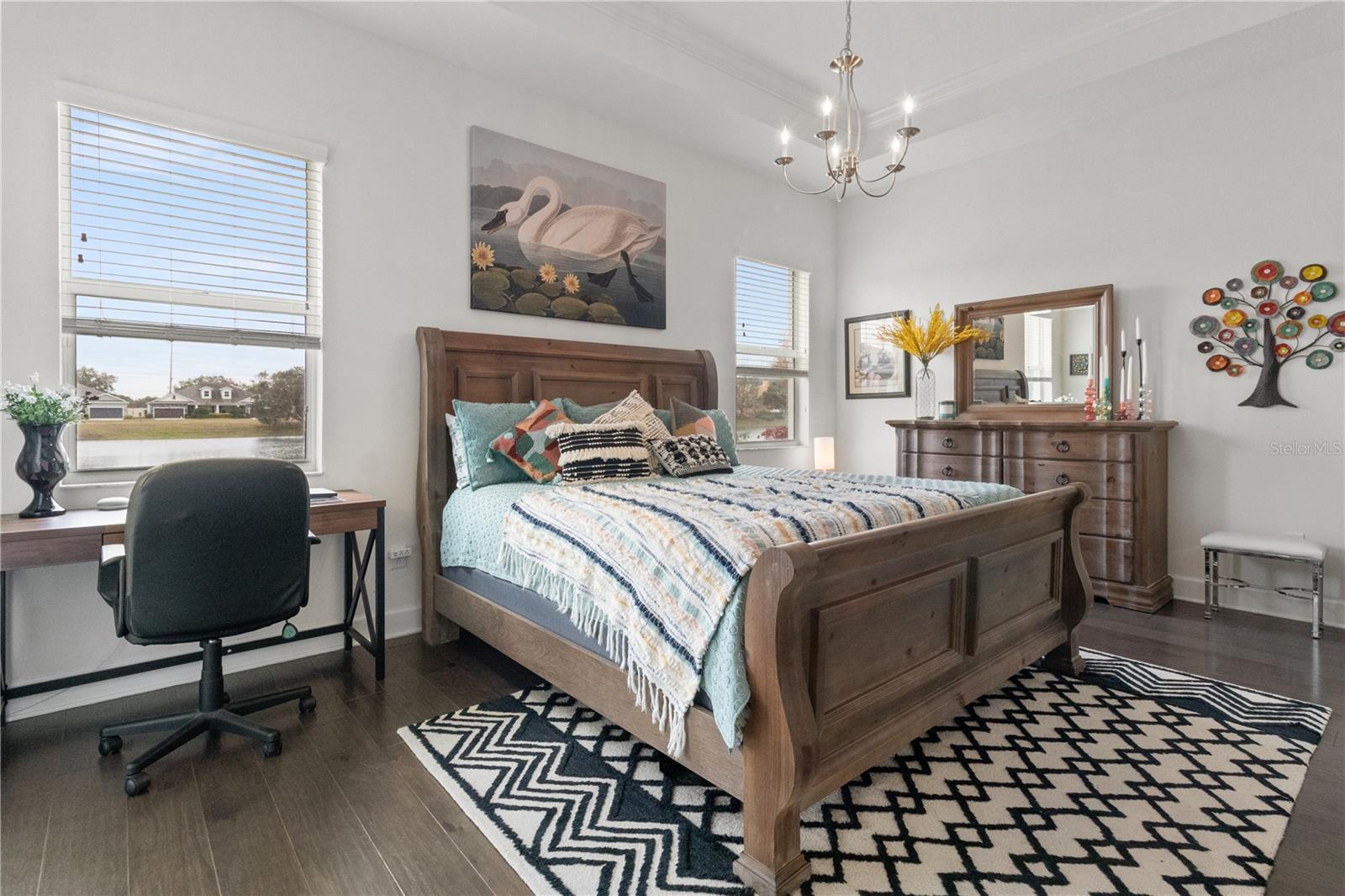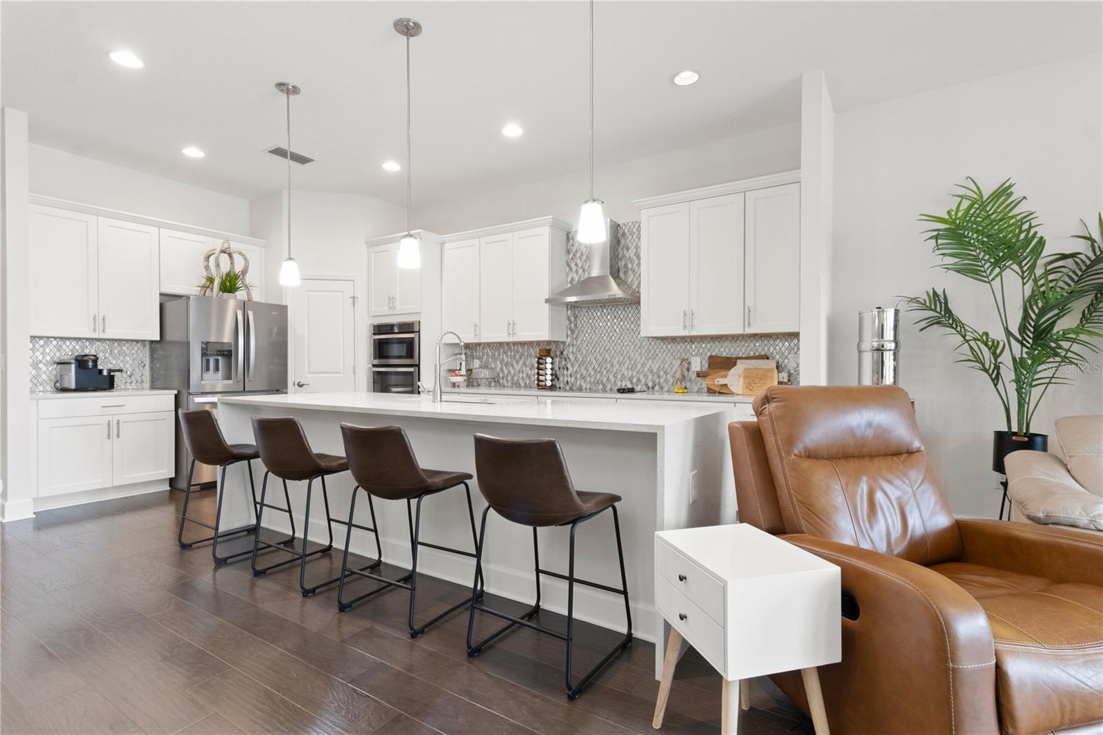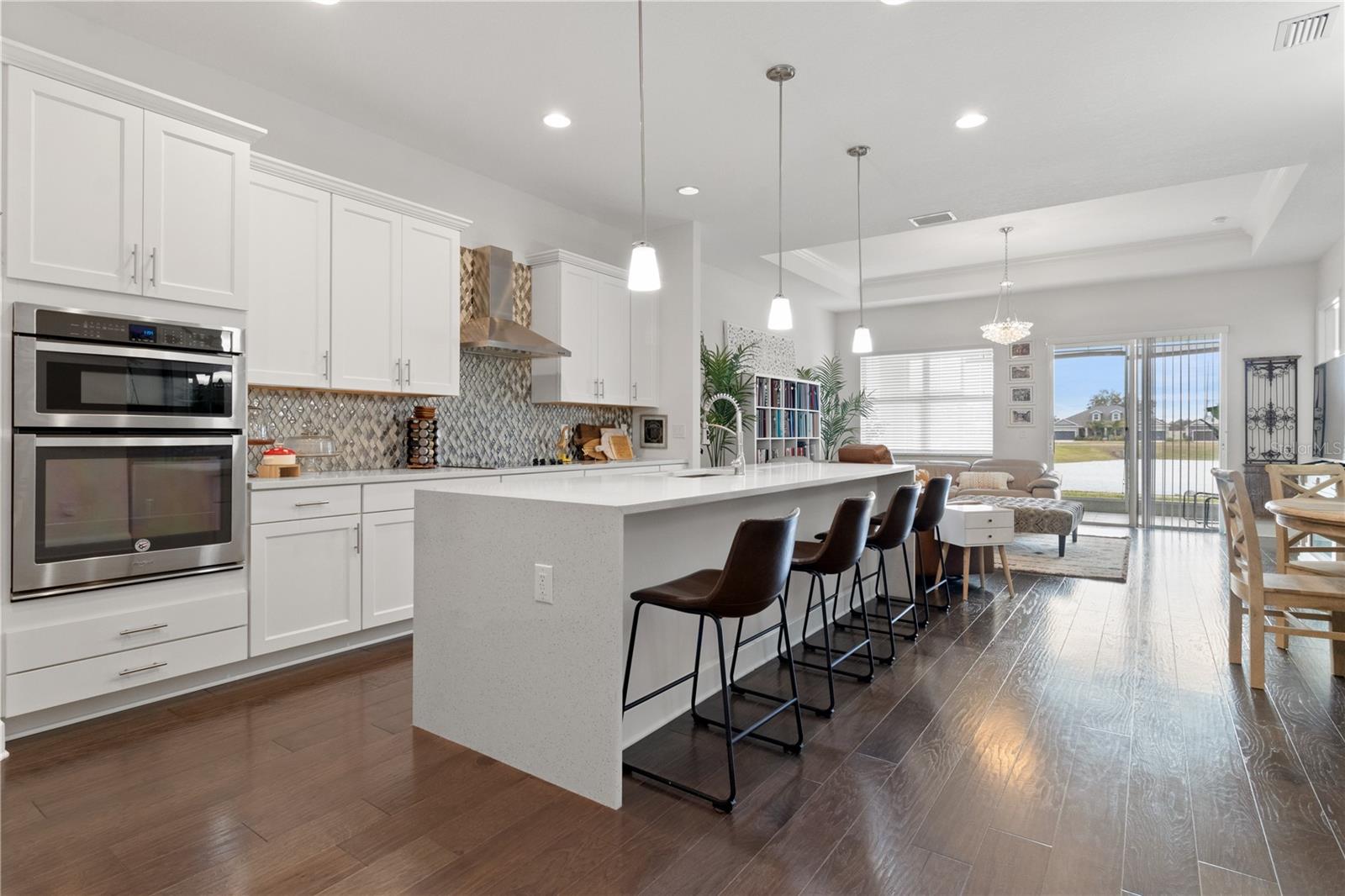 Luxury, lake views, and zero maintenance—welcome home to effortless Florida living. Don’t miss this opportunity to own a beautifully maintained, luxury-upgraded home in Bridgewater Landing—one of the area’s most desirable 55+ communities. This energy-efficient single-family residence features over $35,000 in premium upgrades and has been freshly painted inside and out, offering a truly move-in-ready experience. Every detail has been meticulously cared for, blending comfort, elegance, and peace of mind. Inside, you’ll be welcomed by engineered hardwood flooring throughout and soaring 10-foot ceilings that create an open, airy feel. A versatile front den or office easily doubles as a guest suite for visiting family or friends. The expansive great room opens through sliding glass doors to a shaded, screened-in lanai, the perfect place to relax while enjoying peaceful lakefront views. The gourmet kitchen is an HGTV dream, featuring quartz countertops with a waterfall island, built-in double ovens, a smooth cooktop, and designer lighting—ideal for both entertaining and everyday living. The luxurious primary suite offers tranquil lake views, a spacious walk-in closet, and a spa-like custom tile bath designed for total relaxation. Additional highlights include foam attic insulation for enhanced energy efficiency and lower electric bills. Enjoy a truly maintenance-free lifestyle, with the HOA covering front and rear lawn care, monthly home security monitoring, exterior water and irrigation, as well as roof and exterior paint maintenance—so you can focus on enjoying life, not maintaining a home. Bonus: No CDD fees! For added peace of mind, a clean inspection report, along with completed four-point and wind mitigation inspections, are already available. Located just minutes from shopping, dining, and everyday conveniences like Publix, Starbucks, and local restaurants, with easy access to I-75 and the Lee Roy Selmon Expressway, this home keeps all of Tampa Bay within reach. This exceptional home won’t last long—schedule your private showing today before it’s gone!