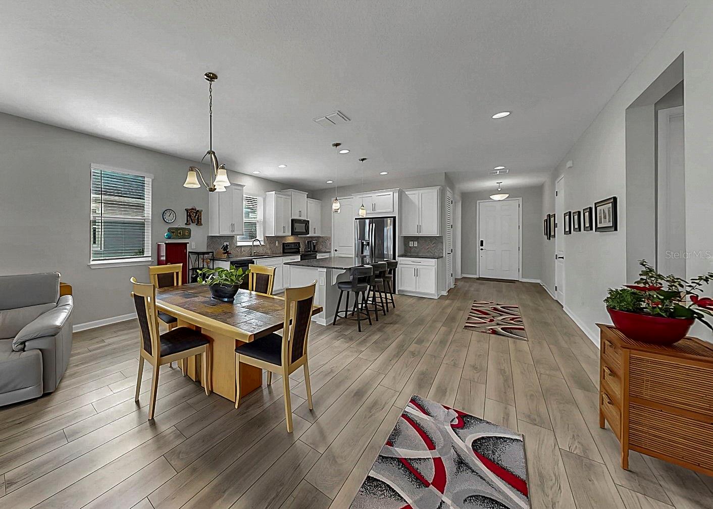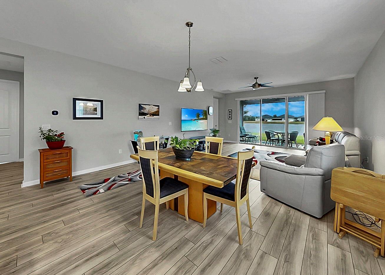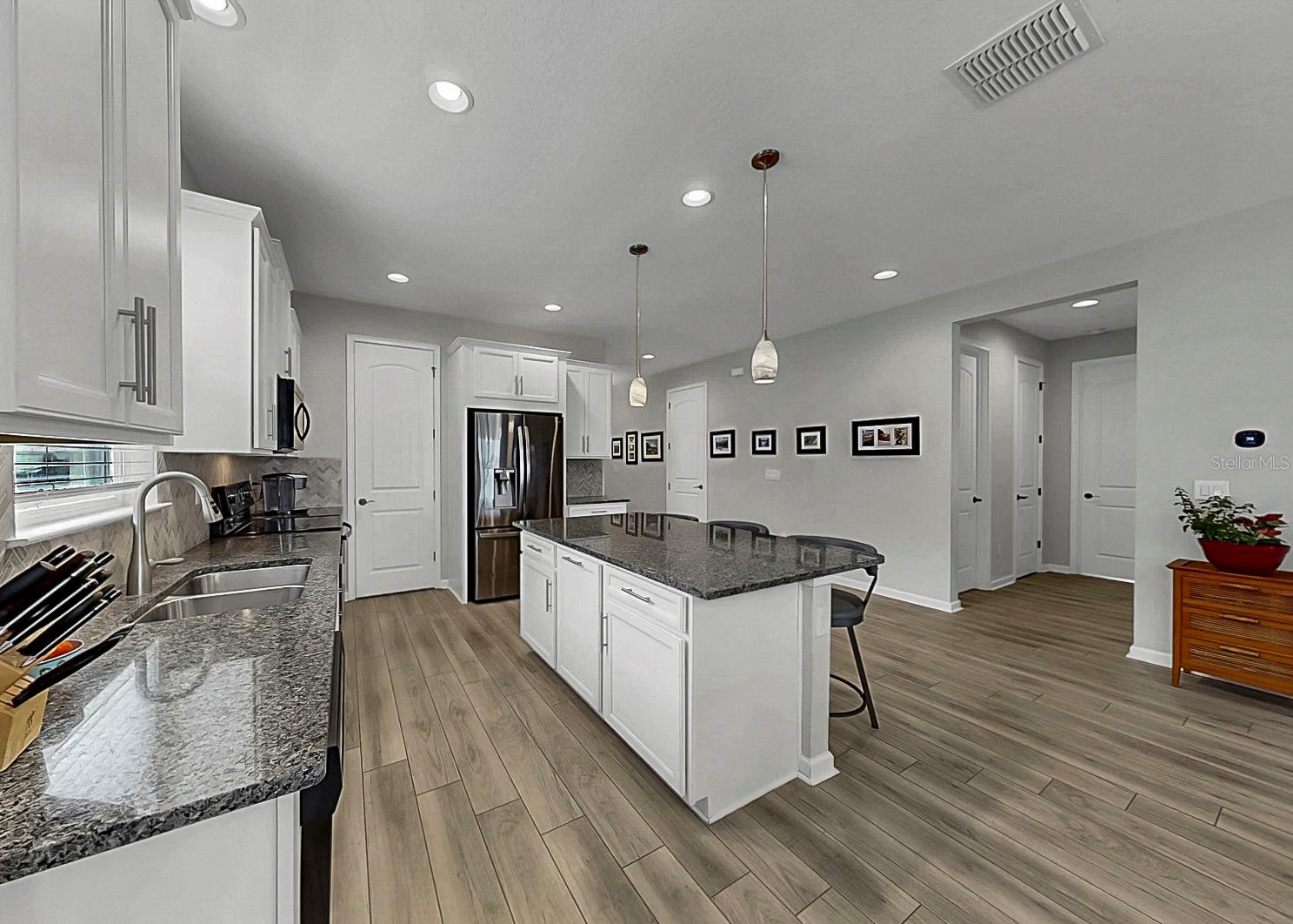 Prepare to be impressed by this stunning waterfront home in the highly desirable Triple Creek community. This beautifully maintained 3-bedroom, 2-bath residence also features a private den/study that can easily serve as a flex space or optional fourth bedroom. From the moment you arrive, the tropical landscaping, stacked stone accents, and designer paint palette create exceptional curb appeal. The impressive 8-foot front door — along with 8-foot doors throughout the home — adds a sense of elegance and spaciousness from the start. Step inside and you’re immediately greeted by serene water views. Just off the entry, double doors open to the versatile flex room, perfect for a home office, guest room, or hobby space. The kitchen is truly the heart of the home, featuring white cabinetry, granite countertops, a stylish herringbone tile backsplash, pendant lighting, beautiful appliances, and generous counter space. The open-concept layout keeps the cook connected to guests and living areas — ideal for both everyday living and entertaining. The living room showcases oversized sliding glass doors that open to a covered, screened lanai overlooking the water. The seamless screen design maximizes visibility so you can fully enjoy the tranquil views. It’s the perfect spot to relax, unwind, and enjoy morning coffee while watching the birds along the shoreline. The spacious primary suite offers a walk-in closet and an en-suite bath with dual sinks and a walk-in shower. Secondary bedrooms are comfortably sized and offer ample closet storage. Triple Creek residents enjoy resort-style amenities including pools, splash pad, playgrounds, tennis and basketball courts, scenic walking and biking paths, and beautiful tree-lined streets. Conveniently located near shopping, dining, medical facilities, and more — this is a place you’ll be proud to call home. Schedule your private showing today and experience this exceptional home and community for yourself.