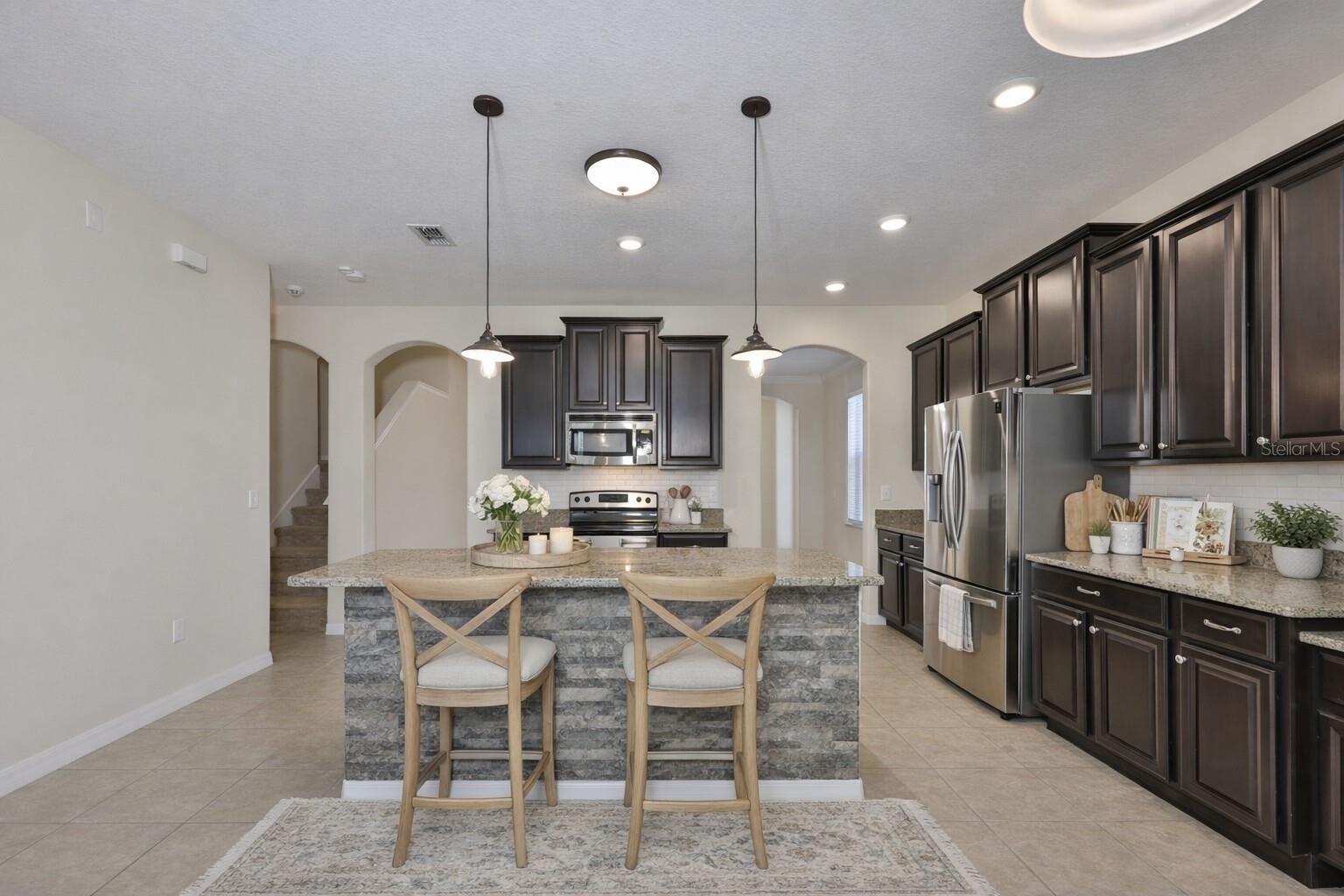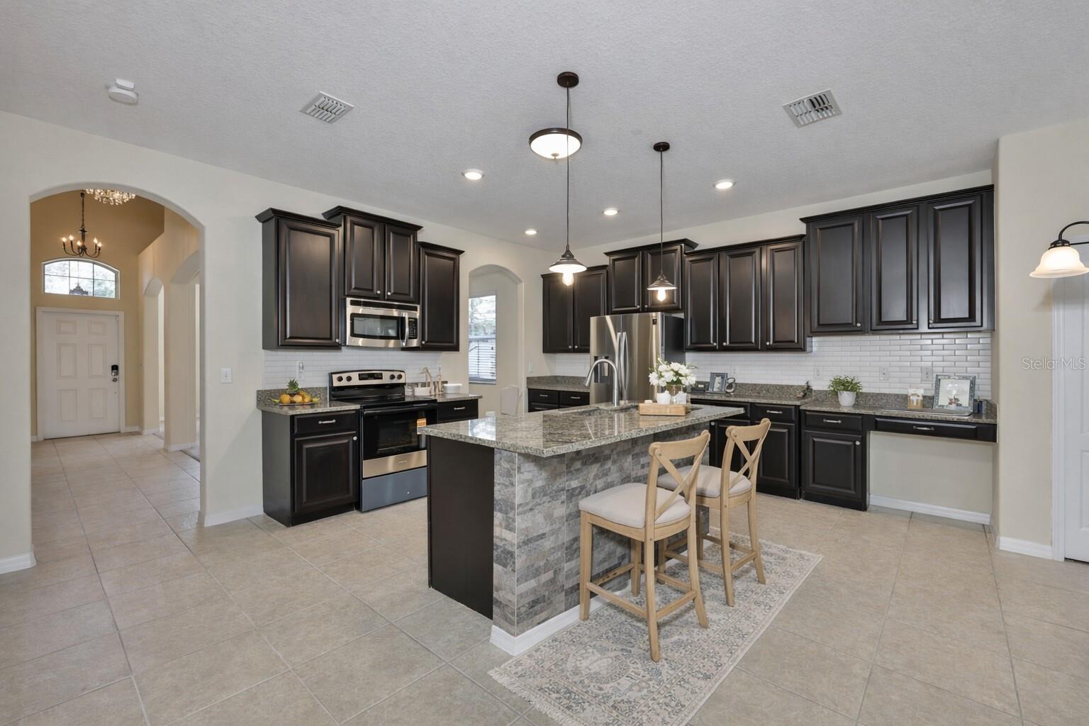 Located in a prime Riverview location, this spacious 3,264 sq. ft. home sits at the end of a quiet cul-de-sac overlooking a beautiful pond, offering a premium water-view lot within a non-CDD community with low HOA. Designed for both comfort and functionality, the home features 5 bedrooms, 3 full bathrooms, a large office/den, and a versatile loft. Major value items buyers appreciate are already in place, including fully paid solar panels and a roof replaced just 1 year ago, helping provide energy efficiency and peace of mind. The first floor is especially desirable, featuring a full bedroom and full bathroom, ideal for guests, multigenerational living, or a private workspace. Enter through the formal living and dining rooms accented with crown molding, then continue into the expansive great room where the kitchen and main living areas capture serene water views. The kitchen is well-appointed with all newer stainless steel appliances, granite countertops, tall cabinetry, a center island, and elegant architectural arches, creating both style and functionality for everyday living and entertaining. Updated light fixtures, ceiling fans throughout, and fresh interior paint enhance the home's move-in-ready appeal. Upstairs, the owner's retreat overlooks the water and features his-and-hers closets along with an ensuite bath complete with granite countertops, dual sinks, a walk-in shower, and a separate soaking tub. Three additional guest bedrooms and a full bathroom are thoughtfully positioned alongside the loft and spacious office/study, which could easily serve as a media room or flex space. The home also offers abundant storage and a separate laundry room for added convenience. Additional improvements include a water heater only 1 year old, newer AC (3 years old) with ultraviolet light purification, solar window lining, and a water softener. Enjoy outdoor living from the screened lanai and relax in the partially fenced backyard with fruit trees while taking in the peaceful pond setting. A 3-car tandem garage completes this exceptional property. This home delivers the space, upgrades, efficiency, and location buyers are actively seeking in today's Florida market.