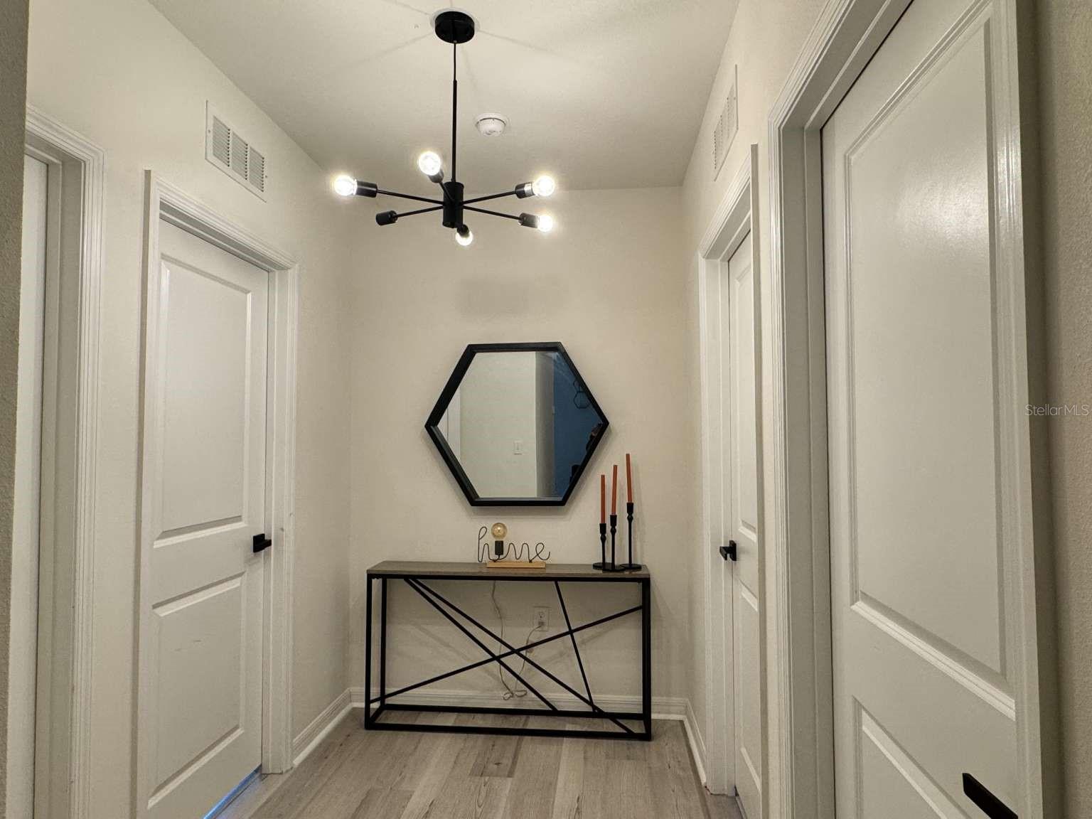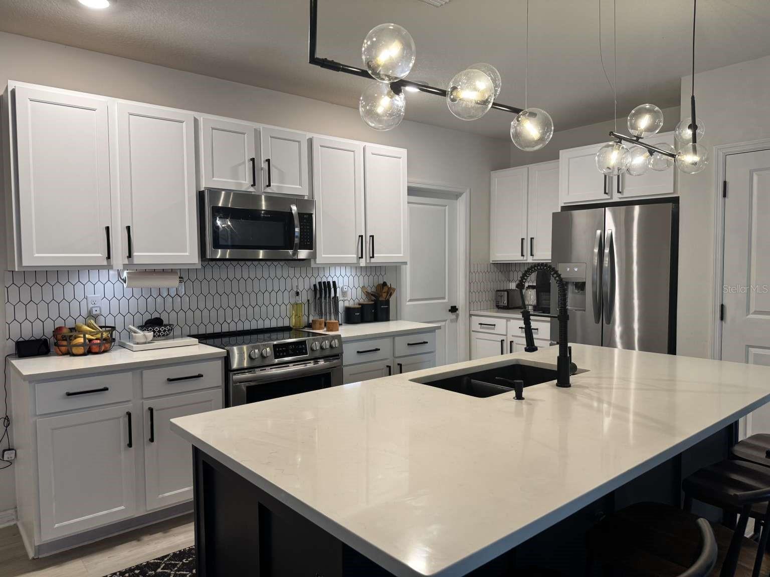 Step into this stunning, fully renovated 5-bedroom, 3-bath home designed for modern living. Luxury vinyl plank floors flow throughout, including the master suite. The bright entry foyer leads you into a stylish, renovated kitchen with quartz countertops, a custom island, and a walk-in pantry. Custom light fixtures accent the open living spaces. With one bedroom downstairs and four upstairs—including a spacious upstairs master—there’s room for everyone. Outside, enjoy a 20-foot screened lanai with additional backyard space on a desirable corner lot. This home blends comfort, style, and function—ready for you to make it your own!