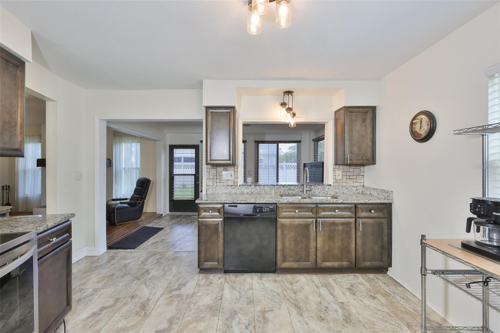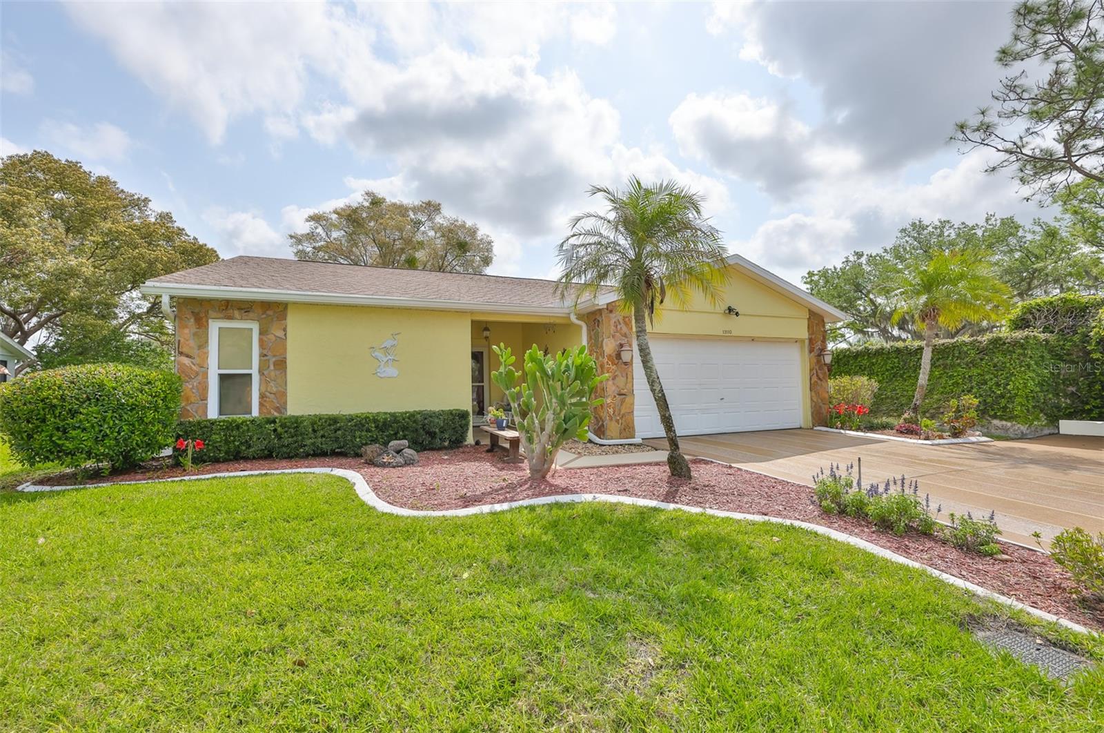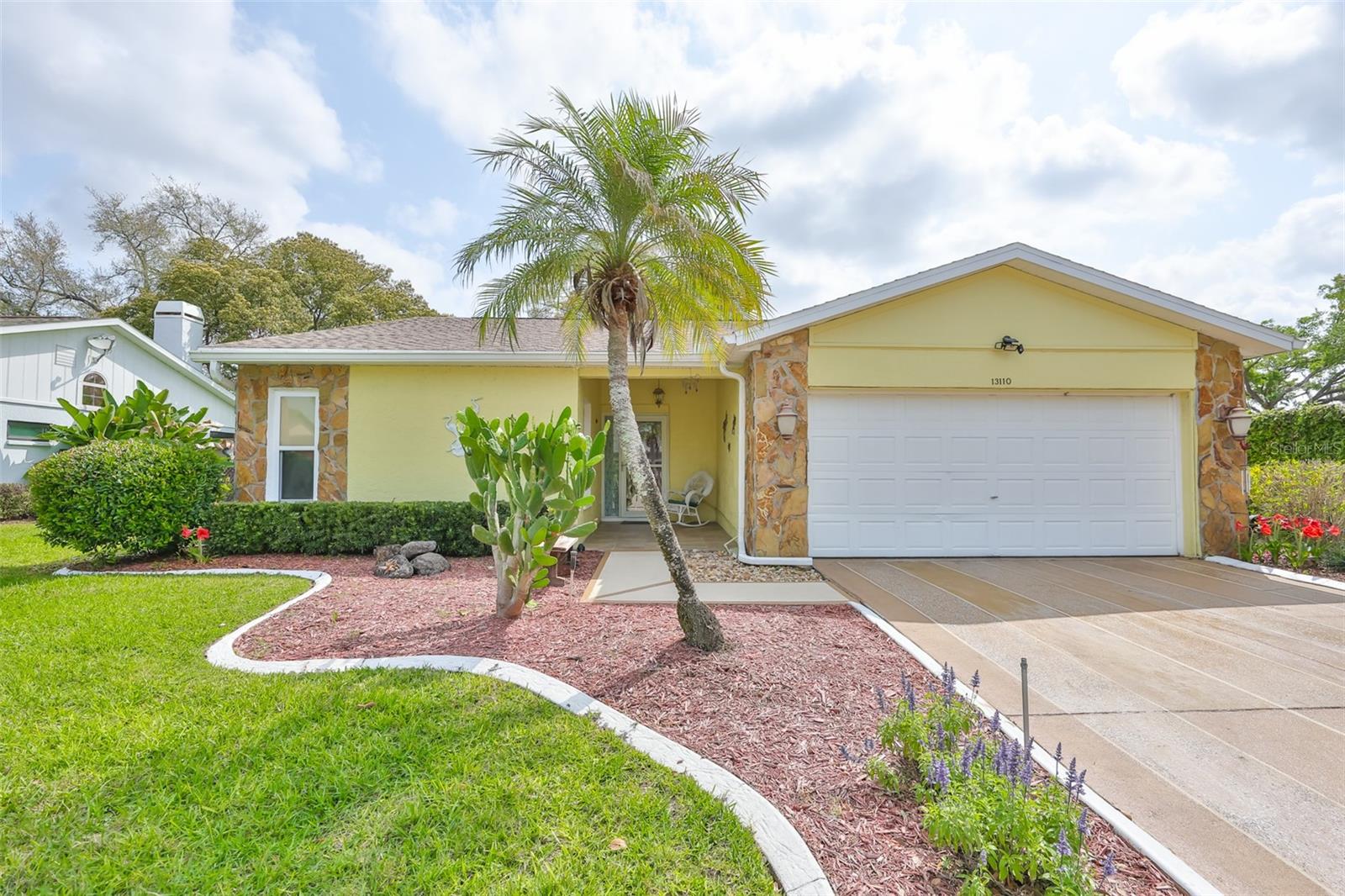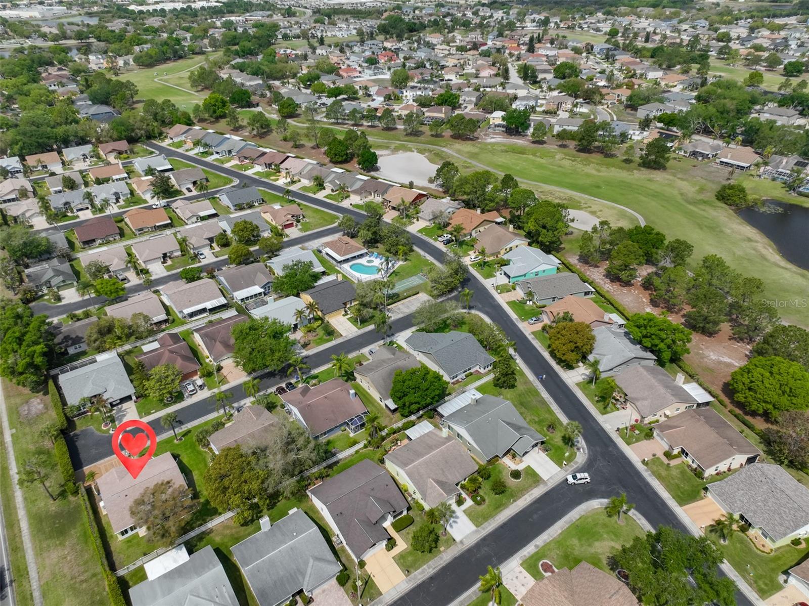 Villas On The Green... Gated 55+ Golf course community. Enjoy this maintenance free lifestyle! This 2-bedroom, 2 bath and 2 car garage sits quietly on a dead end. As you enter through the front door you are greeted with high vaulted ceilings and laminate flooring throughout. The living room offers your own wood burning fireplace. The kitchen has been updated with stainless steel appliances, cabinets, backsplash, granite counters and soft-close cabinetry. Bathrooms have been updated with cabinets, granite counters and a custom-tiled step-in shower for the master bathroom. Off the kitchen and living room you have an additional sitting/activity room with an abundance of natural light. NEW ROOF 2022, New HVAC system and full PVC Replumbing. Home comes with water filtration system, washer and dryer. Community offers a private heated pool and spa, plus a screened and covered cabana for parties and planned activities like Bingo and Bunco with a shuffleboard court. You also have access to the Summerfield Community Center, where there's 2 pools, weight room, tennis and basketball courts, fitness center, playground, dog park and more. HOA fees include lawn maintenance, sprinklers on well, cable TV, high-speed internet and home exterior painted every 7 years. The home Thermostat, Garage Door and Oven are also able to be controlled with an APP from your phone for convenience and safety. Just minutes from I-75, St Joseph’s South Hospital, the all-new VA Clinic, Sam's Club, shopping, restaurants, golf courses and just 35 minutes from Tampa International Airport.