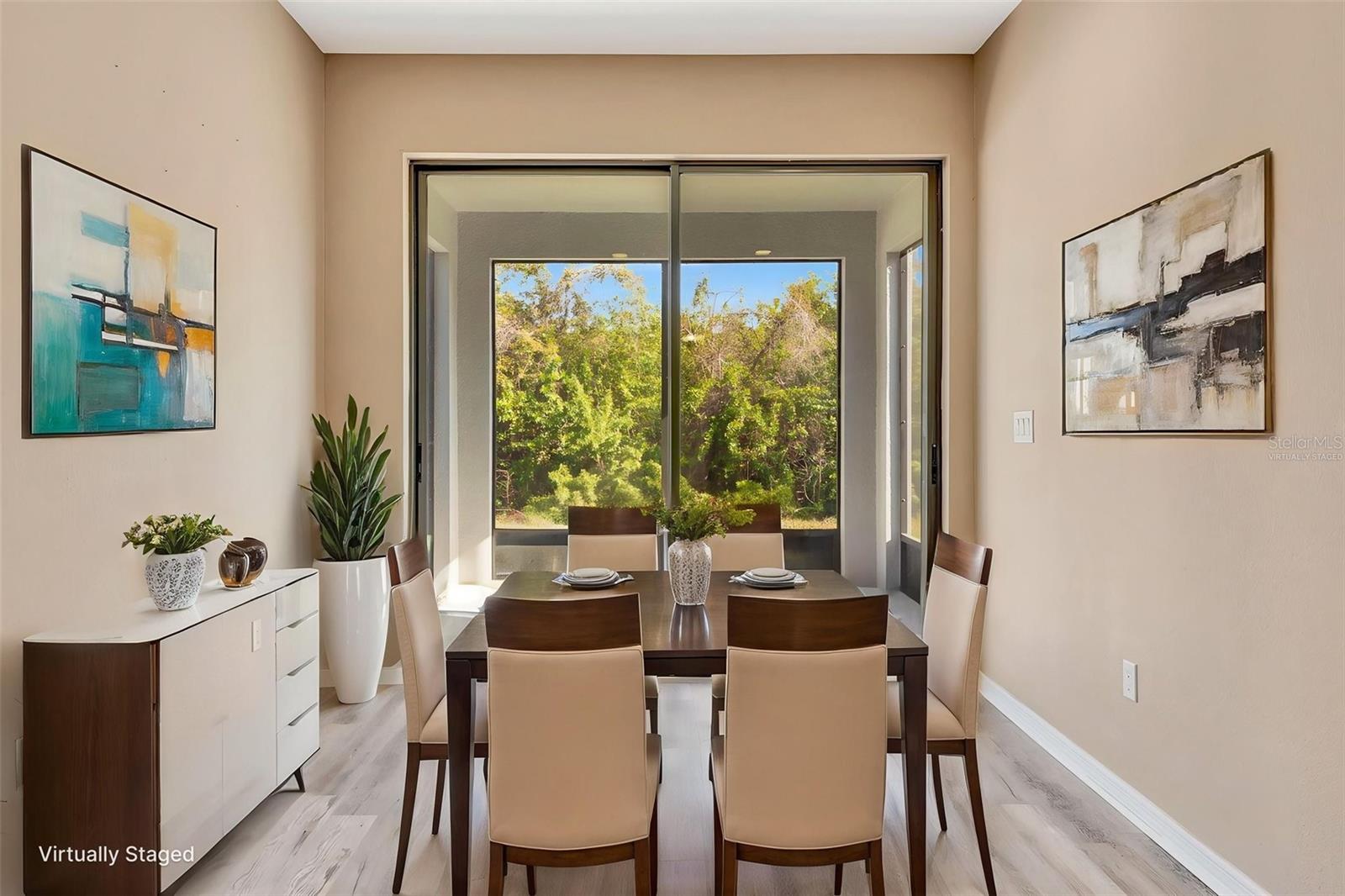 One or more photo(s) has been virtually staged. STOP THE CAR!!! Welcome home to the popular and gated community of Magnolia Park!! This beautiful and well maintained 3 bedroom 2 bath plus office home offers comfort, charm, and thoughtful upgrades throughout. Step inside to a bright, open-concept layout featuring a spacious living area with contemporary lighting, neutral tones, and luxury vinyl plank flooring that flows seamlessly into living room. The kitchen will be adored by the home chef, complete with granite countertops, wood cabinetry and black stainless appliances. Enjoy site lines to the family room, dining room, patio and backyard making it perfect for entertaining. The dedicated office or flex room offers versatility whether you're working from home, extra space for guests, home gym or zen room. Relax and unwind in your screened rear patio with a morning cup of coffee or evening cocktail and take in nature backing up to conservation with no backyard neighbors. Home's Exterior and Interior Painted 2026, ROOF 2024. Located only minutes from major highways, shopping, dining, schools, and all that Tampa Bay has to offer, this home perfectly blends comfort, convenience, and style. Come experience life in Magnolia Park where modern living meets community charm. Enjoy the peace of mind that of a low HOA that includes lawn maintenance. Magnolia Park residents enjoy access to three resort-style pools, multiple playgrounds, and a basketball court. Schedule your private showing today and say Yes to the Address!!!
