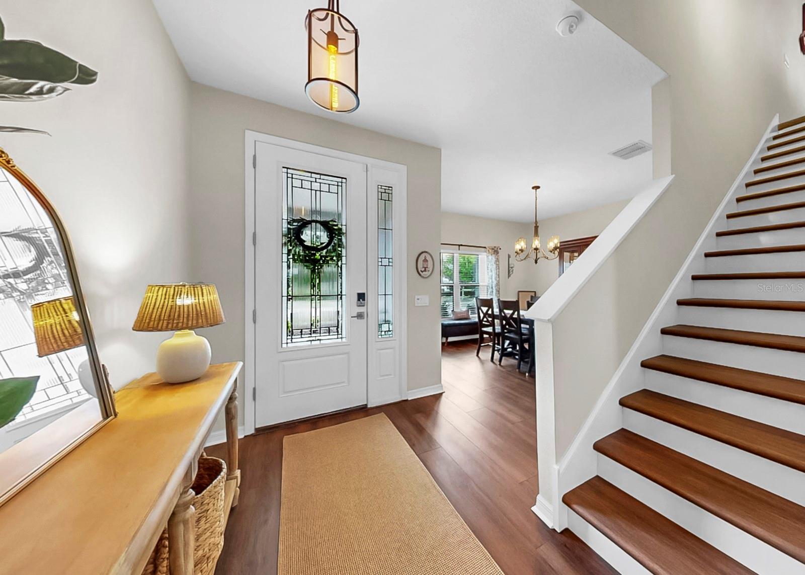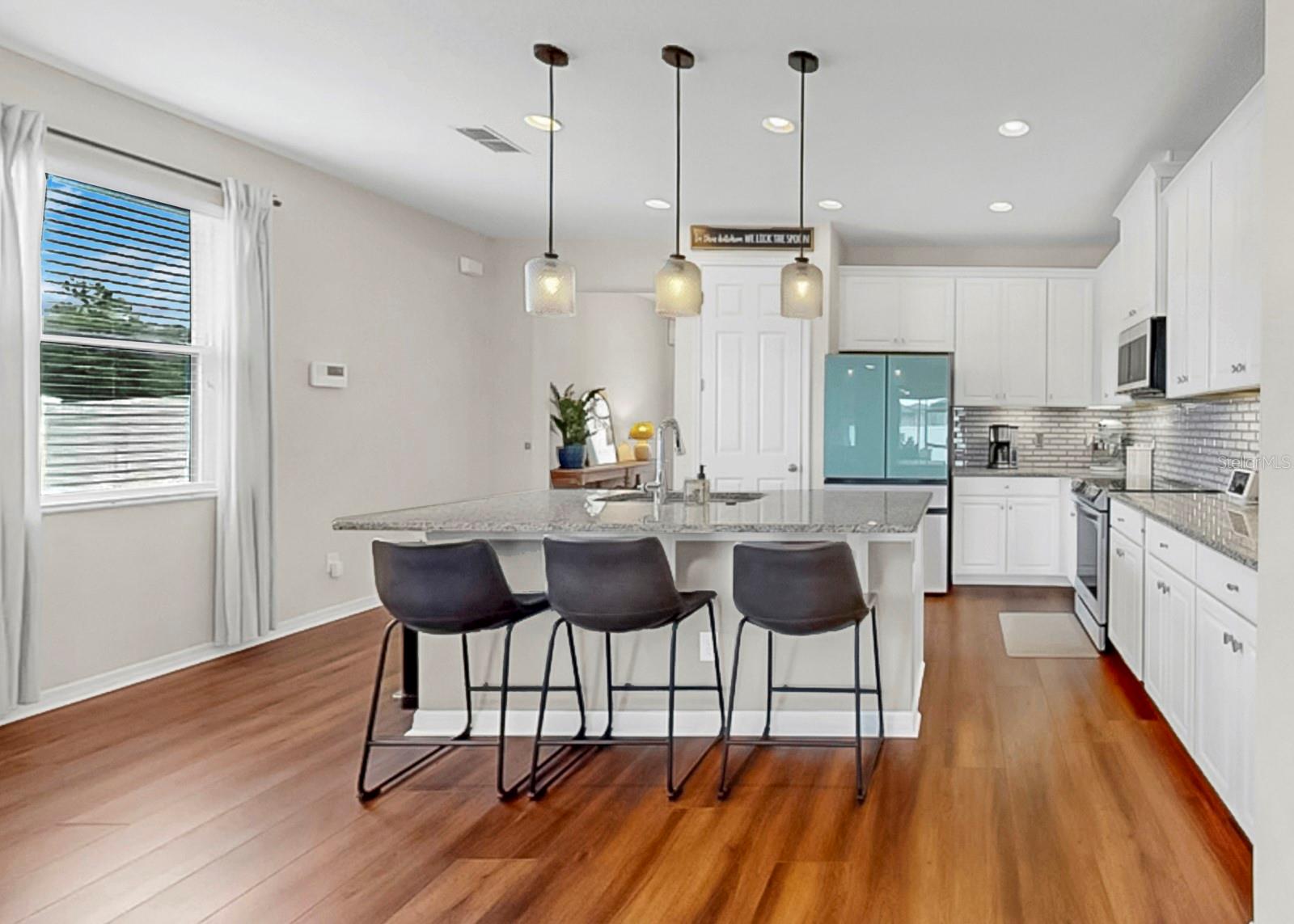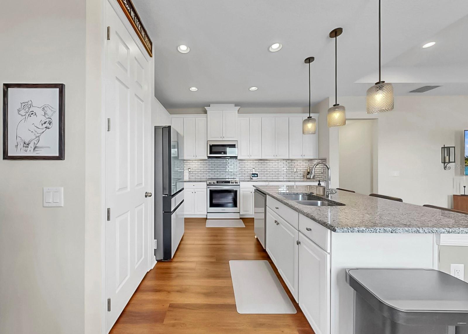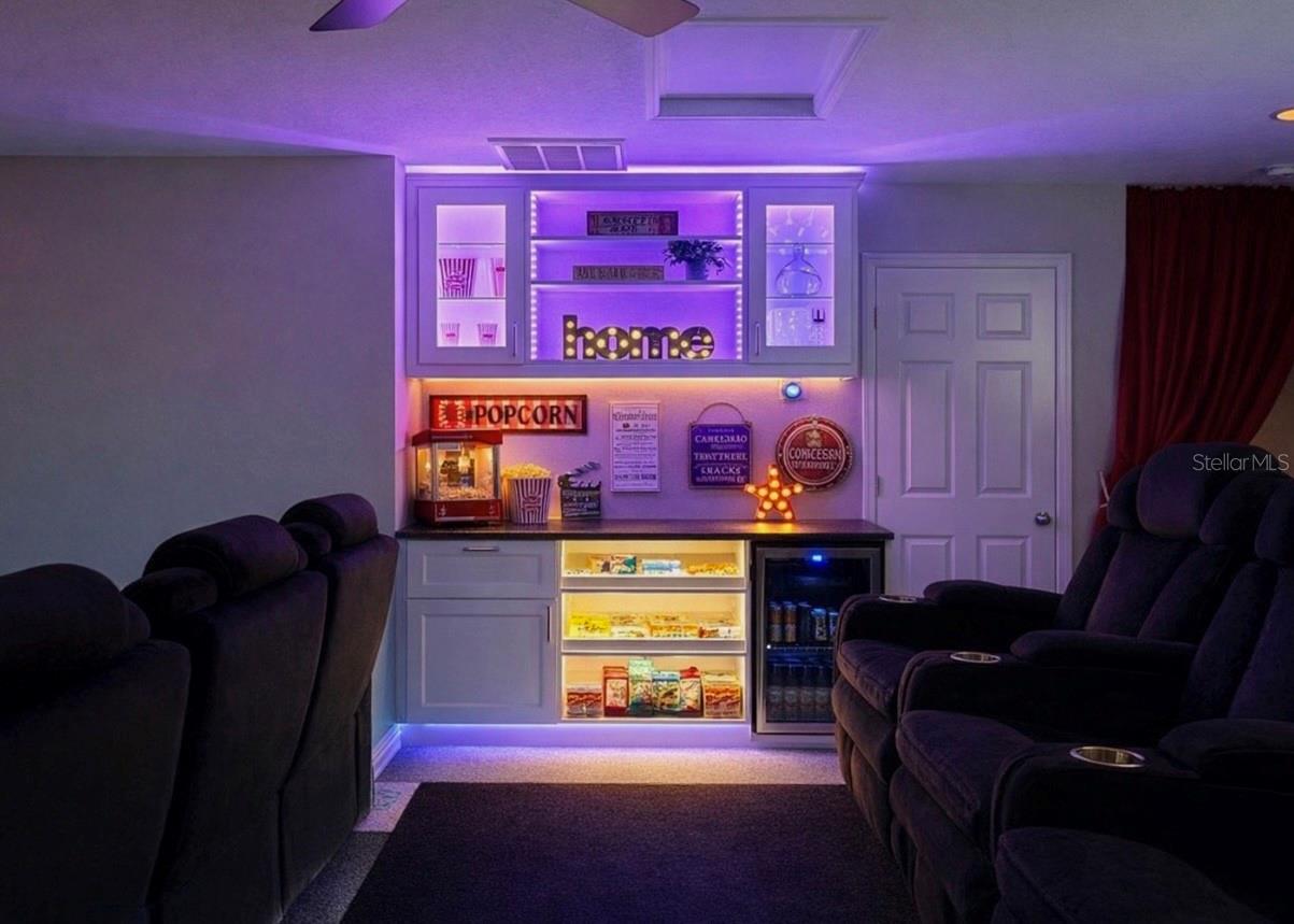 Welcome to one of the most unique & upgraded homes in South Fork Lakes Community with a Fully Upgraded NEW ROOF in 2025! Situated on the largest lot in the community and directly across from the amenity center, this M/I Picasso Bonus home offers a rare combination of space, convenience, and high-end customization that is nearly impossible to find at this price point. From the moment you enter, you will notice the difference. Soaring 10-foot tray ceilings, oversized 8-foot doors, and an open, thoughtfully designed layout create a sense of space and quality that stands apart from typical builder-grade homes. The home has been extensively upgraded throughout, including brand new luxury vinyl plank flooring with matching solid tread stairs, providing a seamless, modern look with durability built for real life throughout the entire lower level. The kitchen and main living areas flow effortlessly to the extended screened lanai, creating the perfect indoor-outdoor setup for Florida living. The lanai also features a commercial-grade stainless steel sink, making it ideal for grilling, entertaining, and easy cleanup. The kitchen features all new Samsung Bespoke Smart Appliances with interchangeable glass fronts. Smart features throughout the home for your convenience. One of the standout features of this home is the fully built-out upstairs bonus space, currently designed as a private home theater experience. Featuring elevated second-row seating, power reclining chairs, multiple display setups, smart lighting, and a dedicated snack and beverage area, this space delivers a true entertainment experience that will impress any guest. The theater setup is available as a negotiable feature, giving buyers the flexibility to move in with a fully equipped entertainment space or customize it to their own vision. Additional premium features include a rare three-car garage, upgraded finishes throughout, and a location that offers immediate access to the community pool, playground, gym, and recreational amenities just steps from your front door. This is not just another home in the neighborhood. It is a highly upgraded, move-in ready property designed for both everyday comfort and unforgettable entertaining. Homes with this combination of lot size, upgrades, and unique features rarely come available. This is a Must See Home - Schedule your showing today.