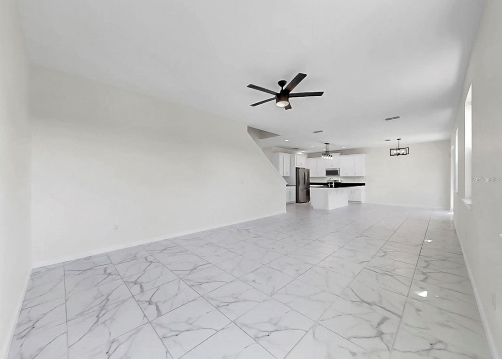 Welcome home to this STUNNING 4-bedroom, 2.5-bath home situated on a LARGE, PREMIUM LOT with peaceful WATER VIEWS! From the moment you arrive, you’ll notice the EXCEPTIONAL CURB APPEAL with manicured landscaping, fresh mulch, vibrant plants, a stone accented entryway, and a welcoming front door with a glass insert to allow natural light to flood the home. Step inside to an open-concept floor plan where the first floor showcases beautiful MARBLE-LOOK TILE flooring. A spacious flex room at the front of the home enclosed with FRENCH DOORS offers the perfect space for a home office or study. The gourmet kitchen is a true centerpiece, featuring stylish black countertops, stainless steel appliances, a MASSIVE walk-in pantry, and an oversized island ideal for entertaining. The great room is filled with natural light from oversized sliding glass doors that look out to a beautiful yard and pond views. Upstairs, you’ll find elegant WOOD-LOOK flooring throughout, along with a spacious loft, perfect for use as a media center or game room. The LARGE PRIMARY SUITE is a relaxing retreat with abundant natural light, a HUGE walk-in closet, and a spa-like en suite bathroom complete with dual vanities, a walk-in shower, soaking tub, and private commode. Three additional generously sized bedrooms share a full bathroom. An upstairs laundry room adds everyday convenience. Step outside to enjoy the expansive backyard and screened lanai, perfect for relaxing or entertaining. Located in the sought-after Triple Creek community, residents enjoy resort-style amenities including THREE community pools, playgrounds, fitness center with group exercise classes, basketball, pickleball, sand volleyball and tennis courts, scenic walking trails, and more—all with convenient access to shopping, dining, parks, and beautiful beaches!