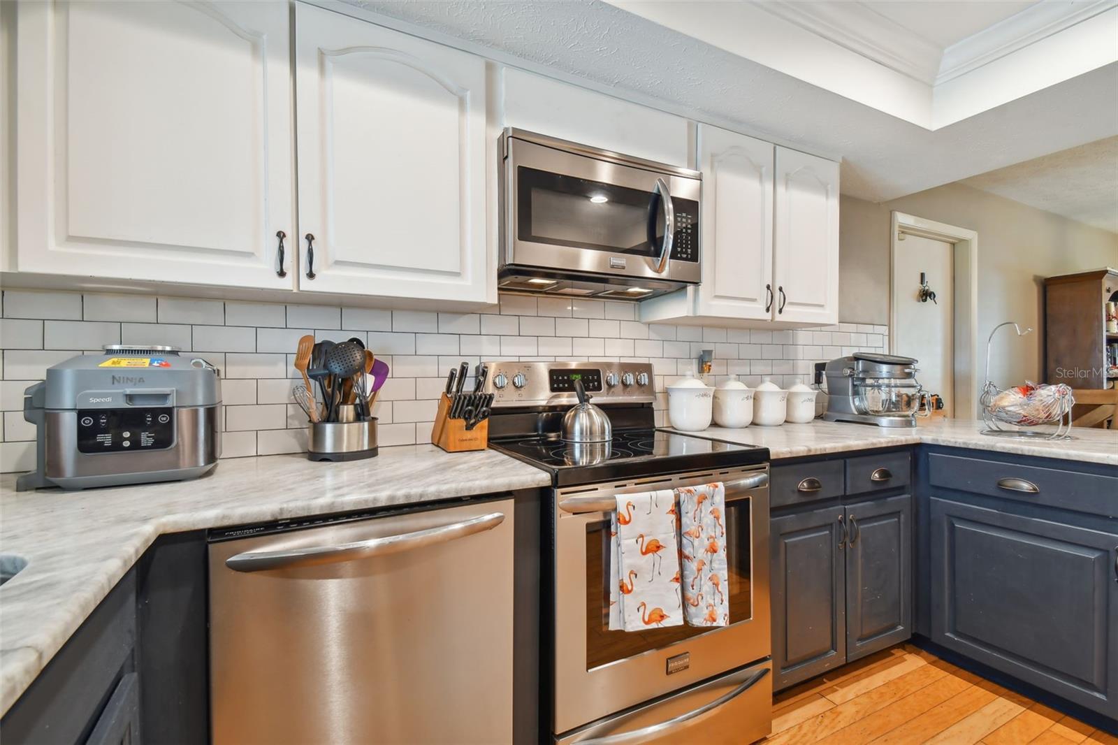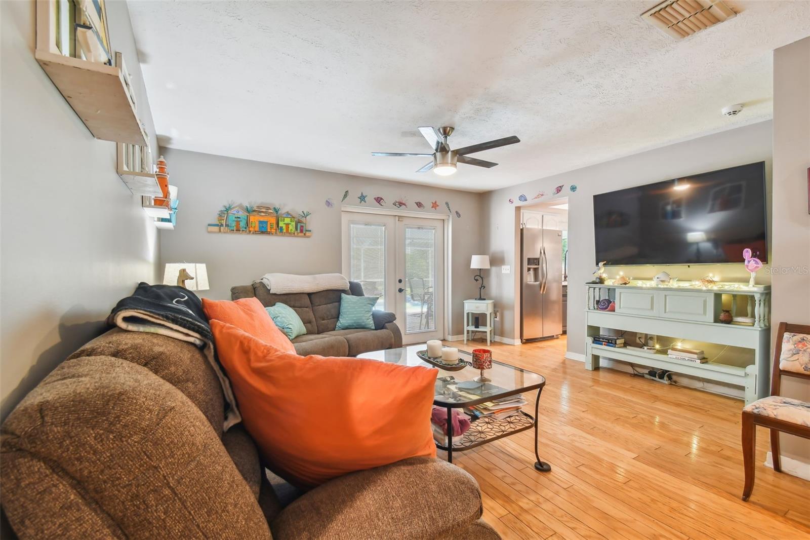 Welcome to your serene retreat at 11203 Creekview Drive, Riverview, Florida! This charming 3-bedroom, 2-bathroom pool home spans 1,356 sq. ft. and is nestled on a spacious 0.33-acre lot. The property features an inviting front porch and a large front yard with a long driveway. Step inside to find beautiful hardwood floors throughout the main living areas. The spacious dining room, adjacent to the kitchen, is perfect for gatherings. The kitchen, updated in 2017, boasts stainless steel appliances, granite countertops, subway tile backsplash, a breakfast bar, and stylish two-toned cabinets. The living room is cozy and flows seamlessly into the rest of the home, leading to three comfortable bedrooms and an updated hall bathroom. The backyard is great for entertaining, featuring a large lanai overlooking a private pool. Enjoy evenings by the fire pit sitting area, creating an outdoor oasis. Additional updates include a new roof completed in December 2021, hurricane-resistant double-paned windows, and an HVAC system installed in 2017. A new pool heater ensures year-round enjoyment of the pool. With no HOA or CDD fees, this property offers peace and convenience. Schedule your private showing today and make this home yours!