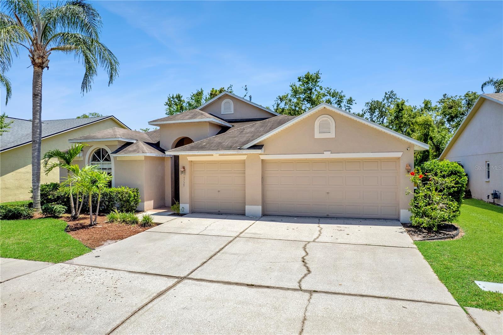 Location!! Location!! Location!! Lake views for days!! This is one of the few properties in the Lake St. Charles community to have a lake view! Discover your dream home in the desirable Lake St. Charles neighborhood! This stunning residence boasts four spacious bedrooms, two modern bathrooms, an enclosed beautiful pool for entertaining, a breathtaking lake view, and a generous three-car garage. The kitchen is a culinary haven, featuring expansive workspaces, elegant solid wood cabinets, and durable solid surface countertops. The spacious primary suite boasts of a luxurious bath with a garden tub, walk-in shower and dual vanities. Two secondary bedrooms share an adjacent bathroom while the third bedroom can easily be converted into an office. The home is bathed in natural light thanks to the sliding glass door that lead to the charming screened pool—perfect for relaxation and entertaining. The master suite is a retreat of its own, complete with a large walk-in closet, dual sinks, and a separate tub and shower for added luxury. With a thoughtful split bedroom floor plan and an interior utility room, this home is designed for both comfort and convenience. Recently painted in March of 2025 with top-quality paint, the interior of the home is bright, open, and inviting. Brand new fence installed in 2025! This beautiful home features vinyl and tile flooring throughout the house. The bathrooms were remodeled in 2024 adding yet another touch of sophistication. The fully fenced backyard features lush, low-maintenance turf and plenty of privacy—perfect for entertaining. Lake St. Charles offers a wealth of amenities, including scenic walking and biking trails around the picturesque 72-acre lake, a community pool, playgrounds, a tennis court, dog park and so much more! Conveniently located near TOP-RATED schools, shopping, and dining, with easy access to US-301, I-75, and the Selmon Crosstown Expressway for a smooth commute to Tampa and Saint Petersburg! Don’t miss the chance to make this exceptional property your own!