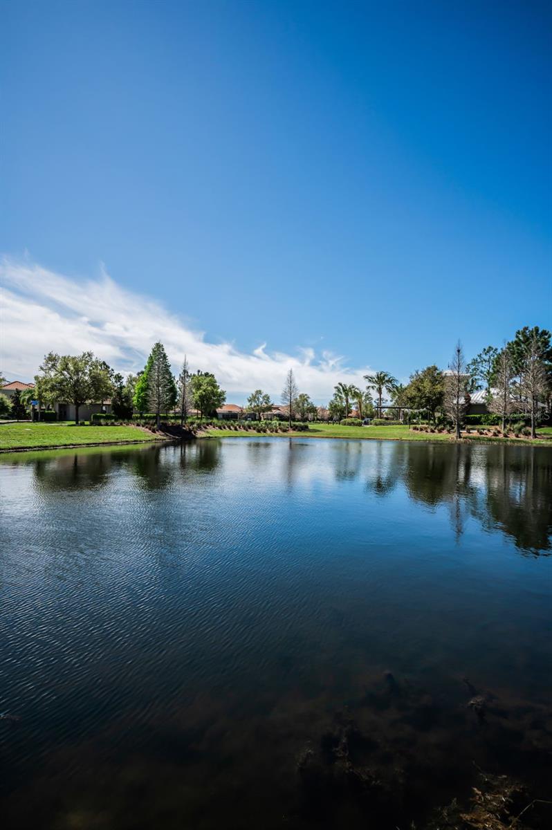 One or more photo(s) has been virtually staged. Located within the exclusive Waterleaf model row, this exceptional Westbay former model residence offers a unique blend of luxury, sophistication, and natural beauty. As part of the esteemed, gated Waterleaf neighborhood, this property is nestled among serene ponds and lush natural surroundings, ensuring exceptional seclusion and tranquility. The absence of direct backyard or multiple side neighbors provides unobstructed views of the picturesque pond, clubhouse, and meticulously landscaped gardens. Notably, substantial investments have been made in upgrades since its last sale; over $50k has been reinvested to bring this home to its current grandeur! Professional painters and touch-up specialists were engaged to ensure a flawless, move-in-ready finish. Comprehensive move-out cleaning detail services were also rendered, resulting in a pristine environment from top to bottom. This residence surpasses its original condition, showcasing exceptional quality and attention to detail. Key features and upgrades comprise: - Interior Finishes: High-quality wood-grain matching ceramic tile throughout, decorative wall panels, tray ceilings with inserts, and an entry featuring double front doors. - Gourmet Kitchen: A bright and airy aesthetic with stainless steel appliances, quartz countertops, and contrasting mahogany-styled floors. The house insurance on this home is very inexpensive do to home security, age of the home and estimated 30 years of life still on ceramic tile roof. - Primary Suite: Custom California-styled closets in the primary room, accompanied by a full primary bathroom suite. - Lighting & Comfort: Upgraded, stellar chandeliers, high-end fans with collapsible blades, and smart electronic shades on slider doors. - Audio/Visual: Professionally installed, ceiling-mounted speakers for surround sound. - Water Systems: A Culligan-branded reverse osmosis water system and water softener. - Exterior & Pool: A fully fenced-in yard, patio, and pool/spa, complemented by a smart lighting system installed in April 2025. Pool is a desired saltwater system, including Jandy DE filtration system, Jandy heater, and all monitored by the Jandy control smart system. Maintenance: Professionally sealed pavers in 2025 and a roof cleaning in 2026.
