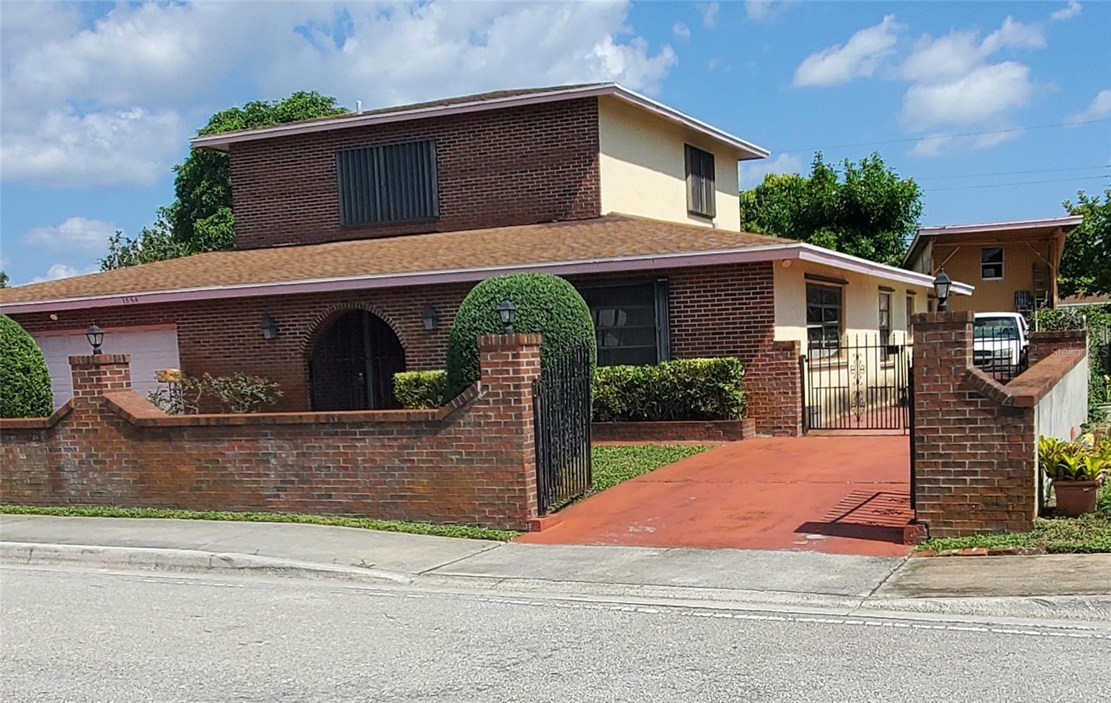 A beautiful custom-built home accented by a brick fence with a motorized gate. The home has two levels with the second level dedicated to the Master Bedroom. The home has a two-car garage in the front of the home, a second garage and a two-story storage/workshop in the rear. The home boast of a large kitchen, a wet bar, family room, living room, two bedrooms and a half bath on the first level. The driveway is constructed of concrete that extends to the workshop in the rear of the property. The rear garage is equipped with 110 and 220 volts. The home also has a security system with cameras and a multiscreen display inside. The home completely fitted with hurricane shutters and an irrigation system supplied by a private well.