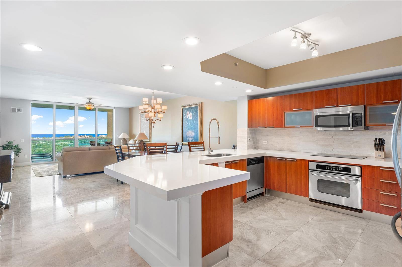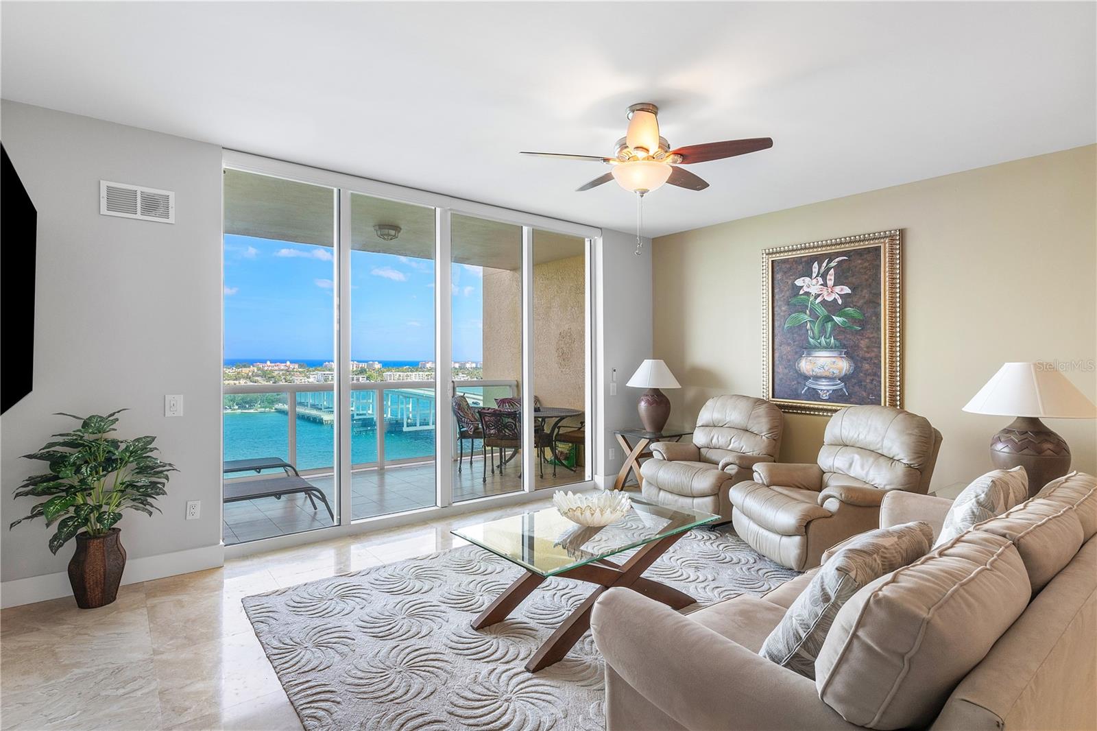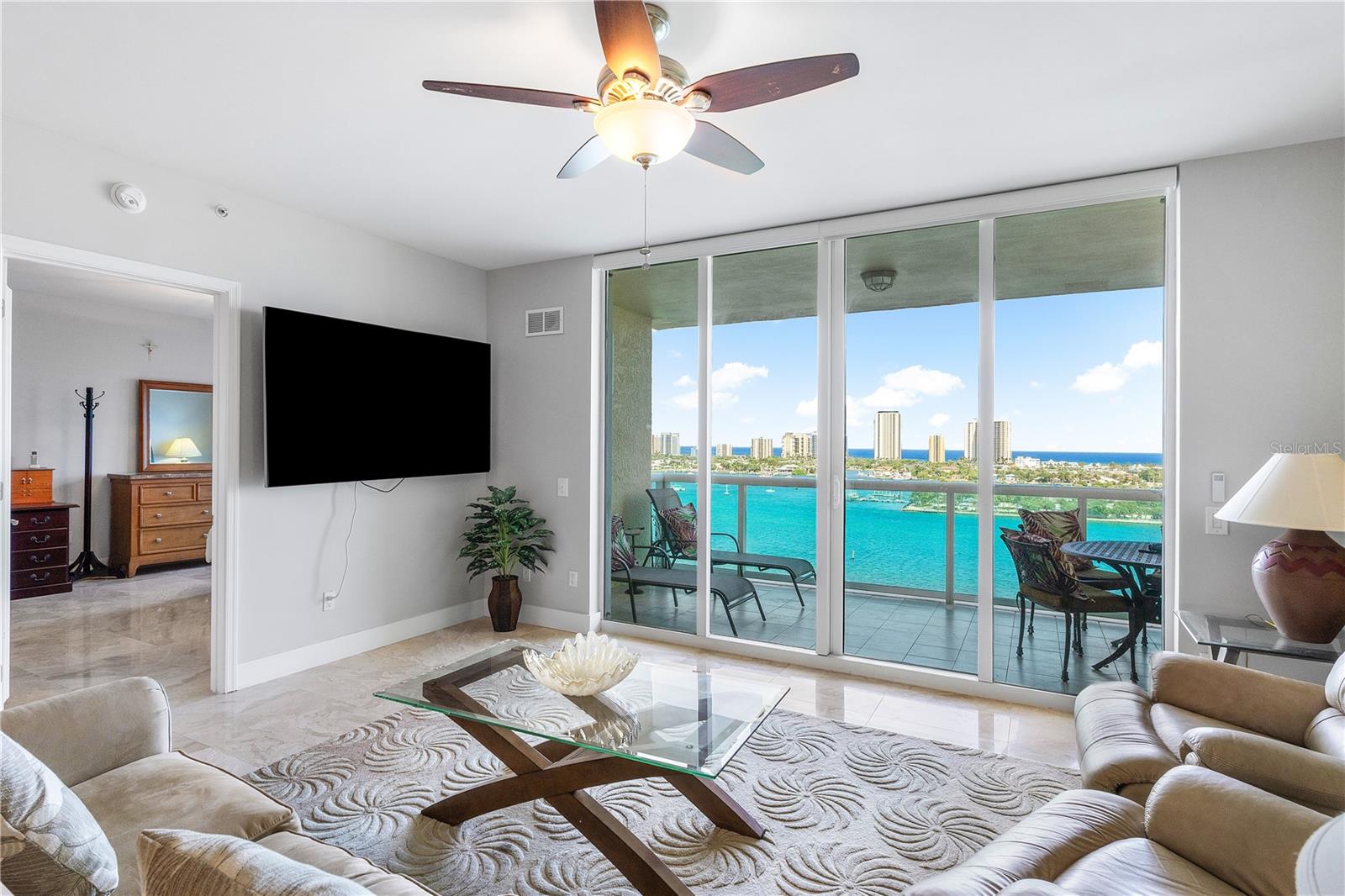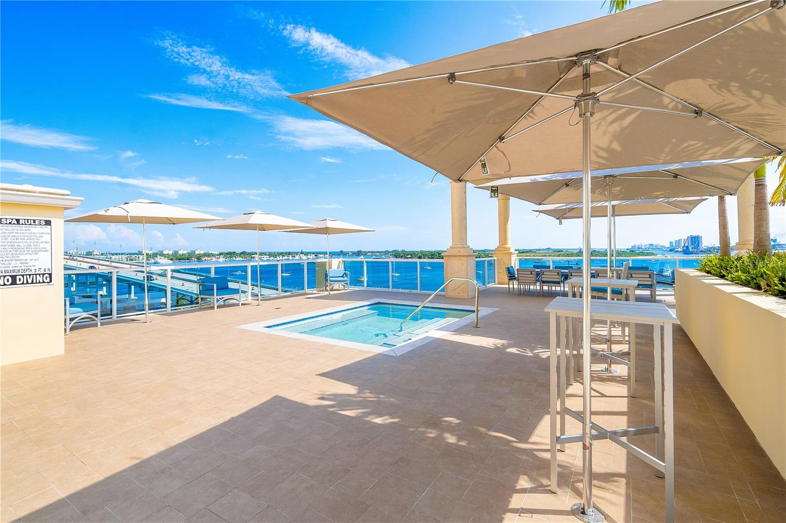 Well we're movin' on up (movin on up).To the east side. To a deluxe apartment in the sky...The waterfront luxurious resort style community of Marina Grande, the gateway to Singer Island and the pristine Rivera Beach, adorned with charming restaurants and shops welcomes you home to your 14th floor fully furnished 2/2 with an enclosed office/den. All you need is your suitcase, and you're ready to move in and enjoy the breathtaking views of the Intracoastal and the Atlantic Ocean from your private covered balcony through your 9ft hurricane impact sliding glass living room doors. The open-concept split floor plan features hurricane impact windows with plantation shutters and marble flooring throughout. Enjoy preparing meals in your kitchen, an elegant focal point, featuring cherry cabinetry and stainless steel appliances complete with a breakfast bar. The primary suite comes complete with dual walk-in closets and an ensuite bath featuring a water closet, dual vanities, whirlpool tub, and an oversized walk-in shower. Your home includes an assigned garaged covered parking spot and a 7.5’(h) x 3.5’(w) x 5’(l) Storage Space on the 6th floor. You have found the perfect vacation home or primary residence to live like you are on vacation year-round with amenities galore. The HOA fee includes cable, internet, and water for your personal residence with the community amenities inclusive of a 24 hr. manned security gatehouse, a valet, fitness center with his & hers locker rooms, newly remodeled heated lap pool, hot tub, sauna & steam room, BBQ grills/smoker, tennis/pickle-ball/bocce ball courts, billiards & social rooms. But wait, there’s more… The adjoining Loggerhead marina offers 300 dry dock slips and is located just five minutes from one of the safest all-weather inlets on the East Coast, with no bridges or other obstructions. Inclusive of a service dept, fuel dock, and Marine center. Less than a mile away, you’ll also find dog-friendly Phil Foster Park, a 14.7-acre beach park featuring an underwater snorkeling trail & fishing areas. Take your boat or a water taxi to nearby 80-acre Peanut Island featuring great snorkeling, pathways, overnight camping, and swimming. Championship PGA Golf courses are just minutes away for our land lovers!