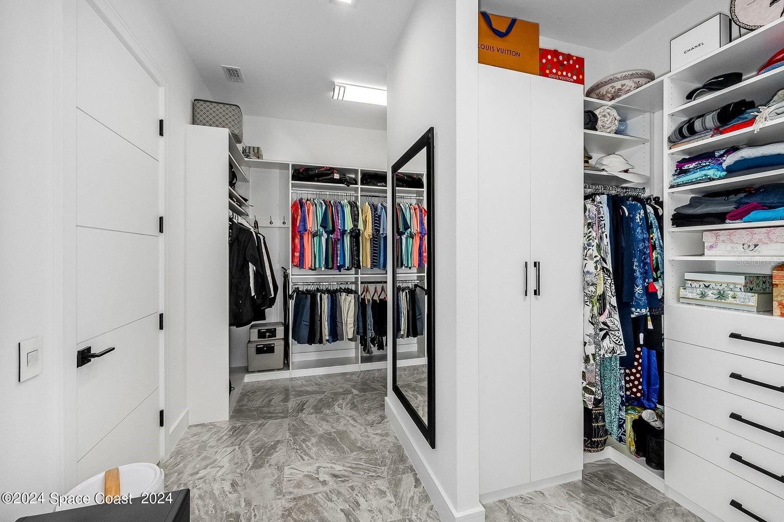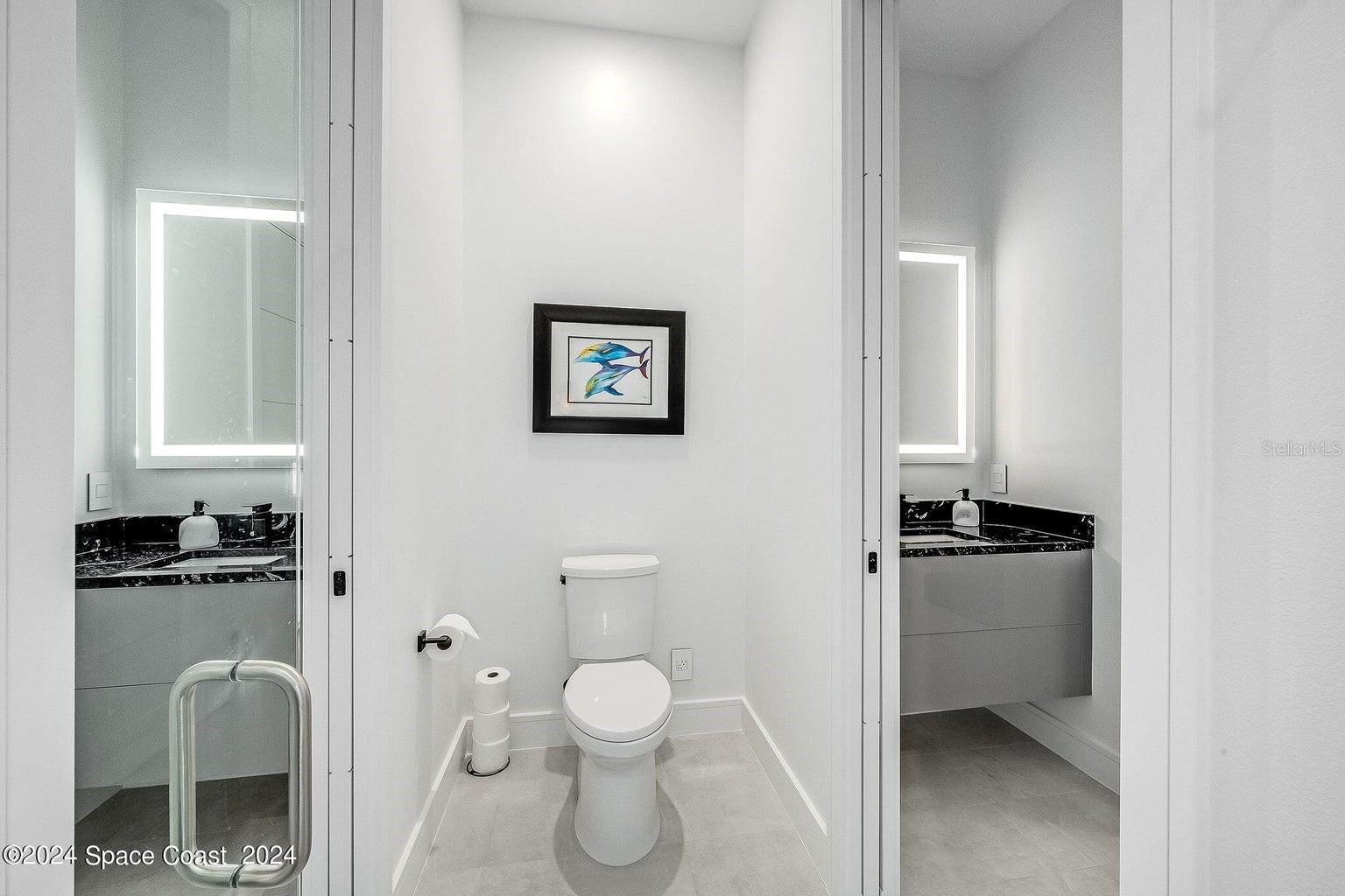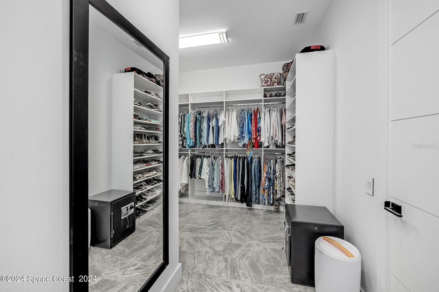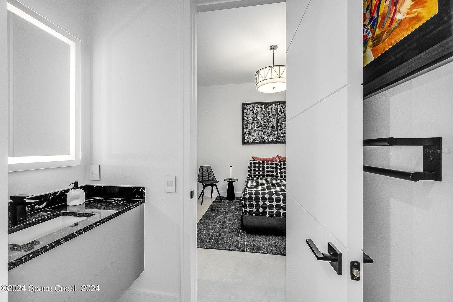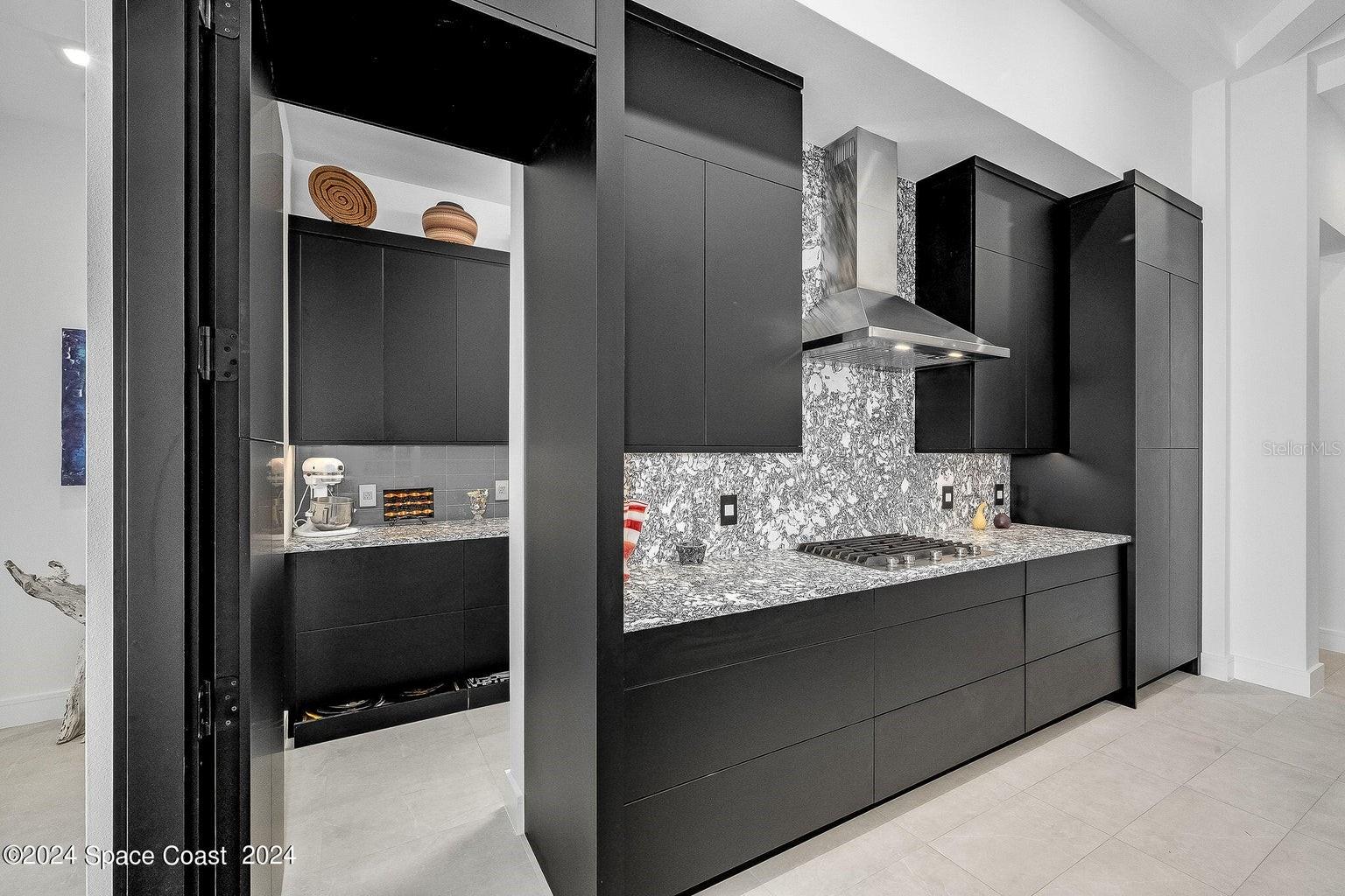 Beautiful custom-built home by Christopher Burton nestled on the Indian River, offering 4,946 total SF of refined living space. Entry features a hurricane-rated Mahogany door leading to a foyer illuminated by a hand-blown glass chandelier. Inside, Great Room boast 12FT ceilings, custom beams & an art wall w/ dimmable art lighting. Chef's kitchen includes top-tier JennAir appliances, a hidden pantry & Moen touchless faucet. Primary Suite is a luxurious retreat w/10FT ceilings, slipper tub, walk-in shower, Toto Washlet & custom Artistry closet. Entertainment at your fingertips in the Media Room w/ a 77'' OLED TV on custom backdrop. Step outside to a covered patio w/ river views & outdoor kitchen. Park your cars in the oversized 3 car garage. Advanced automation; motorized shades, Wi-Fi th/out, security sys, built-in speakers, whole-house generator. Sustainable features: Smart lawn irrigation & 50 AMP EV-ready. A Perfect blend of elegance & modern features w/ picturesque Riverfront views!