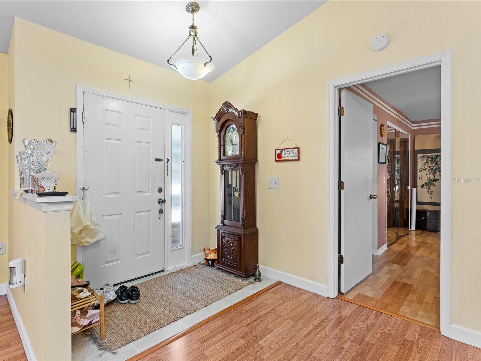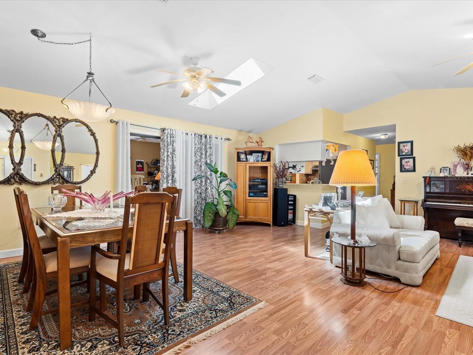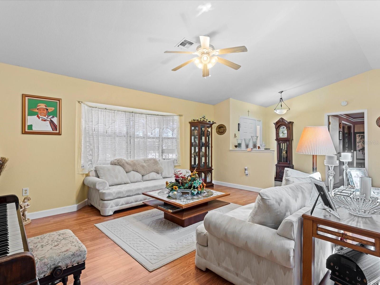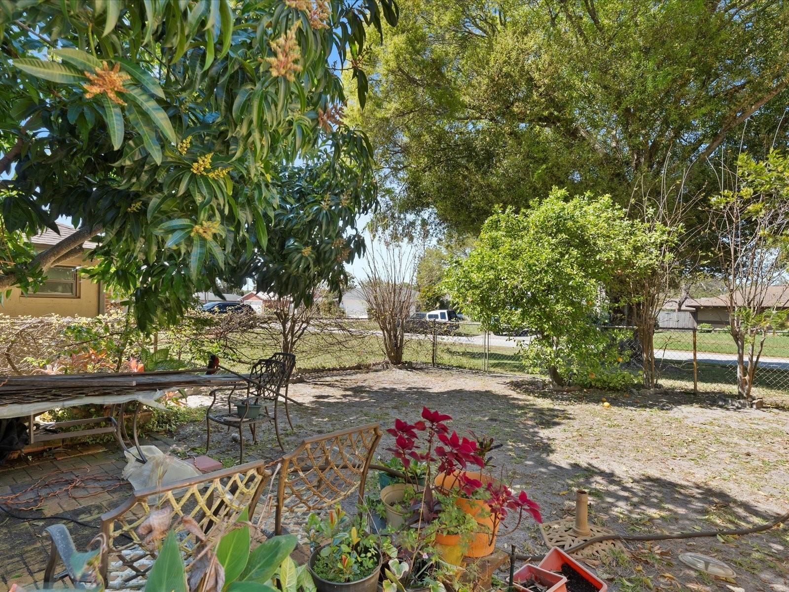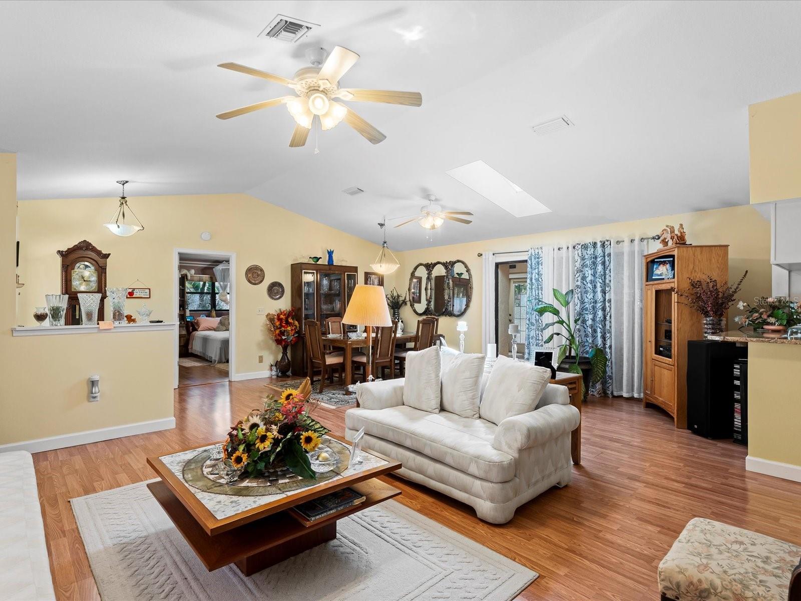 Welcome to 851 Juniper Circle, a spacious 3-bedroom, 2-bathroom home in the peaceful Buckingham at Levitt Park neighborhood, offering no HOA and plenty of charm. As you step inside, you’ll be greeted by an open-concept living and dining area filled with natural light from a skylight installed during the 2022 roof replacement. The kitchen features granite countertops, stainless steel appliances, and a breakfast area, while an oversized family room addition provides extra space for entertaining. The split floor plan ensures privacy, with the master suite boasting his and hers closets. The backyard is a true retreat, fully fenced and perfect for gardening, featuring a patio, shed, and fruit trees including mango, avocado, and orange. Additional highlights include a 2024 water heater, a two-car garage, a circular driveway for easy access, and vaulted ceilings reaching approximately 12 feet. Conveniently located just 17 minutes from the beach, 20 minutes from Port Canaveral, and 25 minutes from the John F. Kennedy Space Center, this home also offers easy access to I-95, shopping centers, restaurants, and grocery stores. Don’t miss the opportunity to make this home yours!
