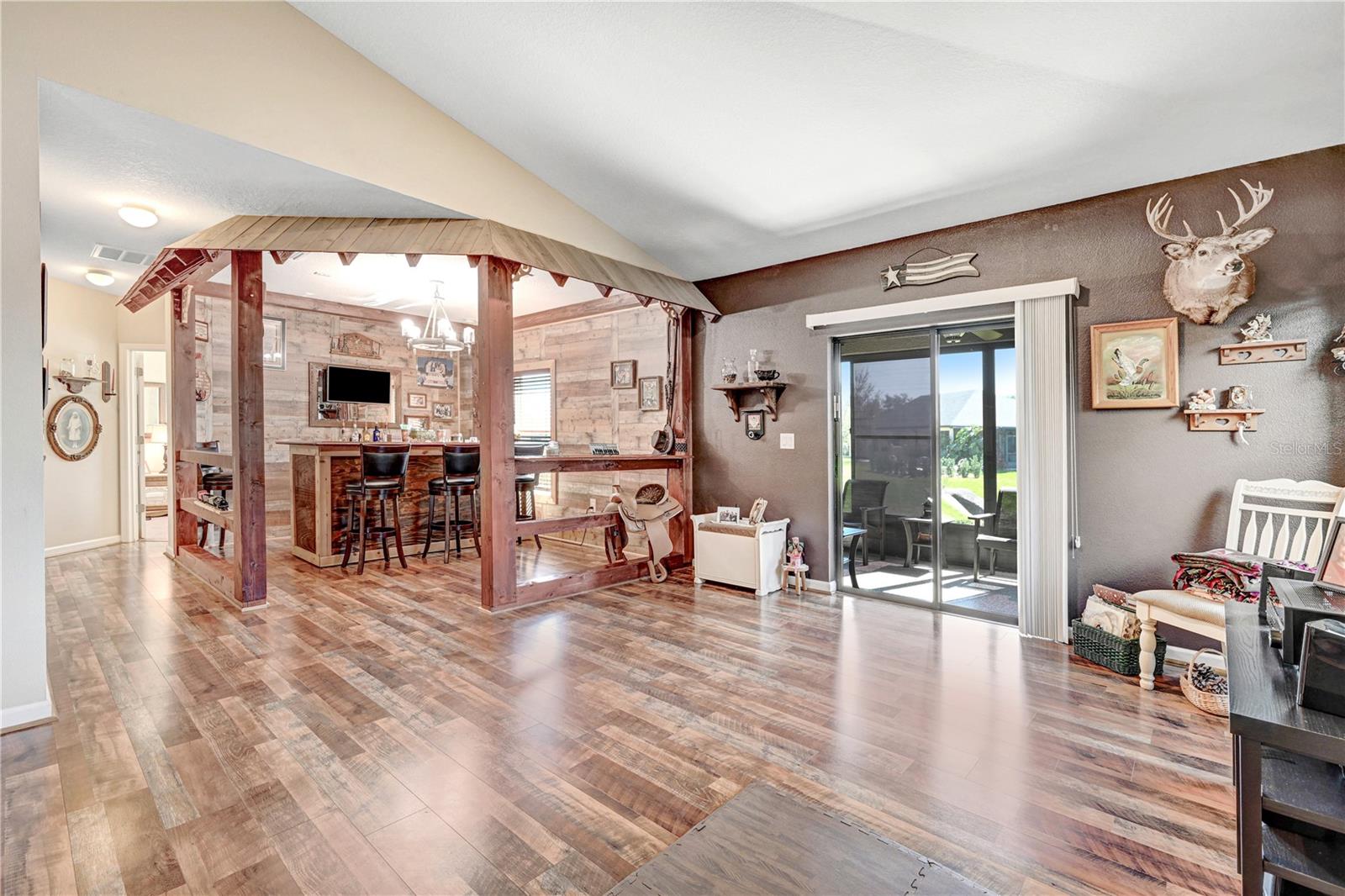 IMMACULATE MOVE IN READY OPEN FLOOR PLAN IN SIERRA LAKES GATED COMMUNITY. MUST SEE TO BEAUTIFUL TO PASS UP. AS YOU ENTER IN YOU WILL NOTICE VAUTED CEILING, LARGE KITCHEN WITH GRANITE COUNTERTOP WHICH ARE IN THE BATHROOMS ALSO. THREE BEDROOMS, ONE BEDROOM CONVERTED TO BAR/RECREATIONAL AREA. AS YOU LOOK OUT BACK IS A LANAI WITH CEILING FAN OPERATED WITH REMOTE. OWNERS WILL CONTRIBUTE $1000.00 TOWARD CARPET WHICH IS IN THE BEDROOMS ONLY. ALL WINDOWS AND SLIDING DOOR HAVE STORM SHUTTERS. MUST SEE WON'T LAST LONG.