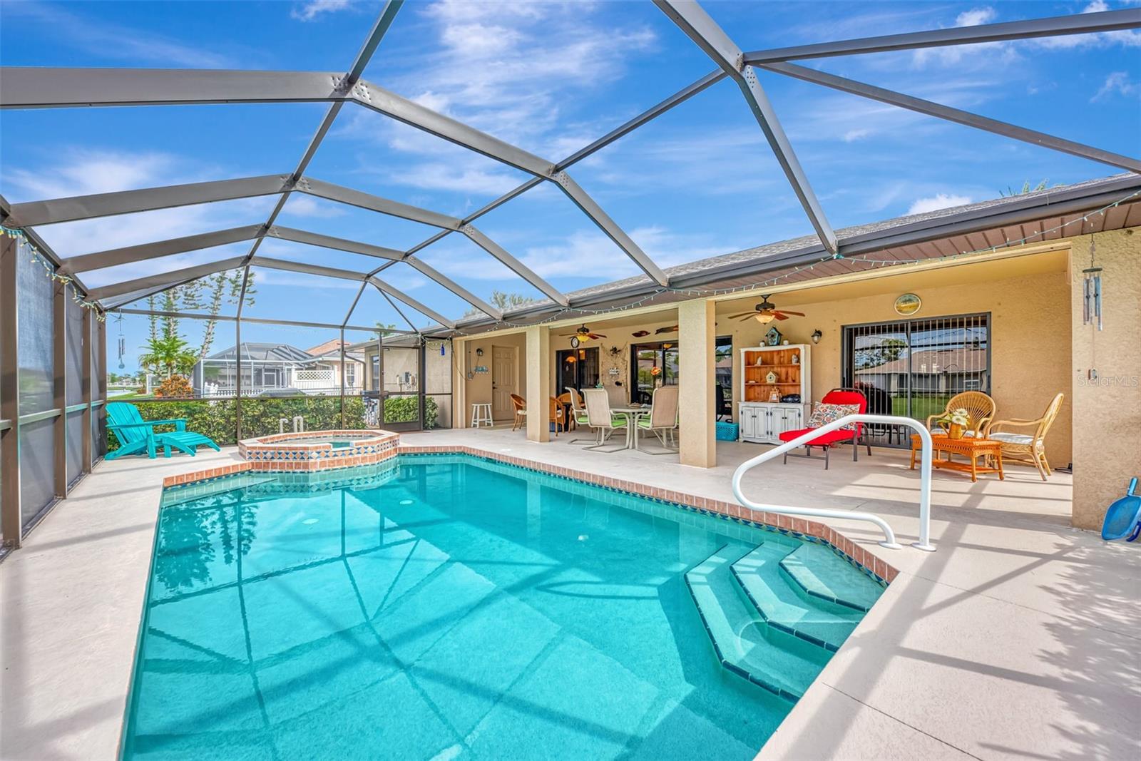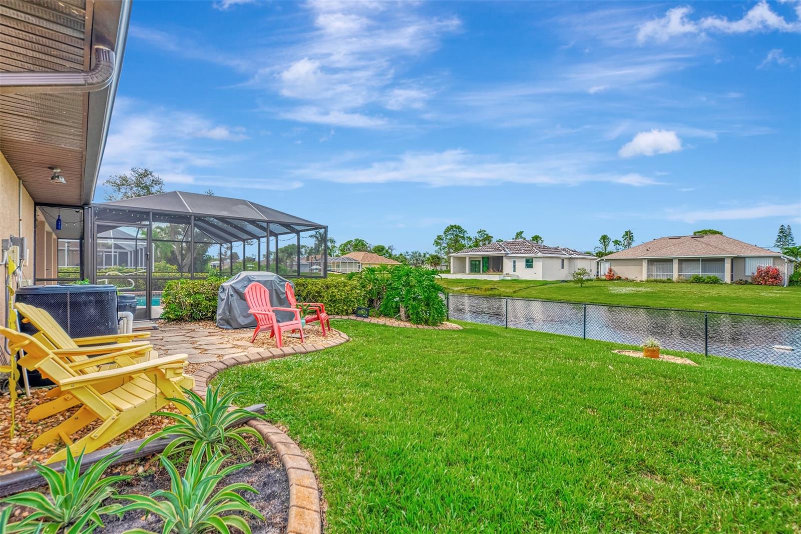 WOW! MOTIVATED SELLER! HUGE PRICE IMPROVEMENT! SPACIOUS Pool Home with NEW ROOF 2023 in the wonderful deed-restricted GOLF community of Rotonda West. This large FOUR bedroom, two bath, two car garage home has been meticulously maintained and beautifully landscaped. From the moment you walk through the front door, you will be in awe looking into a large foyer with your formal living room and dining room on either side. Continue through and you're in your cozy family room with a wall of sliding glass doors overlooking the lanai, pool, canal and partially fenced yard for your furry friends. The large kitchen is open with an additional dining area, breakfast bar, tons of cabinets and counter space, a pantry, and stainless steel appliances (New Refrigerator 2023) . The split floor plan allows for privacy for owners, family, guests, or home office. The master suite has sliders overlooking the pool, tray ceiling, a walk-in closet, and an en suite bath. The spa master bath features a large walk-in shower, garden tub, dual sinks, and linen closet. On the opposite end of the house are 3 GUEST BEDROOMS and a 2nd bathroom that opens out to the lanai/pool area for easy access. The huge lanai is perfect for entertaining, lounging, catching some games on TV or just relaxing and watch the abundant wildlife. The refreshing pool and spa are heated for year-round enjoyment. This home held strong during hurricane with high-quality fabric hurricane screens and roll-down screens for the lanai, making it easy to prepare for any bad weather. New Water Heater 2023. Conveniently located near world-class fishing spots and stunning Gulf beaches of Boca Grande and Englewood Beach are just a short drive away. For golf enthusiasts, there are several golf courses nearby. The Rotonda Community Park offers additional recreational amenities for the whole family to enjoy. Shopping, dining options, medical care facilities, and entertainment venues are all within a short distance. Sports fans can catch a game or event at the nearby Charlotte Sports Park. Why wait to build? This stunning home is MOVE-IN ready! Schedule your showing today!