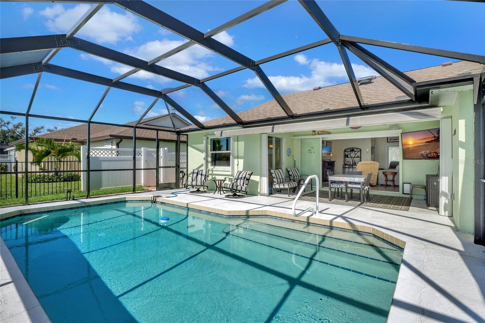 Panoramic Tranquil Lakefront Views overlooking the pool! What an oasis for peaceful enjoyment for friends and family to gather, or just an Owners' Haven! This 3 Bedroom 3 Bath home has been updated beyond belief : NEW SINCE 6/2022: NEW BRONZE SCREEN ENCLOSURE 12/2023, NEW AUTOMATIC SUNBRELLA SHADE on Lanai 11/2022, DRYER, FENCE, HOT WATER TANK, QUEEN SLEEPER SOFA, TWIN SLEEPER CHAIR, ALL MATTRESSES, BEDROOM FURNITURE FOR PRIMARY AND SECOND EN SUITE _ _ _ _ _ _ ELECTRIC UPDATED. NEW POOL HEATER 2021, ELECTRIC FOR FUTURE GENERATOR 2021,KITCHEN REMODEL 2015, ROOF 2015, HVAC 2015, THIRD BEDROOM EXPANDED TO ACCOMMODATE NEW EN SUITE BATH WITH WALK IN SHOWER 2015, STORM SHUTTERS 2011, WINDOWS REPLACED 2020, PLUMBING REPIPED 2020, IMPACT RATED GARAGE OVERHEAD DOOR, RESURFACED POOL, REPLACED POOL PUMP ----- The Only Thing Missing Is YOU in YOUR New Piece of Paradise!! Located in serene Rotonda West, with many nearby towns, restaurants, shopping and what Florida is known for Beautiful Beaches! The third bedroom contains a Murphy Bed so it can easily be used for a flex room. List of Updates, Replacements, Inclusions and Exclusions attached.