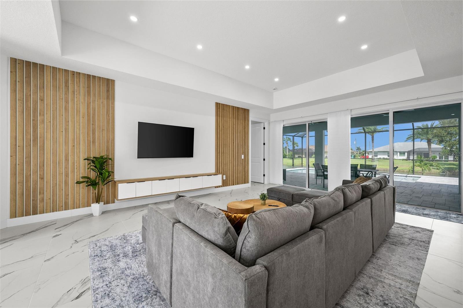 Significant PRICE REDUCTION! Custom-Built New Home – One-of-a-Kind Opportunity | Priced to Sell Below Market. This exceptional custom-built residence offers a rare opportunity to own a truly distinctive home that cannot be replicated in the area. Unlike typical builder-grade properties, this home was thoughtfully designed with superior craftsmanship, elevated finishes, and careful attention to every detail. This luxurious waterfront new construction represents an exceptional value compared to other properties in the vicinity. MODERN living in this brand-new Rotonda West residence is proof you can really have it all! Enviably set on a coveted WATERFRONT lot in a premier GOLF COMMUNITY, this incredible abode exudes impressive curb appeal enhanced by an impeccably landscaped front yard. Revel in the peace of mind with integrated SECURITY CAMERAS. Through the glass-inlaid double doors, discover a magnificently crafted interior finished in rich wood accents, crisp white tones, custom floating cabinetry, and beautiful tile flooring. High tray ceilings adorned with recessed lighting create a welcoming atmosphere across the open-concept living areas, anchored by expansive glass sliders that inspire seamless indoor/outdoor entertaining. Chic lighting fixtures cast a warm glow over the dining alcove and the kitchen’s waterfall island. With top-notch stainless steel appliances, handsome cabinets, and sleek quartz countertops, it’s the ideal culinary space for an avid cook. Breathtaking views greet you in the four well-sized bedrooms, all graced with ample storage and built-in organizers. Two are ensuite, including the primary retreat which has two walk-in closets and an exceptional bath with dual vanities, a frameless shower, and a spa-like freestanding tub. Step outside to the covered lanai where you can relax and enjoy festive gatherings by the screened-in HEATED SALTWATER POOL against an idyllic backdrop of the FRESHWATER CANAL and lush fairways. Additionally, there’s a laundry room, an attached 2-car garage. As perks for living here, you’ll have access to its world-class amenities like the five golf courses, tennis courts, parks, and scenic greenways. Plus, Charlotte County Sports Complex, shopping, dining, and the pristine beaches of Englewood, Manasota Key, and Boca Grande are within easy reach. Come for a tour while this fantastic home is still available! !!!!Lender Rob Kozina, with NMLS#1081156 from Midamerica Lenders & Co, is extending an offer of up to 1% of the loan amount towards a rate buy down or lender credit specifically for this property. Midamerica Lenders & Co, NMLS#309009, is an Equal Housing Lender. Please be advised that this offer does not constitute a commitment to lend, and certain restrictions may apply!!!!