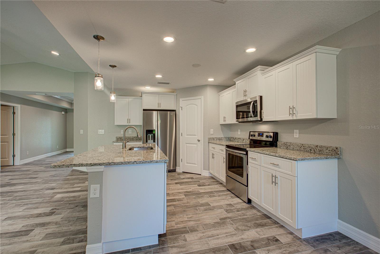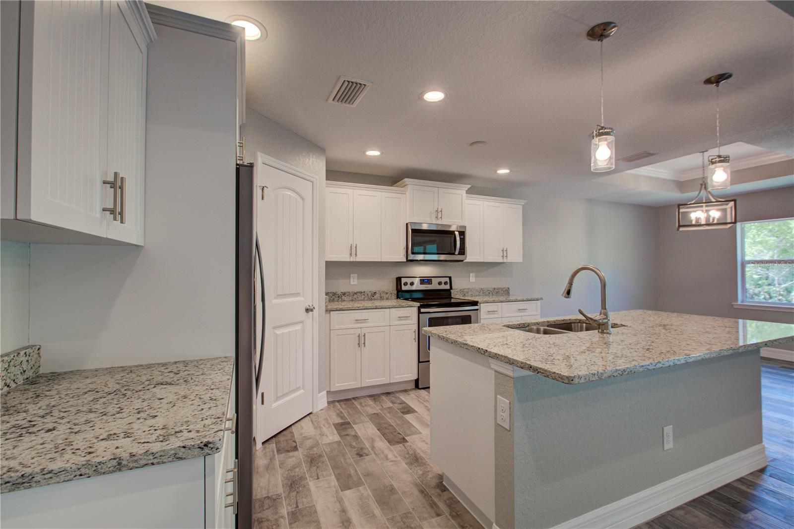 Under Construction. "UNDER CONSTRUCTION" This beautiful home will be completed in approximately 60 days. The Manatee 2 Model is a wonderful home design encompassing 3 bedrooms, 2 baths, and an oversized 2 car garage across 1,700 sq. ft. of living space. The open kitchen includes a walk-in pantry, spacious island, breakfast/dining area, and French Doors leading to the lanai. The master bedroom includes a walk-in closet, walk-in shower, and dual sink vanity. The remaining 2 bedrooms are located by a secondary bath which includes a shower. The home features cathedral ceilings, wood look tile throughout, granite countertops in the kitchen and bathrooms, recessed lighting, ceiling fans in every room, and stainless steel appliances. The home comes with hurricane/storm shutters. There is no wasted space in this home as it was designed for the discerning buyer who is looking to live the Florida lifestyle. Stop by today to see this beautiful home! PLEASE NOTE - the pictures for this listing are representative of the subject home being constructed. Interior and exterior paint colors, windows, tray ceilings, shingle colors, fans, lights, manufacturer of appliances, interior/cabinet door style, and landscaping are subject to change. Please note the front elevation of the subject home only has one window.