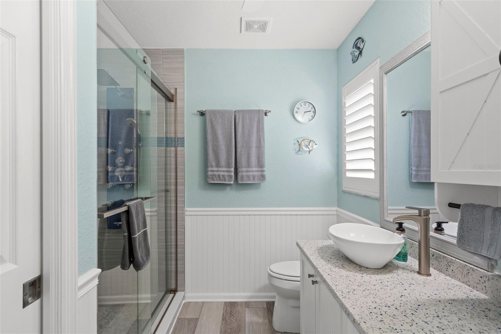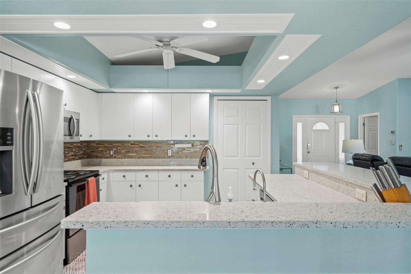 Welcome to 106 Kings Dr, a stunning home nestled on a quiet dead-end street with a cul-de-sac in the highly sought-after community of Rotonda West, FL. This meticulously maintained 3-bedroom, 2-bathroom home offers 1,575 sq. ft. of living space with an inviting open and split floor plan, soaring vaulted ceilings, and NEW WOOD PLANK WATERPROOF LAMINATE FLOORING throughout. Step inside to find a beautifully updated kitchen featuring sleek quartz countertops, a breakfast bar, pantry, newer stainless steel appliances, and a WATER R.O. SYSTEM in the kitchen for pure, refreshing water. The spacious living room boasts triple sliding glass pocket doors, seamlessly expanding the indoor living space onto the lanai, creating a perfect flow for entertaining. The BONUS FLORIDA ROOM, complete with electric, A/C, and a ceiling fan, offers endless possibilities—use it as an office, home gym, or game room! A separate laundry room leads to an oversized two-car garage, providing convenience and extra storage. The true highlight of this home is the private outdoor oasis. Enjoy the expansive 22’ x 18’ covered lanai along with a 19’ x 31’ pavered, uncovered lanai, both overlooking the breathtaking saltwater pool and spa. Designed for relaxation, the Caribbean Blue Pebble Tec pool features a sun shelf, waterfall, and color-changing lights, with a NEW pool pump (2024) and pool light (2025) ensuring pristine waters. Unwind in the HOTSPRINGS ENVOY 5-PERSON SPA, or step outside the pool cage to the extended pavered patio, ideal for grilling, storing pool equipment, or an outdoor shower. Retreat to the master suite, which boasts a large walk-in closet and private sliding glass doors leading to the lanai. The luxurious en-suite bathroom has been completely remodeled with a walk-in rainfall shower, multifunctional handheld showerhead, and 8 body massage nozzles. The updated guest bathroom features a gorgeous blue glass vessel sink and a shower-tub combo. Situated on a lushly landscaped lot with an irrigation system (2014), this home offers both privacy and curb appeal. The FRESHLY PAINTED INTERIOR AND EXTERIOR add a crisp, modern touch, while plantation shutters provide elegance and efficiency. Perfectly located just minutes from shopping, restaurants, parks, golf courses, boat ramps, scenic trails, and some of Florida’s most renowned beaches, this home is truly a must-see! Don't miss the opportunity to own this exceptional property—schedule your private showing today! **Furniture is Negotiable**