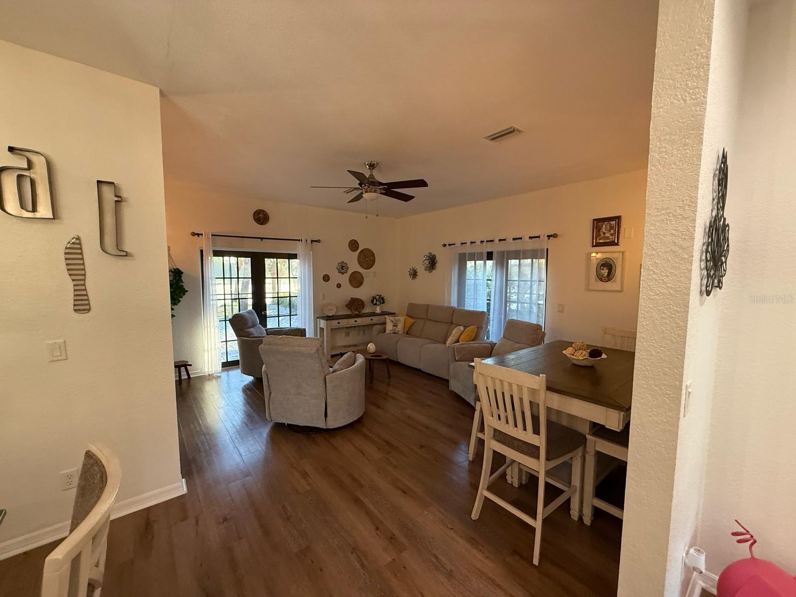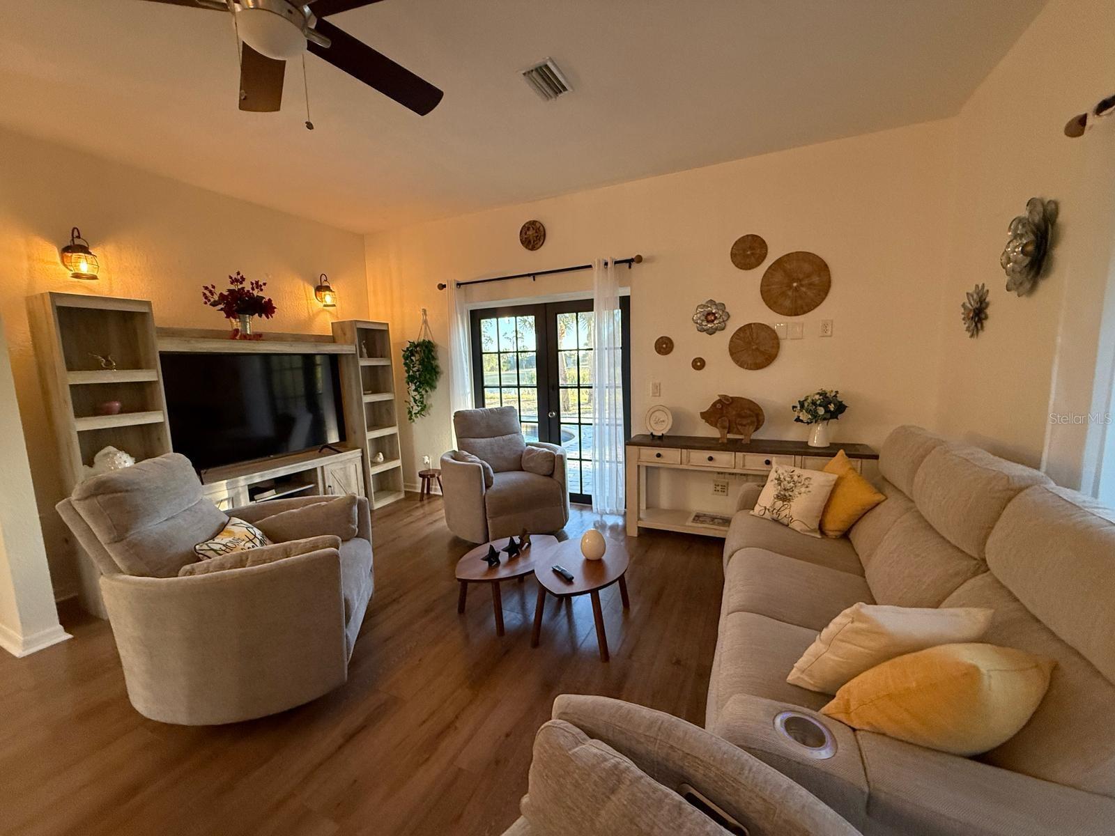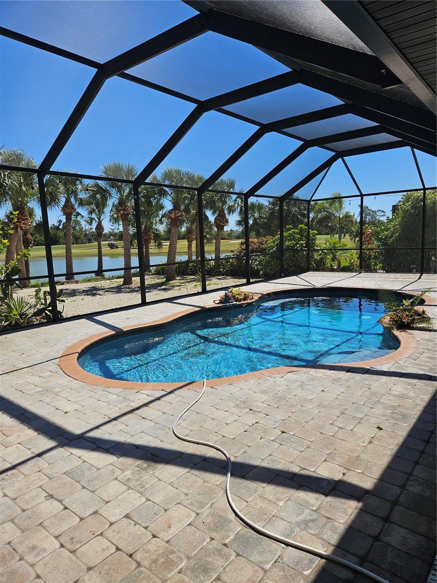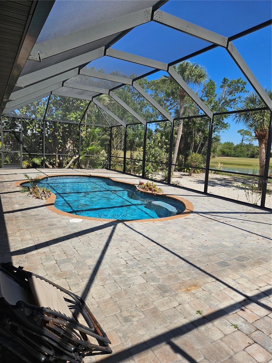 This stunning 4-bedroom, 4.5-bath home, Perfectly situated on the 6th hole of the Long Marsh Golf Course, it combines luxury, comfort, and breathtaking views. The home's design is filled with gorgeous details like designer ceiling fans, stylish lighting fixtures, attractive wood accents, and beautiful bamboo flooring. The soaring vaulted ceilings add an extra sense of spaciousness, while the French doors lead to a brick paver screened lanai with a serene pond view. The gourmet kitchen is a chef's dream, featuring upgraded stainless appliances, a 6-burner gas cooktop, double built-in ovens, and granite countertops. Enjoy peaceful walking paths, inviting sitting areas, and stunning views of both the lake and golf course. This home offers peace of mind with features such as a central vacuum system, hurricane-impact windows, and metal roof. 3-car garage ,1 garage was a converted office space, which can easily be returned to a traditional garage if desired. This home is an exceptional opportunity for anyone looking for a spacious Don’t miss out!