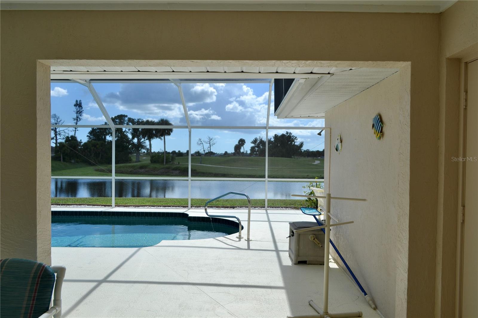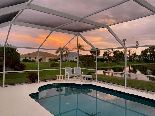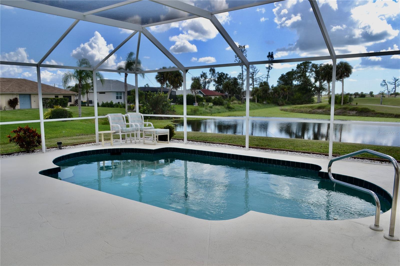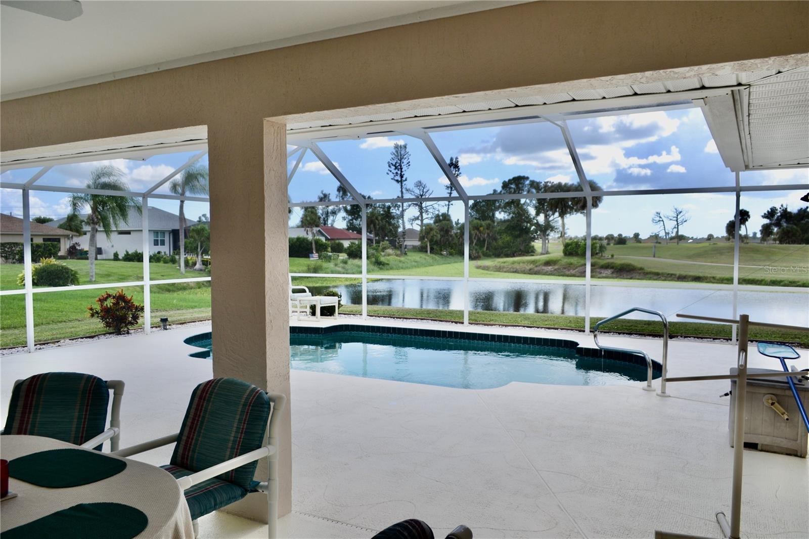 If your looking for one of the finest Golf Course with a View combined with a Lake View that includes a massive range of wildlife in South West Florida's Rotonda West then this is the house for you. 3 Bedroom with spacious walk-in closets, 2 Bath's with skylights, 2 car spacious garage with roof storage, fixed cupboard storage, automatic garage door, washer & dryer, Heated Pool, New Roof, Newly Painted, New Door, New Pool Screen, Amazing Sunsets, nice mature gardens and palm trees, 5 zone lake fed irrigation system, Perfect Home for entertaining with open floor plan, high ceilings, ceiling fans in each room and Lanai, Community park, 2 newly refurbished tennis courts, play area & large communal gazebo for family entertainment, Home is being sold Turn Key just bring your tooth Brush. Easy to show. This home doesn't require Flood insurance either.