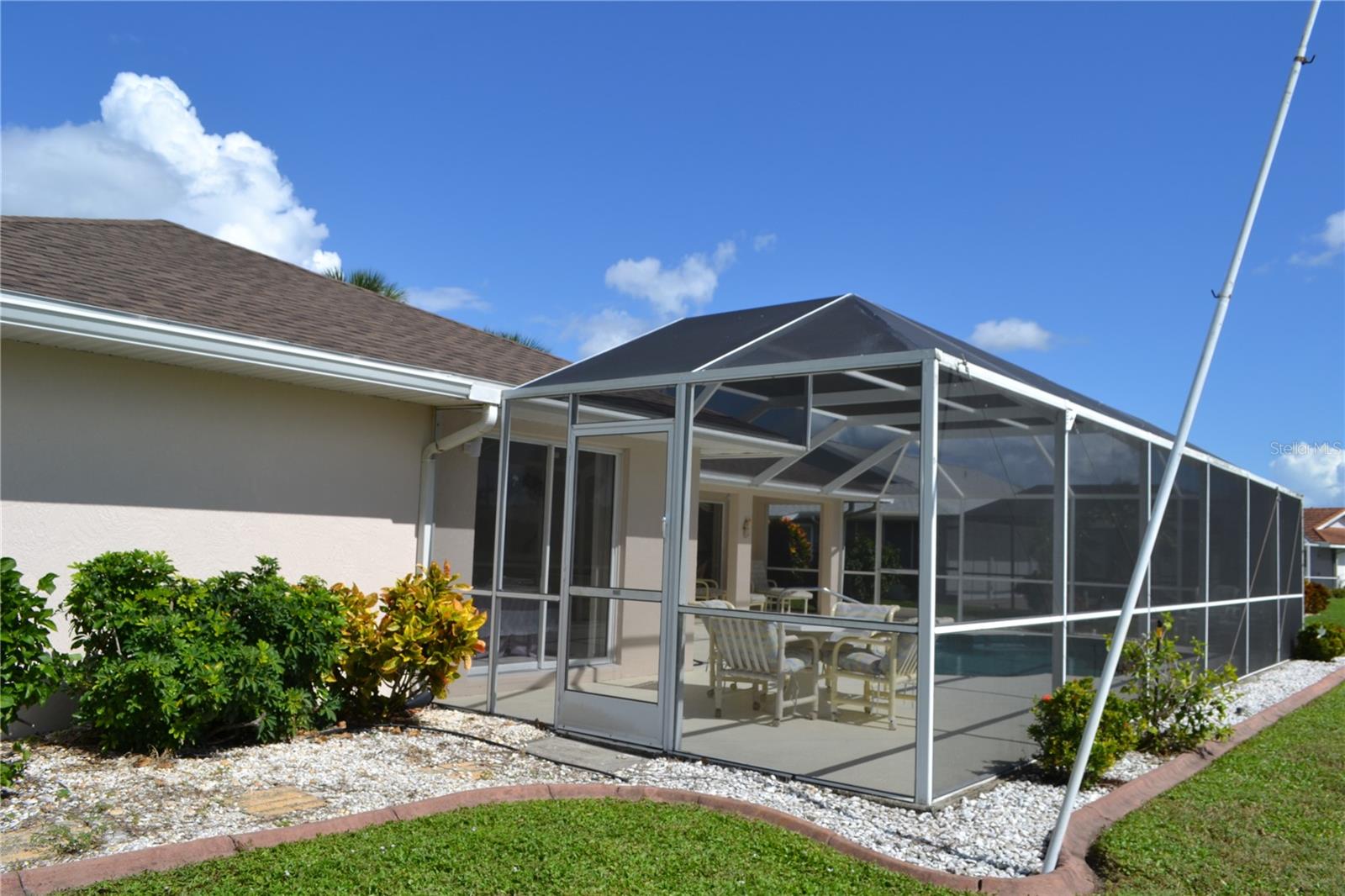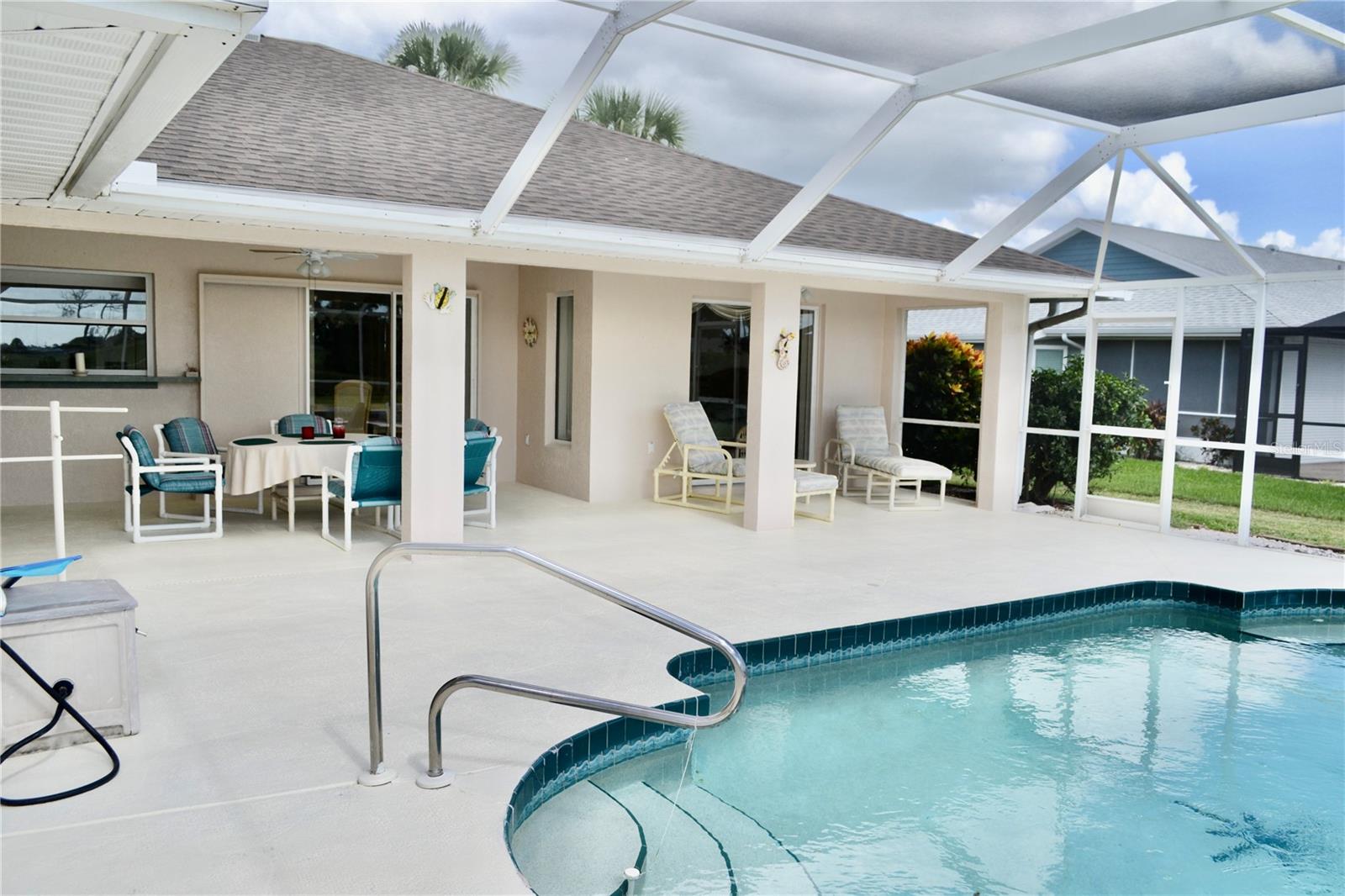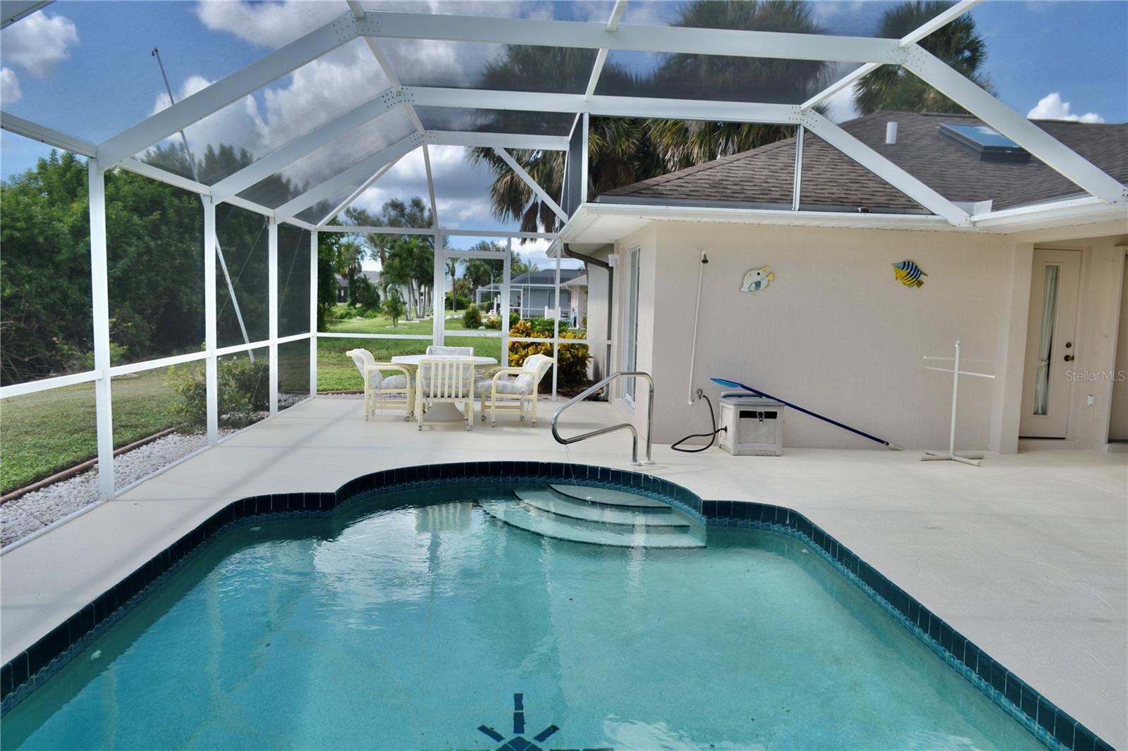 If your looking for one of the finest Golf Course with a View combined with a Lake View that includes a massive range of wildlife in South West Florida's Rotonda West then this is the house for you. 3 Bedroom with spacious walk-in closets, 2 Bath's with skylights, 2 car spacious garage with roof storage, fixed cupboard storage, automatic garage door, washer & dryer, Heated Pool, New Roof, Newly Painted, New Door, New Pool Screen, Amazing Sunsets, nice mature gardens and palm trees, 5 zone lake fed irrigation system, Perfect Home for entertaining with open floor plan, high ceilings, ceiling fans in each room and Lanai, Community park, 2 newly refurbished tennis courts, play area & large communal gazebo for family entertainment, Home is being sold Turn Key just bring your tooth Brush. Easy to show. This home doesn't require Flood insurance either.