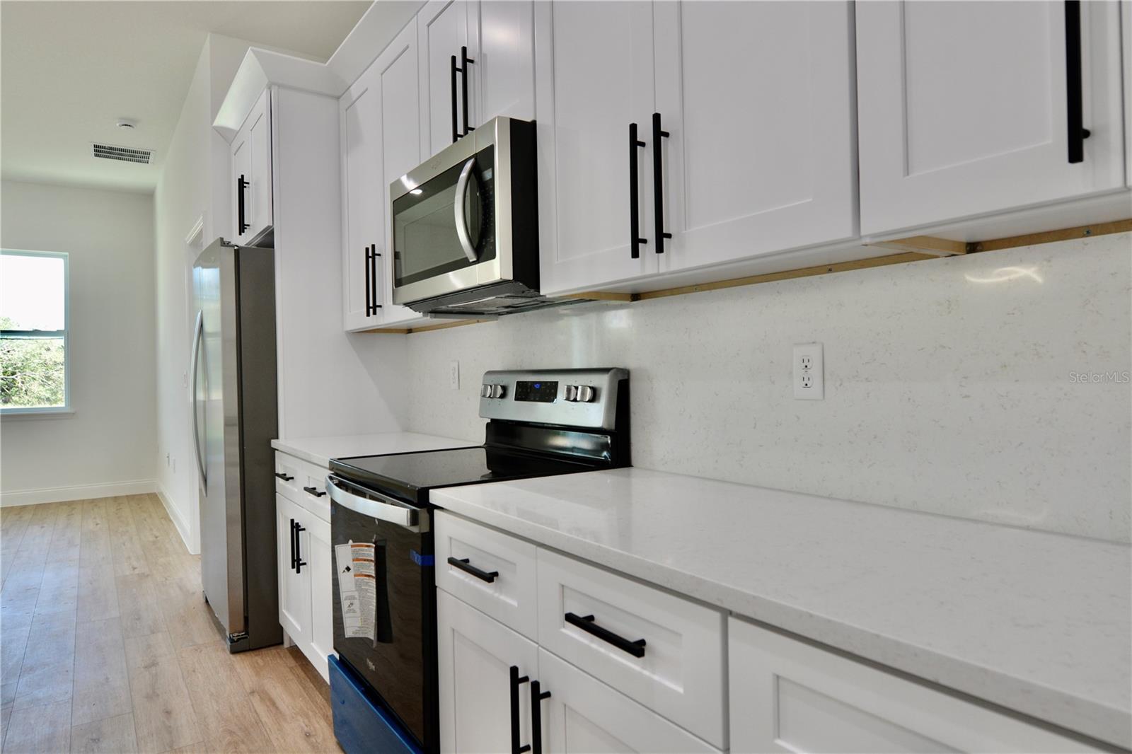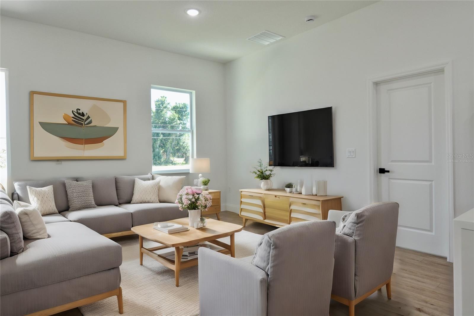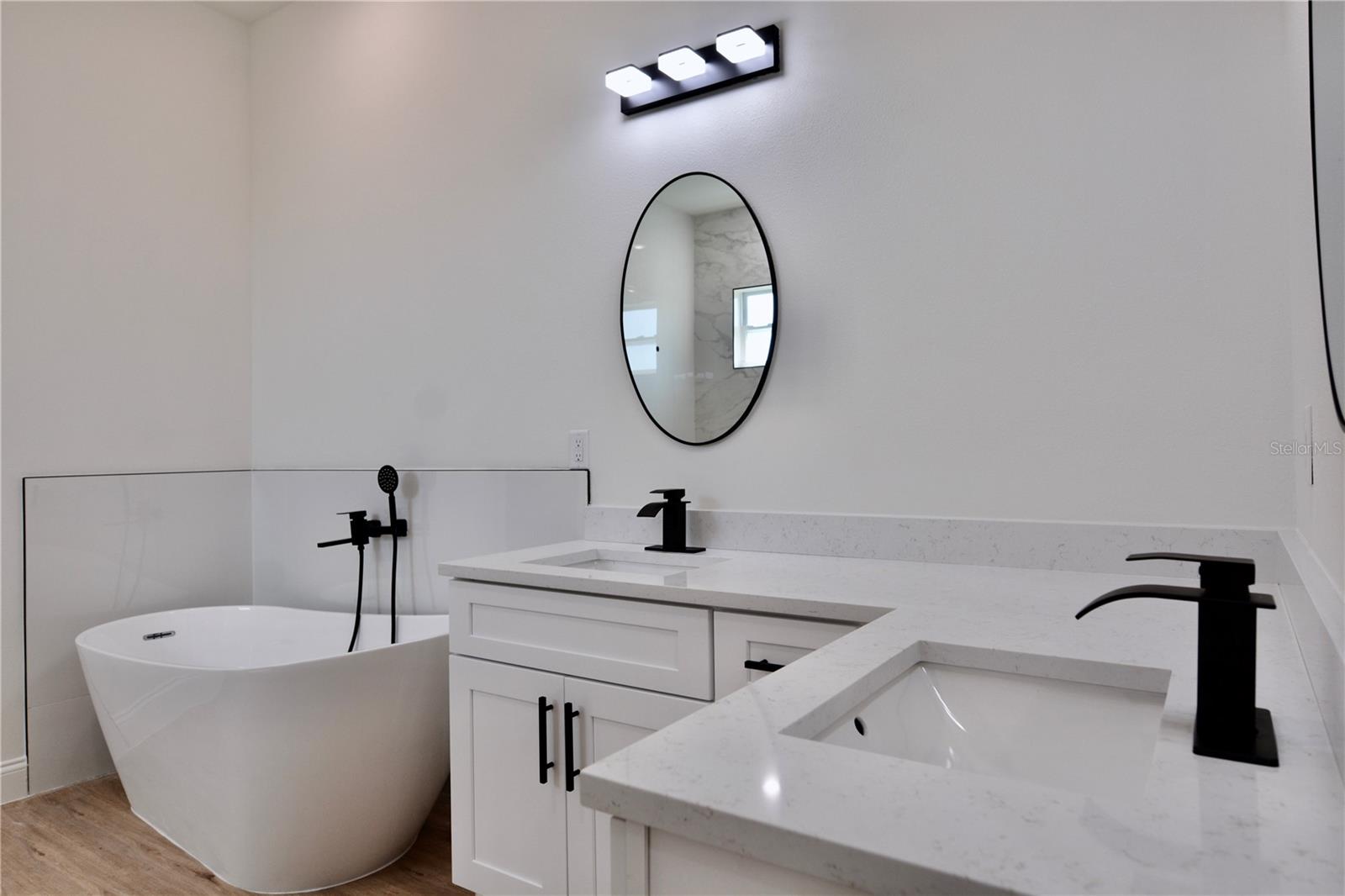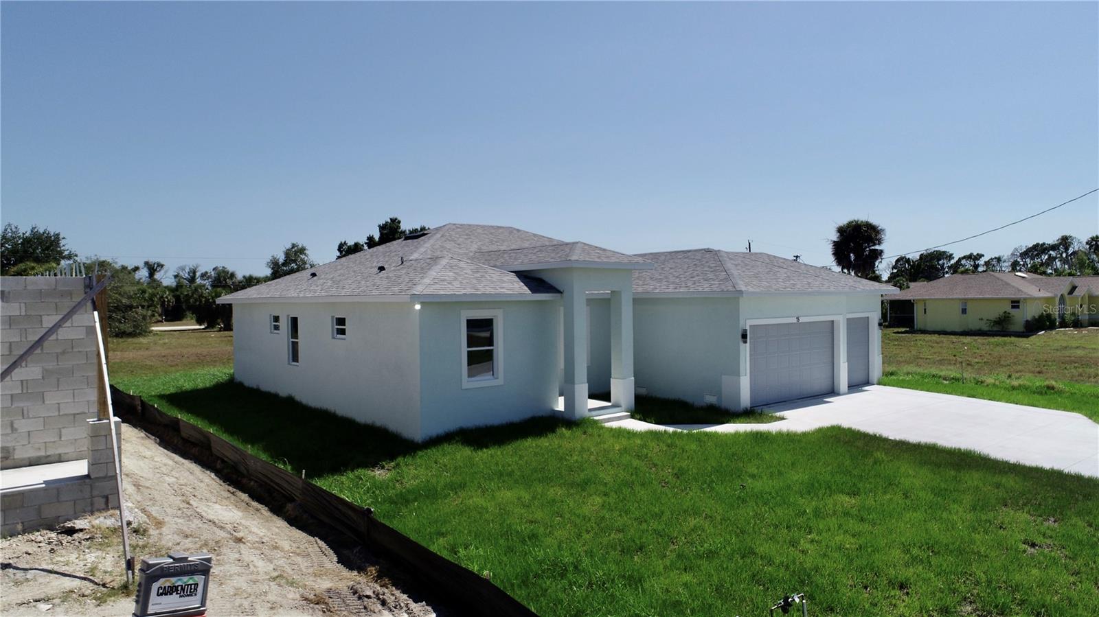 One or more photo(s) has been virtually staged. Construction completed, awaiting CO. Welcome to the Pebble Beach Village at Rotonda West! A community with a central hub, canals reaching out like spokes in a wheel, all draining into a river that encircles the twelve mile circle. 75 Mark Twain is a new construction featuring 4 bedrooms, 3 bathrooms and a 3 car garage! An elevated, covered pillared entry welcomes you into the bright, open space. The broad, open floorplan is complimented with 9’ high ceilings, large windows, whole house daylight LED's and nouveau noir et blanc creating a welcoming atmosphere in every room. The heart of this home is certainly the luxurious kitchen featuring a large waterfall quartz island, bright white cabinetry, riche black accent hardware and a matching full wall quartz back splash. The kitchen has a comfortable working triangle and is equipped with stainless steel appliances. Upgraded cabinetry includes soft close hinges and glides, drawers are dove tail construction, heavy rated glides. A spacious walk-in pantry with hinged door and multiple shelves for plenty of storage. The laundry room off kitchen is equipped with high efficiency washer and dryer and built in overhead cabinetry. The upgraded washer has an optional agitator and can be removed! Access to 3 car garage thru laundry for convenience. The garage is serviced by 2 electric garage door openers and epoxied concrete floors. Entertain while you meal prep with eat at counter or formal dining area with overhead light. Open concept area has a moderately sized wall for tv and entertainment with impact glass slider accessing the covered patio and backyard. Unwind and relax in the spacious master-bedroom with the private luxurious ensuite. The ensuite notably includes free-standing soaking tub, open oversized shower with high window for natural light, rain shower head and double vanity with under mounted porcelain sinks and white quartz tops. Beyond the bath is a moderately sized walk-in closet ready for your customization of personal design (not included). The open split floorplan brings you into the open space. Guest quarters has a conveniently located social bath near bedroom number two. Bedrooms three and four share a Jack and Jill bath featuring a double vanity of white quartz tops with under mounted porcelain sinks. Sinks are open to both rooms with a privacy door to toilet and tub. All guest bedrooms include spacious closets, ceiling fans and natural light. Windows are impact glass. Matching upgraded cabinetry throughout, elongated toilet bowls and LED lighting. All appliances convey. Exterior construction is designer stucco on CBS construction, with soft seafoam coastal paint scheme. The grounds are freshly sodded with Florida temperature and climate tolerate grasses. Surround yourself, unwind, and soak up the Florida sunshine in style. Pebble Beach at Rotonda West is a lovely golf course community built around The Palms Course. Most homes in Rotonda Pebble Beach were built in the 1980s and 1990s, and many of these beautifully landscaped residences overlook golf course greens, fairways and scenic freshwater canals. With the beautiful beaches of Englewood only minutes away, Placida to the South, and numerous nearby barrier islands beckoning to be explored, Rotonda is the perfect center from which to live the serene Florida lifestyle.