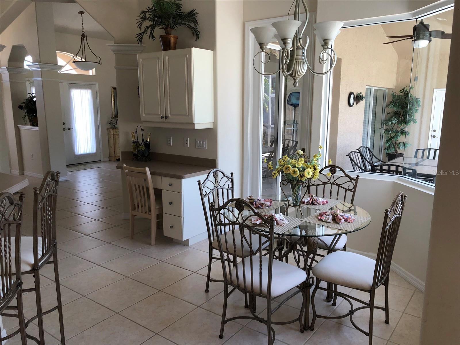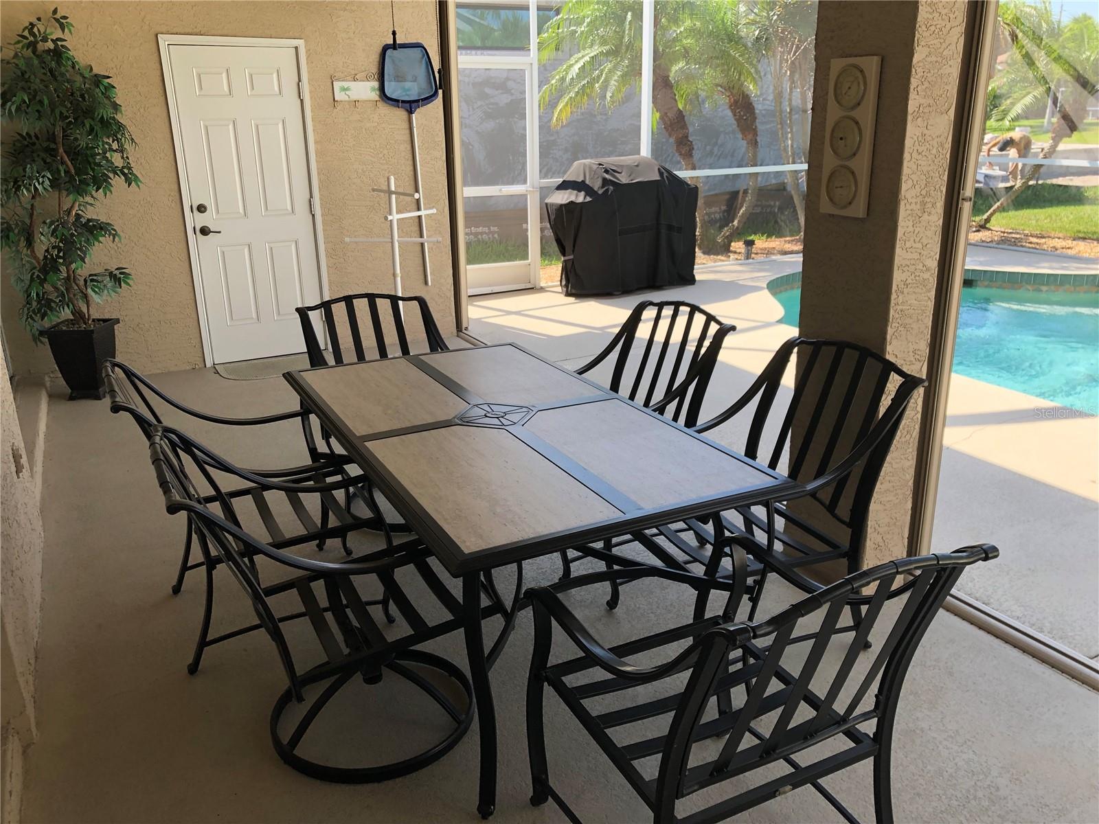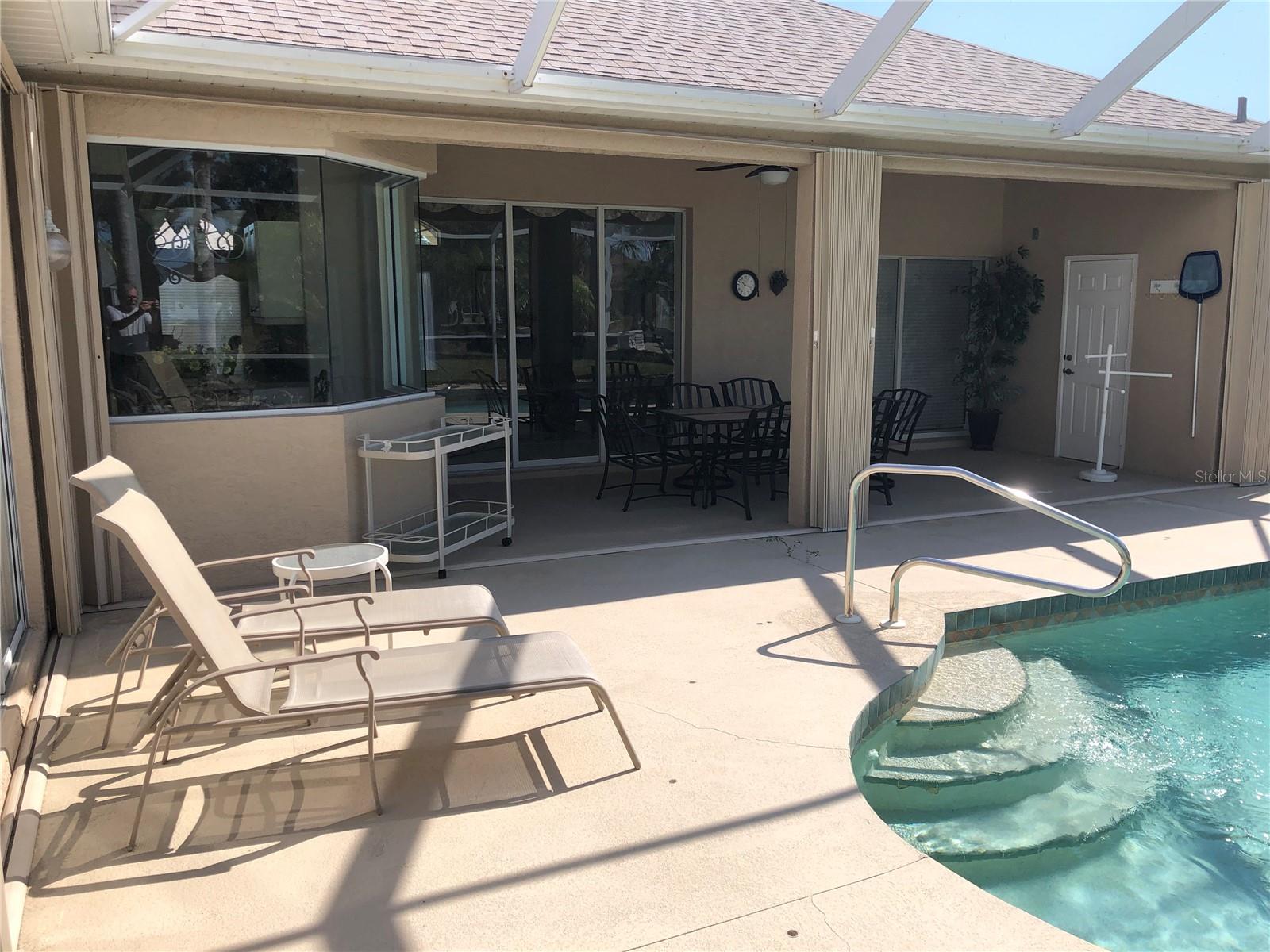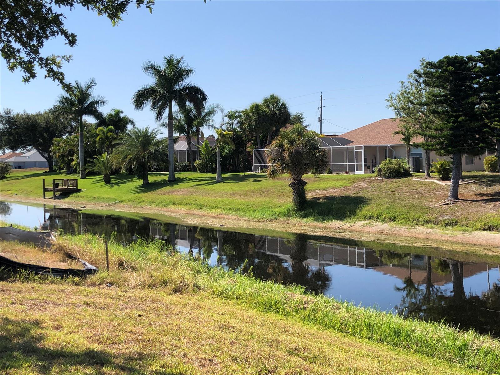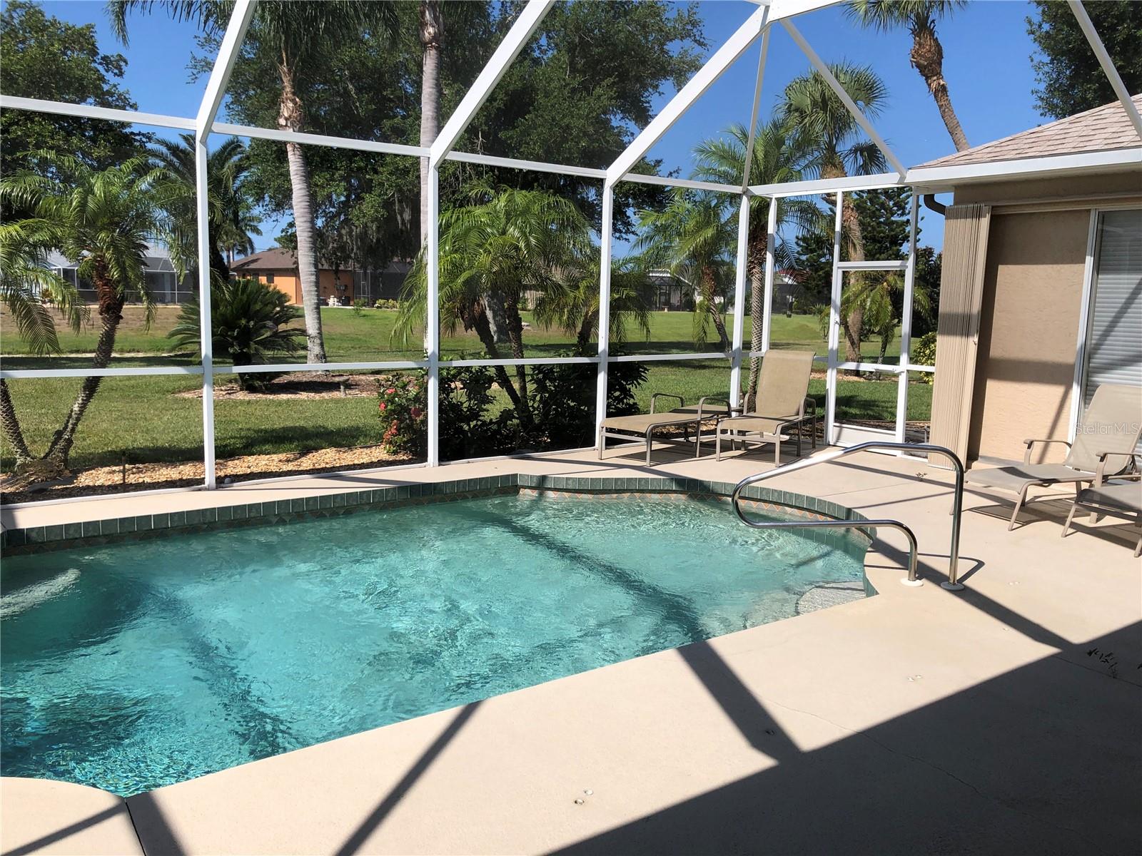 Beautiful, Luxury pool home on oversize, waterfront lot. Turnkey Furnished. Accordion storm shutters for security and storm protection. New roof 2023. Three bedrooms, 2-1/2 bath (pool bath on lanai). Heated and screened pool. Formal living room plus den. Formal dining room plus breakfast nook. Ceramic tile floors in living areas, carpet in bedrooms. Lawn irrigation system with water from canal. Kayak from your backyard. Split bedroom layout. Main bedroom with ensuite bath, separate tub and shower and enclosed lavatory. Disappearing sliders in living room for wide access to lanai. Short, easy drive to beautiful Englewood Beach. Golf courses abound. Play a round on a different course every day of the week. Spring training baseball nearby in Port Charlotte and North Port.