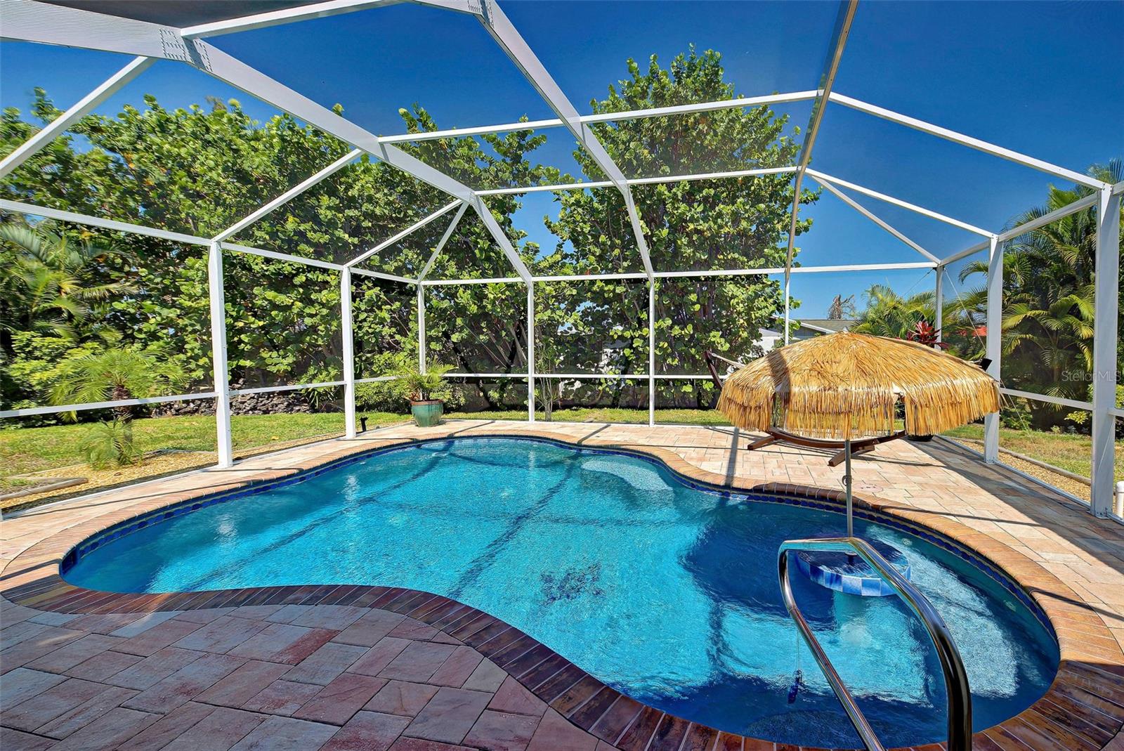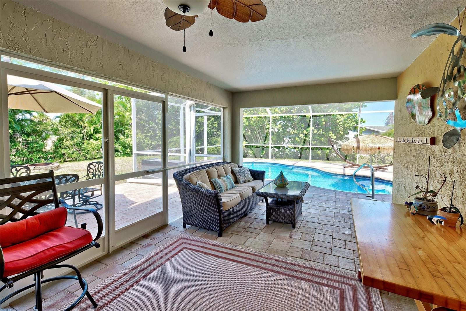 Completelly unscathed by recent storms! This beautiful home on Caddy Rd IS NOT IN A FLOOD ZONE!!! Your search is over, this wonderfully well maintained, exterior freshly painted 4 bedroom, 2 bath POOL HOME is just waiting on you!!! This home sits on a DOUBLE LOT with city water and sewer, and offers a well for irrigation and it IS NOT IN A FLOOD ZONE. Pull up the driveway to a manicured green lawn, mature tropical landscaping surrounding the house and pool. The front enclosed lanai offers a great place to enjoy your morning coffee, once you enter the home you will be welcomed into the nice sized living room. The kitchen features lots of cabinets for storage, and opens to the family room for entertaining. There is also a "dry bar" to make your guests their favorite drinks. The main living room, kitchen, dining room, laundry room and baths all feature ceramic tile while the 4 bedrooms feature newer updated laminate flooring. The seller had the HEATED, SALT WATER pool installed in 2016 that has 2 therapy jets and 2 "deck shooters" and if thats not enough check out the built in table with grass umbrella for enjoying those cocktails while floating in the pool. The following is a list of the most recent updates to the home: RO system in kitchen also connected to fridge, 2021 thermal pane windows installed and slider door leading to pool (shutters included), 2023 roof installed and flat roof was recertified, new pool cage and front lanai in 2023 (after Ian), new AC installed 2024, irrigation wells installed 2020 and 16 in of new blown insulation installed in 2019, hot water heater 2021. ALL BIG TICKET ITEMS HAVE BEEN REPLACED, turn the key and enjoy your pet free home. Rotunda offers 5 golf courses, this home sits in front of the 13th green. Located about 20 minutes from our beautiful Gulf Shore Beaches!