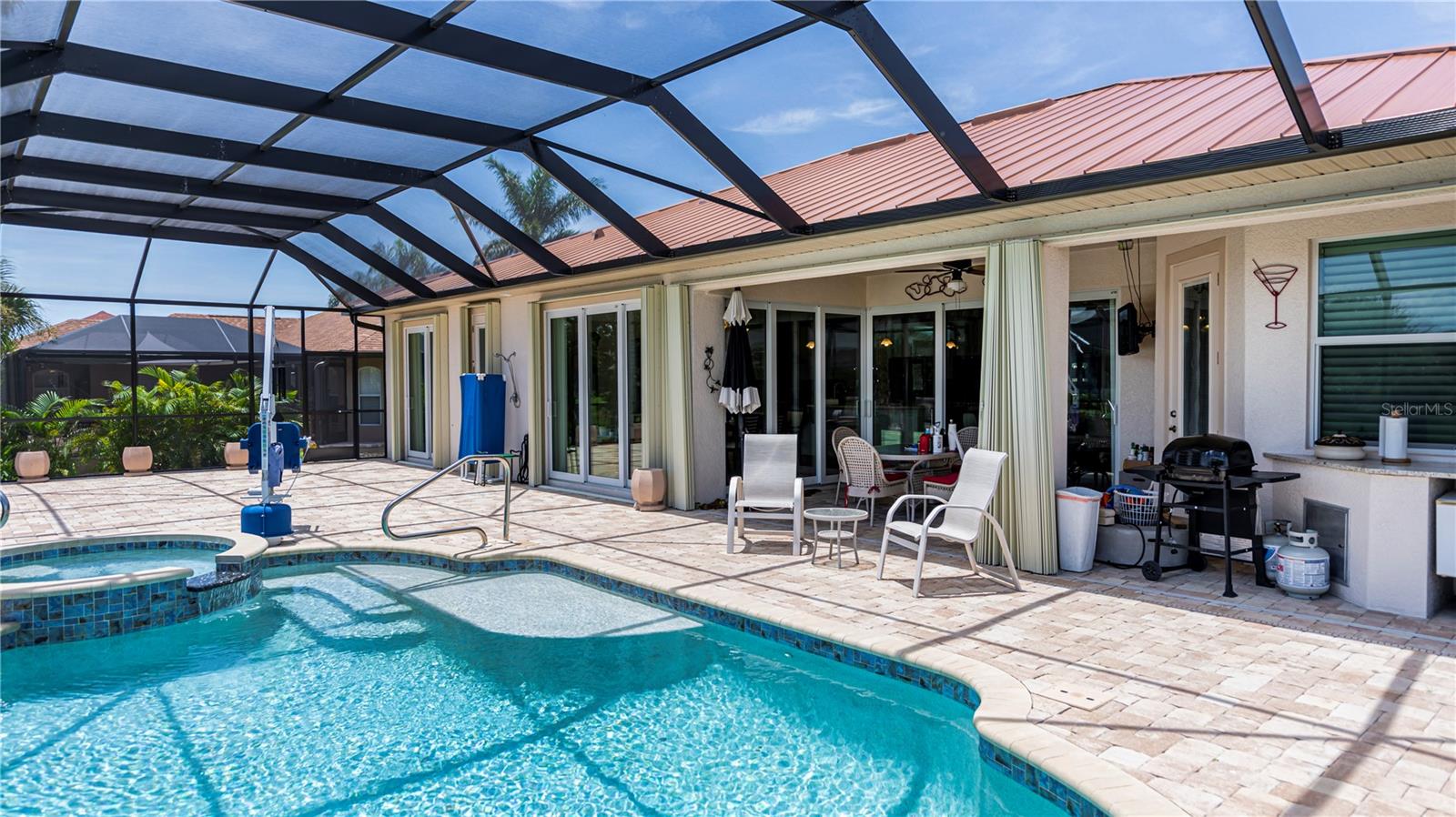 PRICE REDUCTION 10K - This is a must-see custom home built with many upgrades and optional features making your Florida living style safe and more desirable. The Home is located on a one-mile-long cul-de-sac with the rear of the home facing a canal and is near to a nature preserve, making this one of the most quiet and peaceful sections of Rotonda West. Many homes on this street are newly built custom homes offering exceptional value. The home boasts an enormous pool cage stretching across the entire rear of the home complete with a saltwater pool, heated jacuzzi, pool chair lift, outdoor kitchen and shower. It has a conveniently located full pool bath. Some of the added features are: Zero sliders, Whole house generator with 500 gal. propane tank, Metal roof, Aluminum hurricane shutters to protect the Lanai and front entrance way, Hurricane windows, Porcelain plank tile throughout the entire home, Custom kitchen island with added seating space, quartz counter tops and much more. The Rotonda Community has several golf courses and is located a few miles away from one of Florida's best kept secrets, "Boca Grande Beach Town".