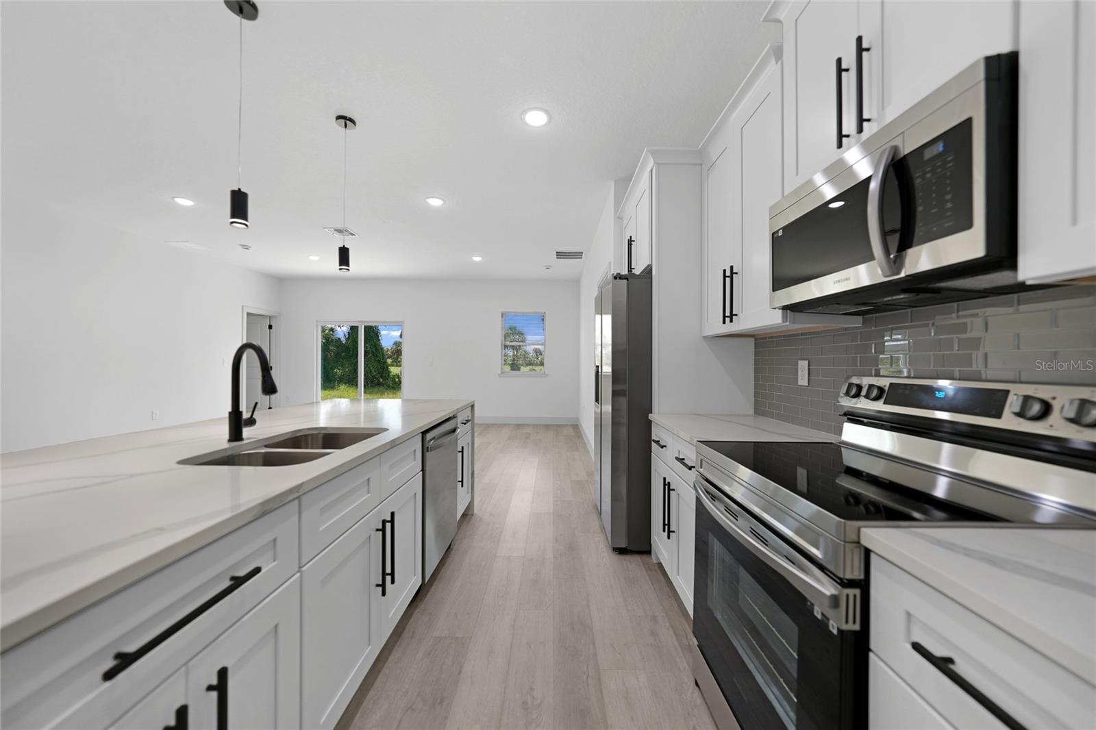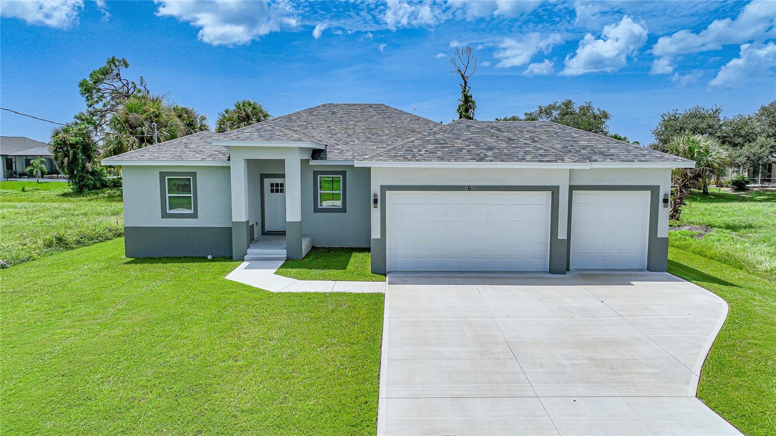 Welcome to this exceptional new 2024 construction coastal retreat, a true gem nestled in the sought-after community of Rotonda West. This stunning single-family residence with 1,900 square feet of living space perfectly marries luxury and comfort, offering a lifestyle that epitomizes Florida living at its finest. Step inside to discover an expansive open-concept living space, beautifully highlighted by beachwood-style luxury vinyl plank flooring that infuses the home with coastal charm. The thoughtful design boasts 4 generously sized bedrooms and 3 full bathrooms, ensuring ample space for both family and guests. The heart of this home is its gourmet kitchen, where culinary dreams come to life. Featuring walk-in pantry closet along with upgraded quartz countertops with elegant waterfall edges and subway tile backsplash the kitchen is both functional and stylish. Soft-close shaker-style wood cabinets provide a sophisticated touch, while high-end stainless-steel appliances and a spacious island with pendant lighting make cooking and entertaining a pleasure. The luxurious primary suite serves as your personal retreat, complete with a spa-like ensuite bathroom. Unwind in the soaking tub, enjoy the walk-in shower, or use the dual sinks for added convenience. Additional upgrades include impact windows and doors for enhanced security and peace of mind, laundry room with washer/dryer and a spacious 3-car garage offering ample parking and storage. Located in the desirable Rotonda West community, there are five golf courses operated by Rotonda Golf and Country Club. Thirty miles of picturesque canals, lakes and ponds wind through the community and offer fishing and boating opportunities for its residents. Located just minutes away from Englewood and Boca Grande beaches, shopping, great restaurants, entertainment.