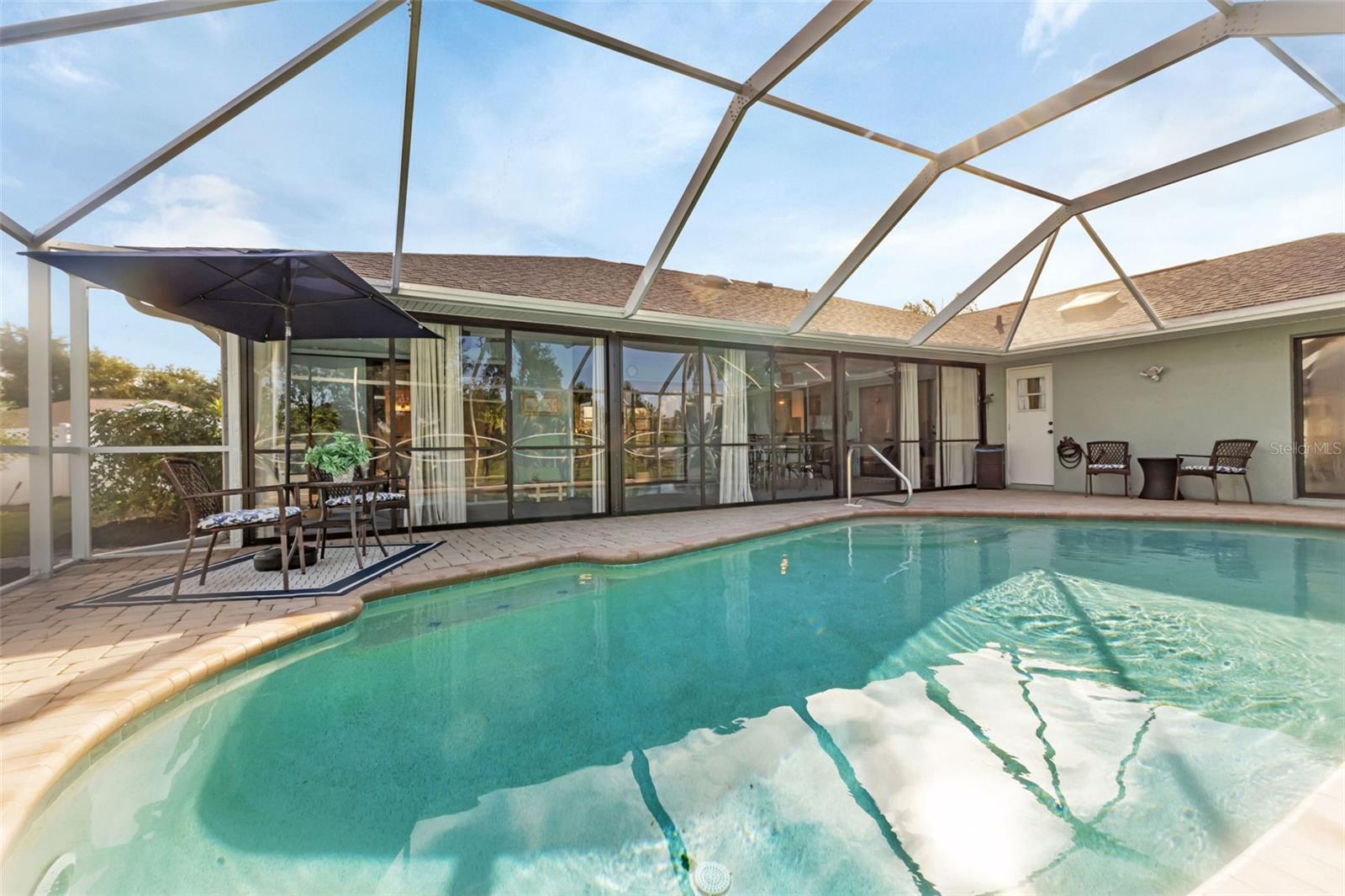 WATERFRONT 3 Bedroom, 2 Bathroom, 2 Car Garage, Pool home with Family & Florida Rooms located on a FRESHWATER CANAL in Rotonda West. LOW HOA FEES! CLICK ON VIRTUAL TOUR LINK 1 FOR THE VIDEO AND VIRTUAL LINK 2 FOR THE 3D TOUR. This beautiful home features a bright & airy floor plan, tile flooring throughout, vaulted ceilings, and MUCH MORE! Entertain your friends and family in the open living and dining room with large windows and a glass slider for plenty of natural lighting and a GORGEOUS water view. The kitchen offers all appliances, granite countertops, a tiled backsplash, a closet pantry, a breakfast counter, and a service window to the Florida room with a canal view. Expand your living and entertaining space with the family room off the kitchen with a glass slider to the Florida room. The spacious master bedroom has a slider to the Florida room, HIS & HERS walk-in closets, and a private en-suite bathroom with a dual sink vanity, walk-in shower, soaking tub, and linen closet. The guest rooms are on a split floor plan providing plenty of privacy with walk-in closets and a shared guest bathroom nearby. Sip your morning coffee or unwind with your favorite evening beverage while taking in the SERENE water view from the Florida room. Take a dip in the heated SALTWATER pool, soak up the sun from the pool deck, or cast your line for some freshwater fishing from your backyard. 2022 ROOF - 2023 POOL PUMP & SALTCELL REPLACED - 2024 POOL CAGE - 2022 TANKLESS HOT WATER HEATER - 2023 IRRIGATION SYSTEM REPLACED - 2022 REFRIGERATOR/DISHWASHER/MICROWAVE - 2023 INTERIOR PAINTED - 2022 EXTERIOR PAINTED - 2019 A/C - 2020 UPDATED BATHROOMS - 2021 CONVERTED LANAI TO FLORIDA ROOM - PARTIALLY FENCED BACKYARD. The Rotonda West community offers a park & preserve where you can enjoy well-maintained walking trails, 4 golf courses and a community center with year-round activities! Just a short car ride to the Gulf Beaches of Boca Grande, Englewood, or Manasota Key to name a few where you will find world-class fishing and white sand between your toes. Other area amenities include fine & casual dining, shops and boutiques, boating, and golfing. Schedule your showing TODAY!