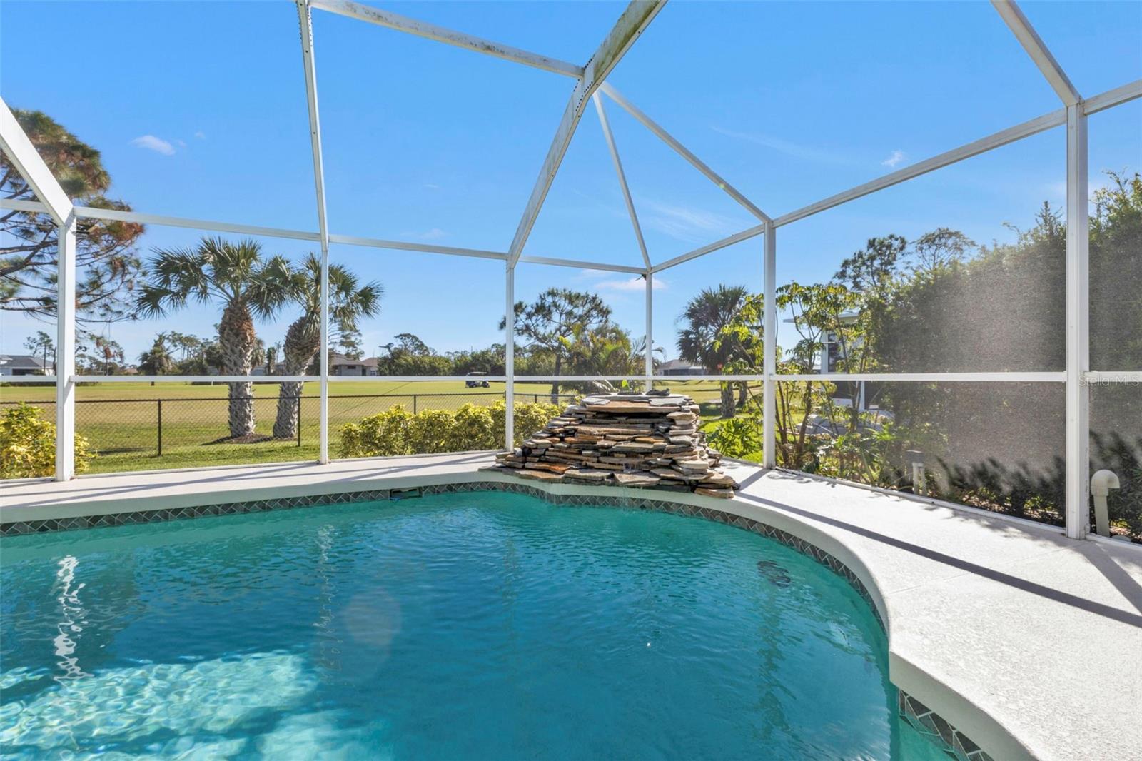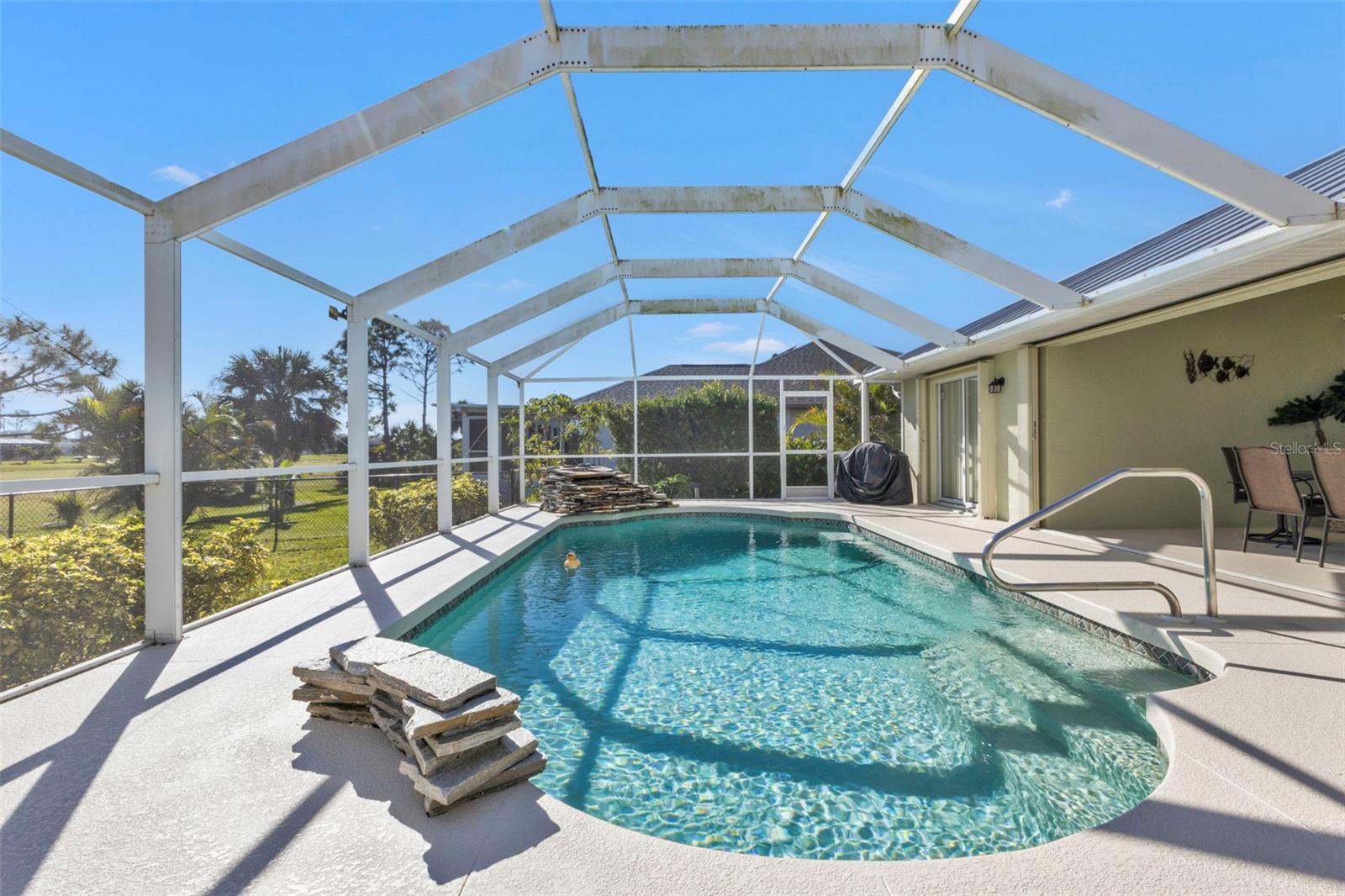 BEAUTIFUL 3 Bedroom, 2 Bathroom, 3 Car Garage, Pool home located on the Golf Course in Rotonda West. CLICK ON THE VIRTUAL TOUR LINK 1 FOR THE VIDEO AND VIRTUAL LINK 2 FOR THE 3D TOUR. Featuring a bright and open floor plan, laminate & tile flooring in main living areas, high vaulted ceilings, plant shelving, and MUCH MORE! Spend quality time with friends and family with an open living and dining room with a large window and glass slider for plenty of natural lighting. The kitchen offers ALL stainless-steel appliances, solid surface countertops, a tiled backsplash, a closet pantry, a breakfast counter, and a breakfast nook. The spacious master bedroom has a glass slider to the lanai, DUAL Walk-in closets, and a private bathroom with a dual sink vanity, soaking tub, an ALL Tile-walk-in shower, and a linen closet. The guest bedrooms are on a split floor plan providing plenty of privacy with built-in closets and a shared guest bedroom nearby. Expand your living and entertaining space to the lanai where you can sip your morning coffee or unwind with your favorite evening beverage. Take a dip in a private HEATED pool with a waterfall, or soak up the sun from the pool deck. Enjoy a fully fenced backyard overlooking the golf course! 2023 METAL ROOF - HURRICANE PROTECTION - 2020 A/C - NEWER APPLIANCES - FULLY FENCED BACKYARD - LOW HOA FEES. The Rotonda West community offers a park & preserve where you can enjoy well-maintained walking trails and a community center with year-round activities! Just a short car ride to the Gulf Beaches of Boca Grande, Englewood, or Manasota Key to name a few where you will find world-class fishing and white sand between your toes. Other area amenities include fine & casual dining, shops and boutiques, boating, and golfing. Schedule your showing TODAY!